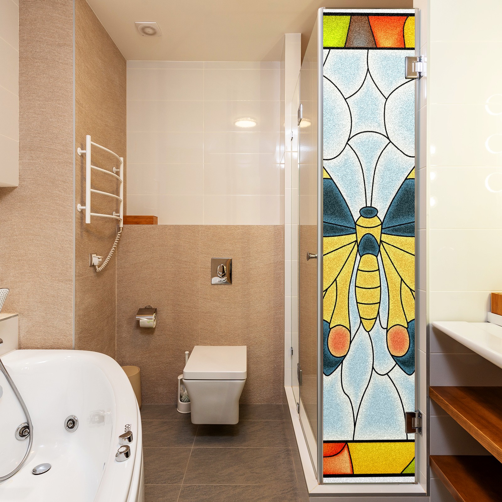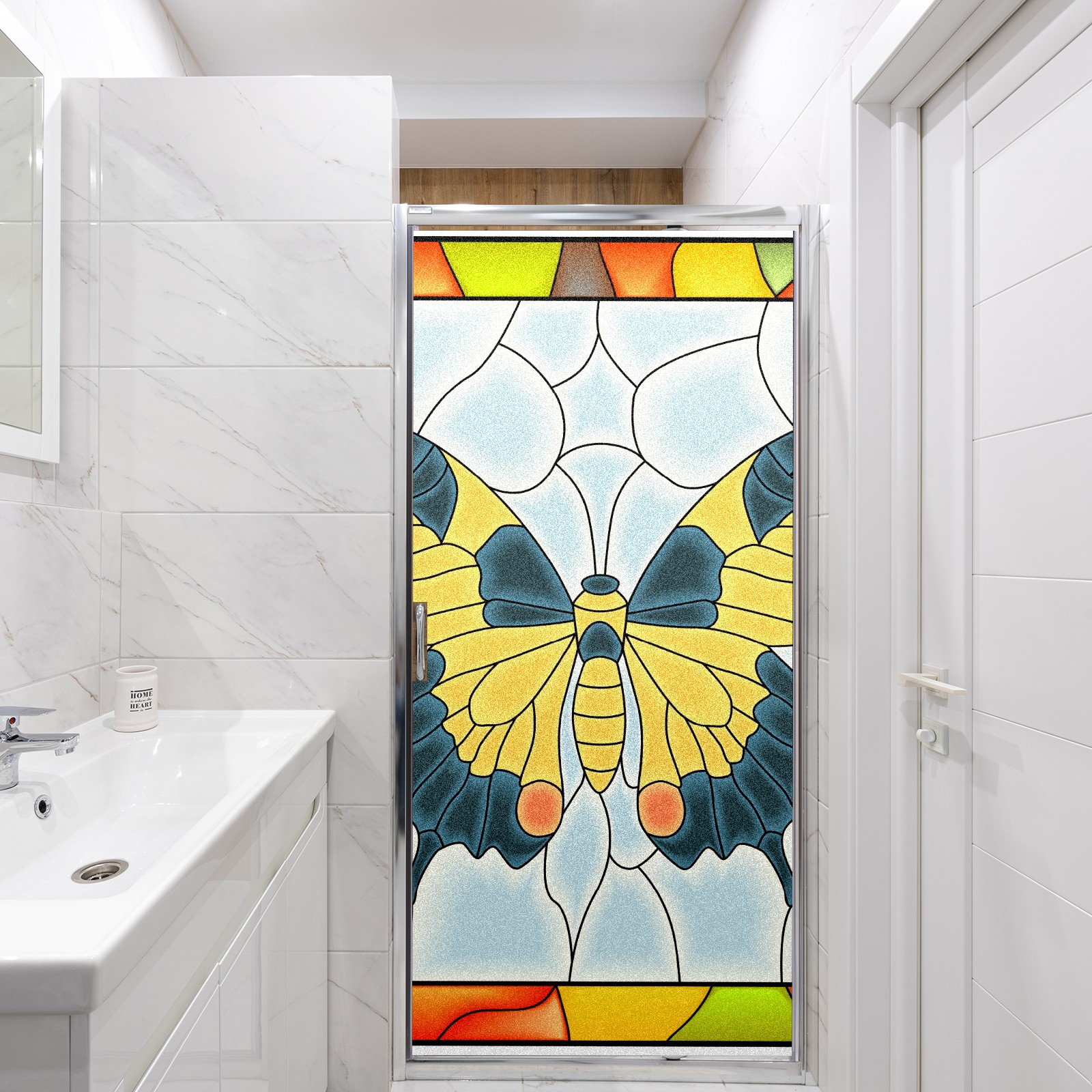 Static Cling Decorative Window Film Frosted Privacy Film Window Clings for Glass Windows No Glue Window Sticker for Bathroom Bedroom Office Butterfly Stained Glass