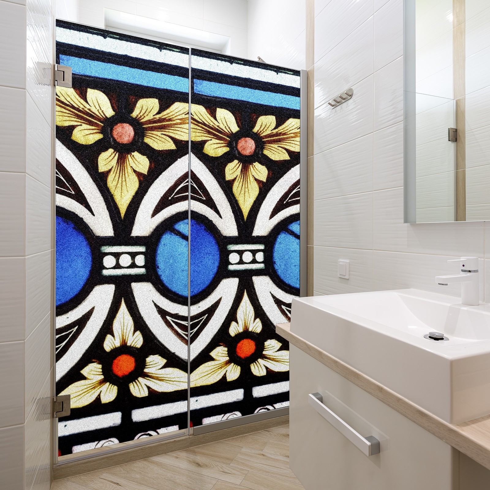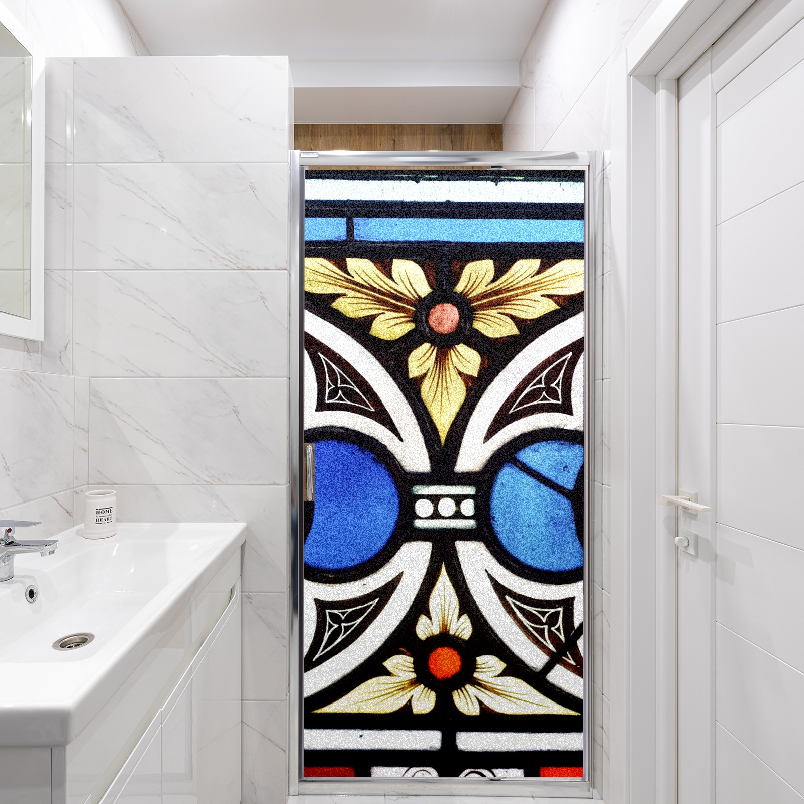 Static Cling Decorative Window Film Frosted Privacy Film Window Clings for Glass Windows No Glue Window Sticker for Bathroom Bedroom Office Stained Glass Flowers