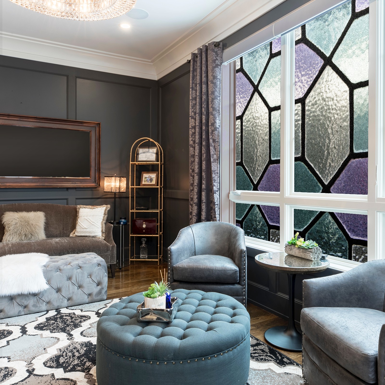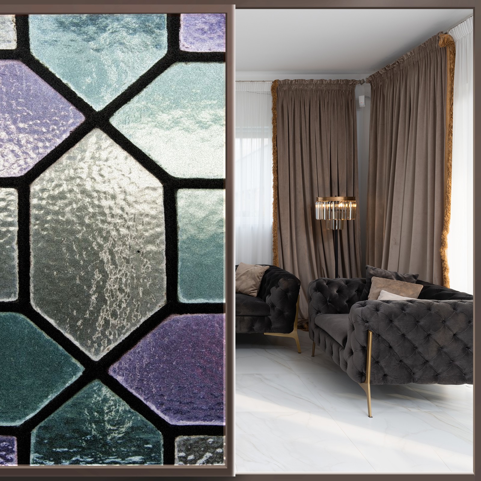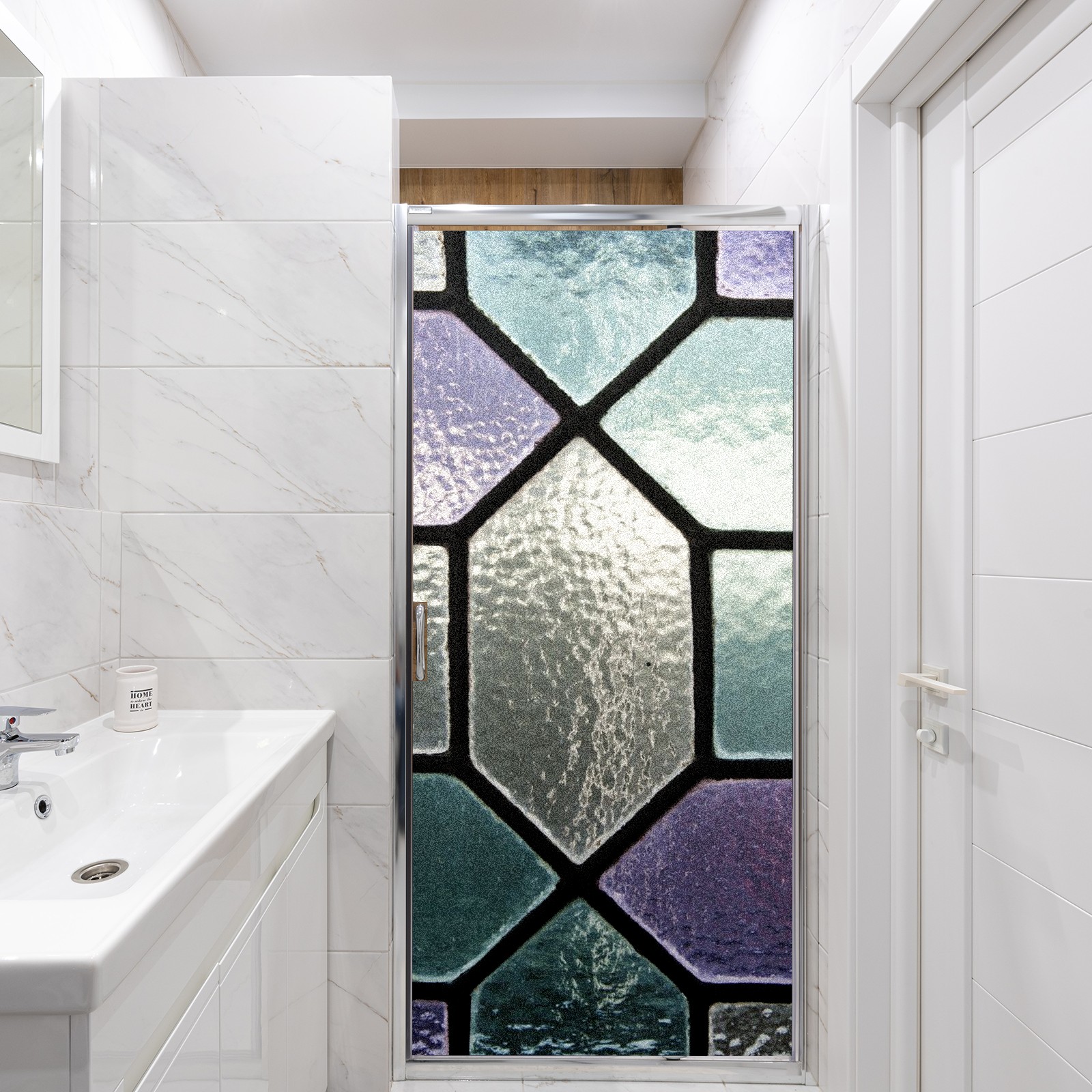 Static Cling Decorative Window Film Frosted Privacy Film Window Clings for Glass Windows No Glue Window Sticker for Bathroom Bedroom Office Purple Teal Green Stained Glass
