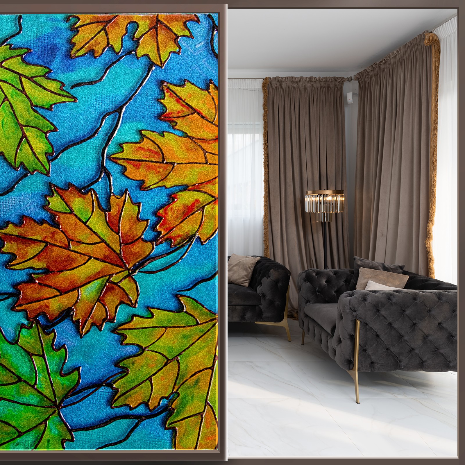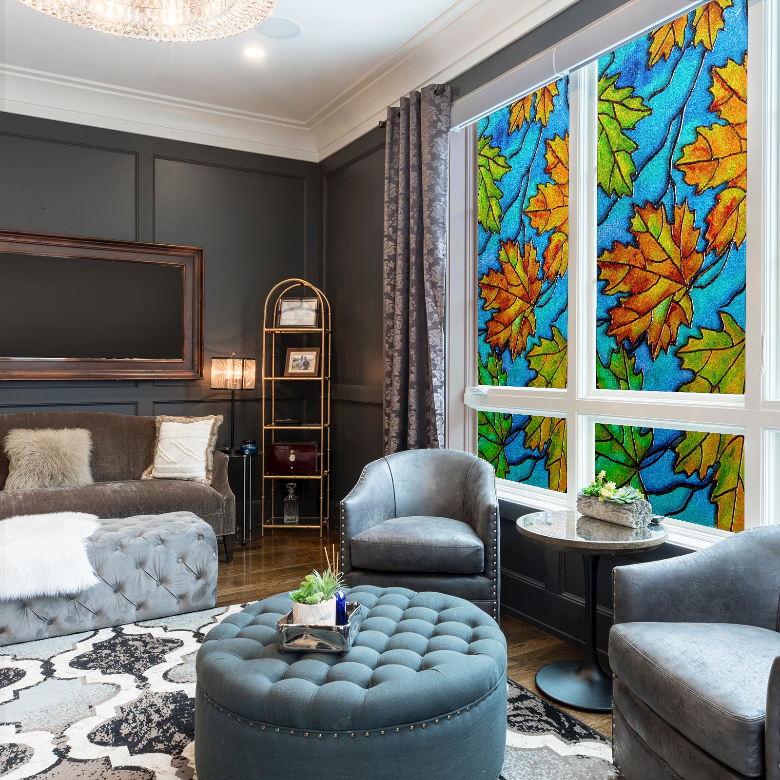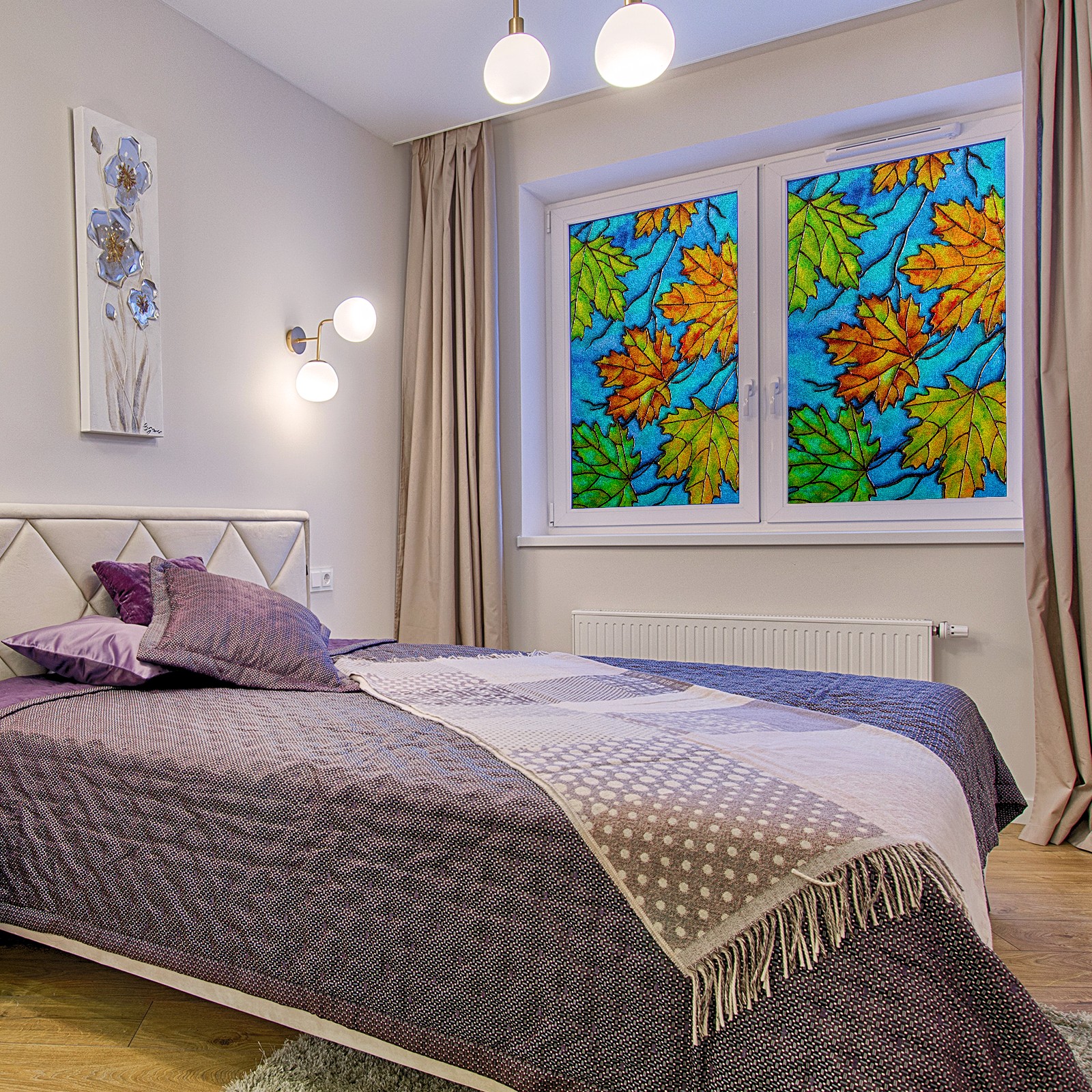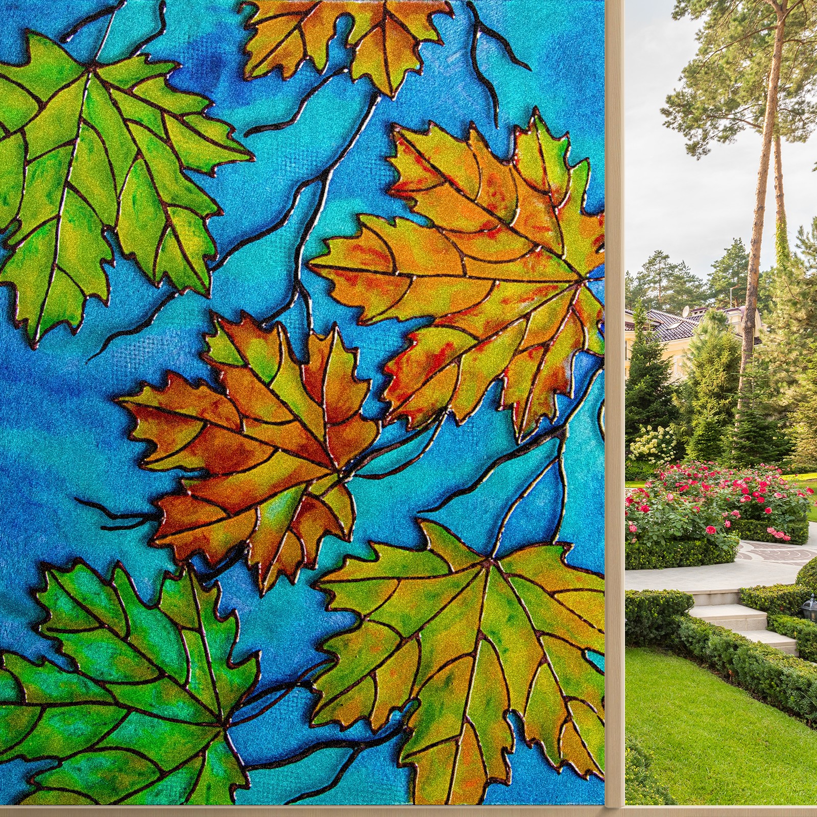 Static Cling Decorative Window Film Frosted Privacy Film Window Clings for Glass Windows No Glue Window Sticker for Bathroom Bedroom Office Colorful Maple Leaf Stained Glass
