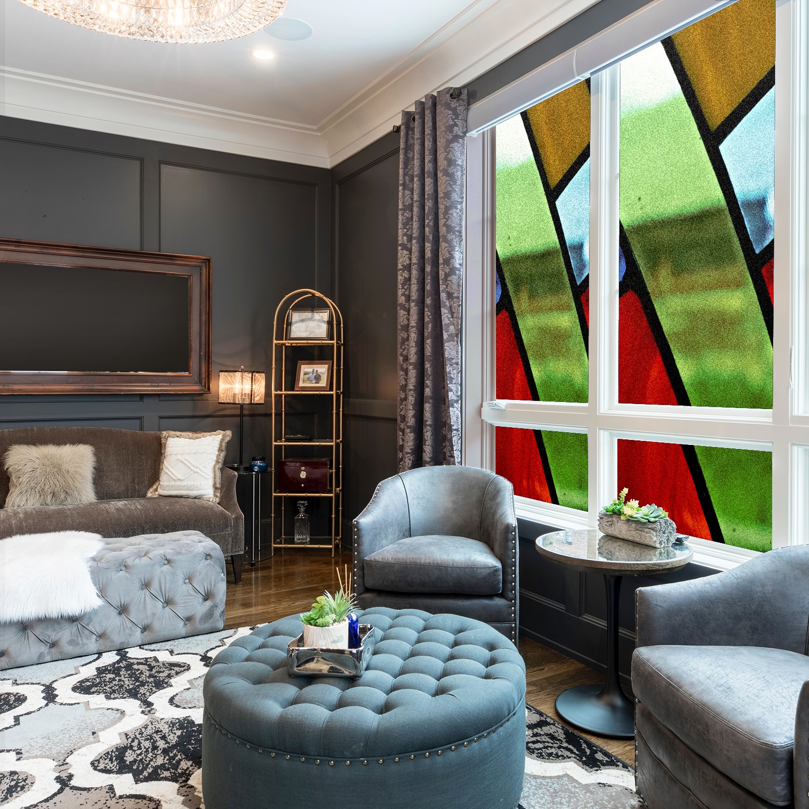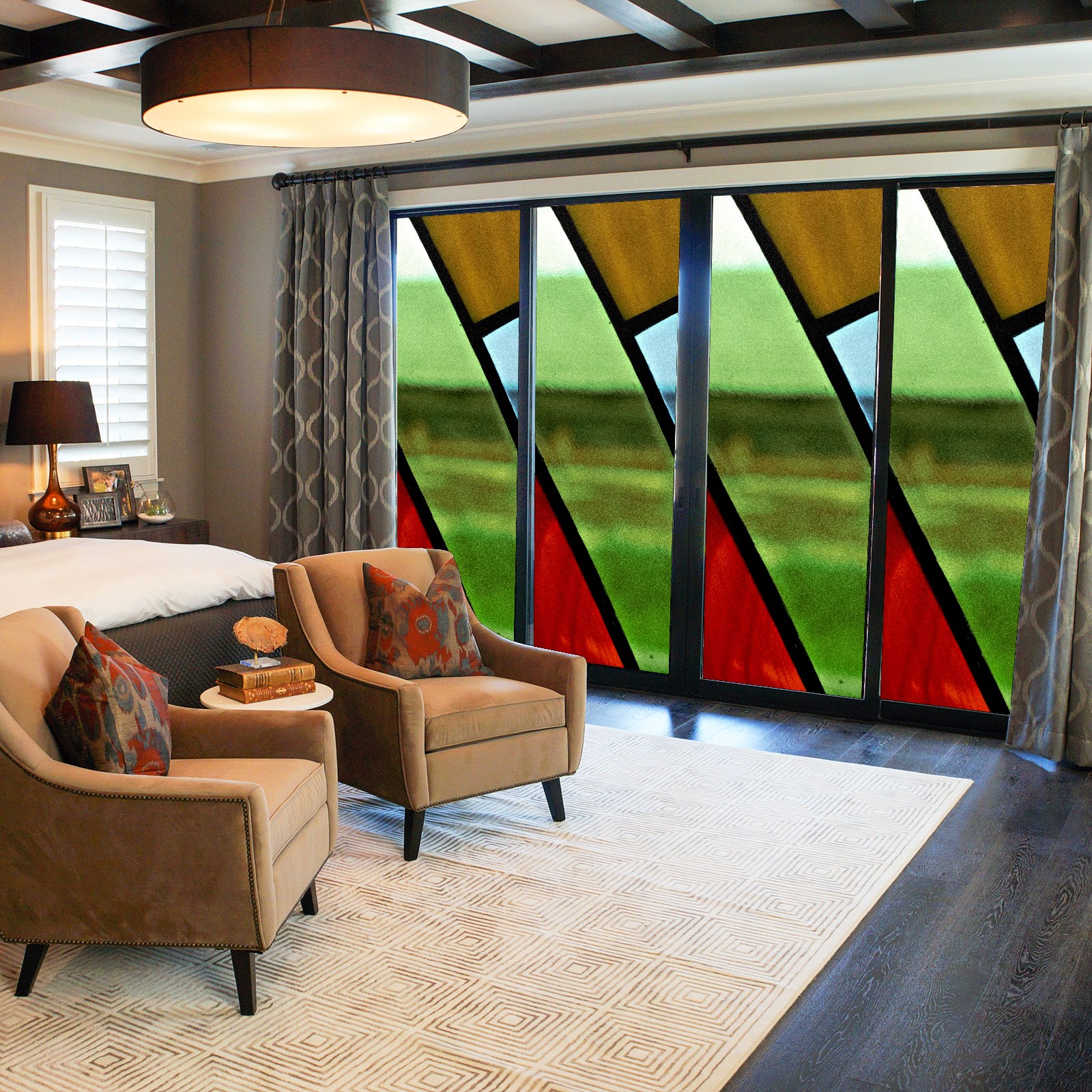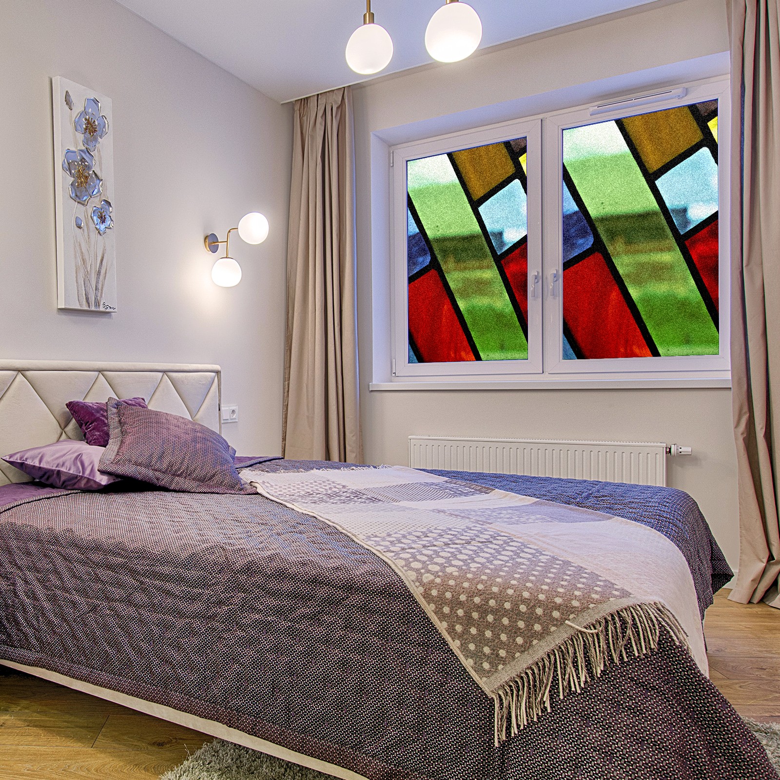Static Cling Decorative Window Film Frosted Privacy Film Window Clings for Glass Windows No Glue Window Sticker for Bathroom Bedroom Office Colorful Stained Glass