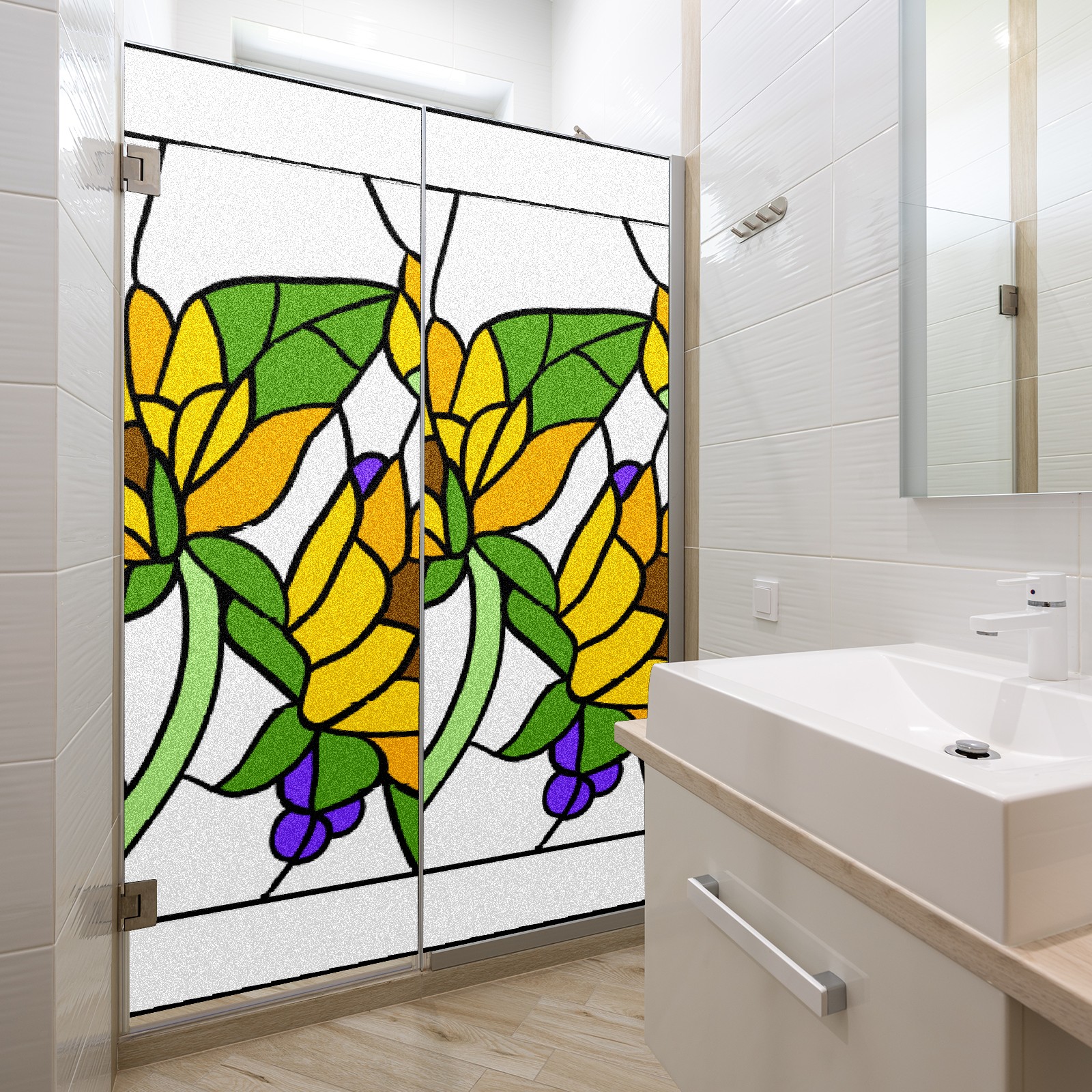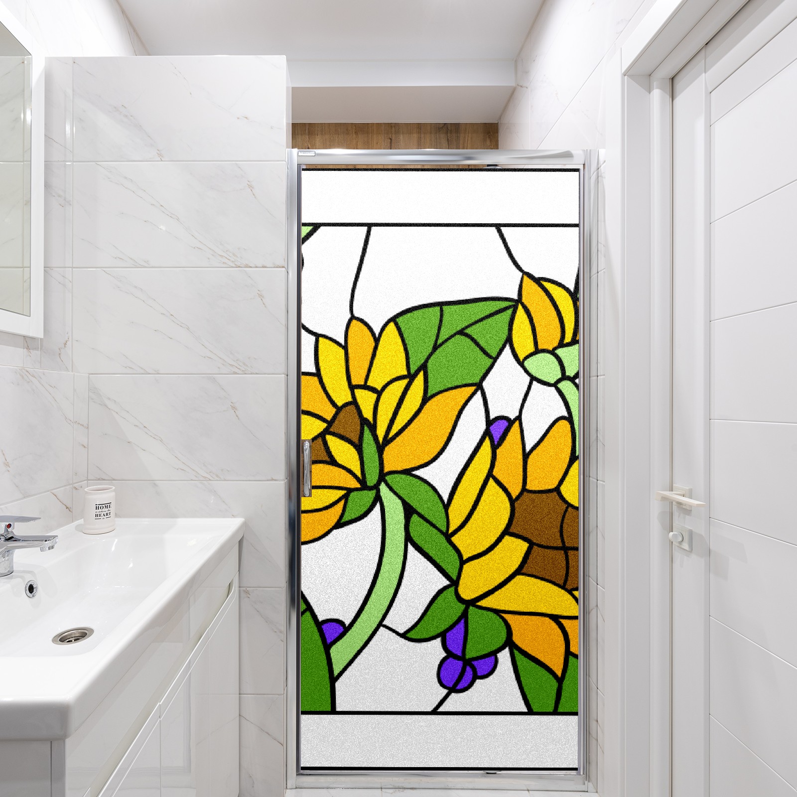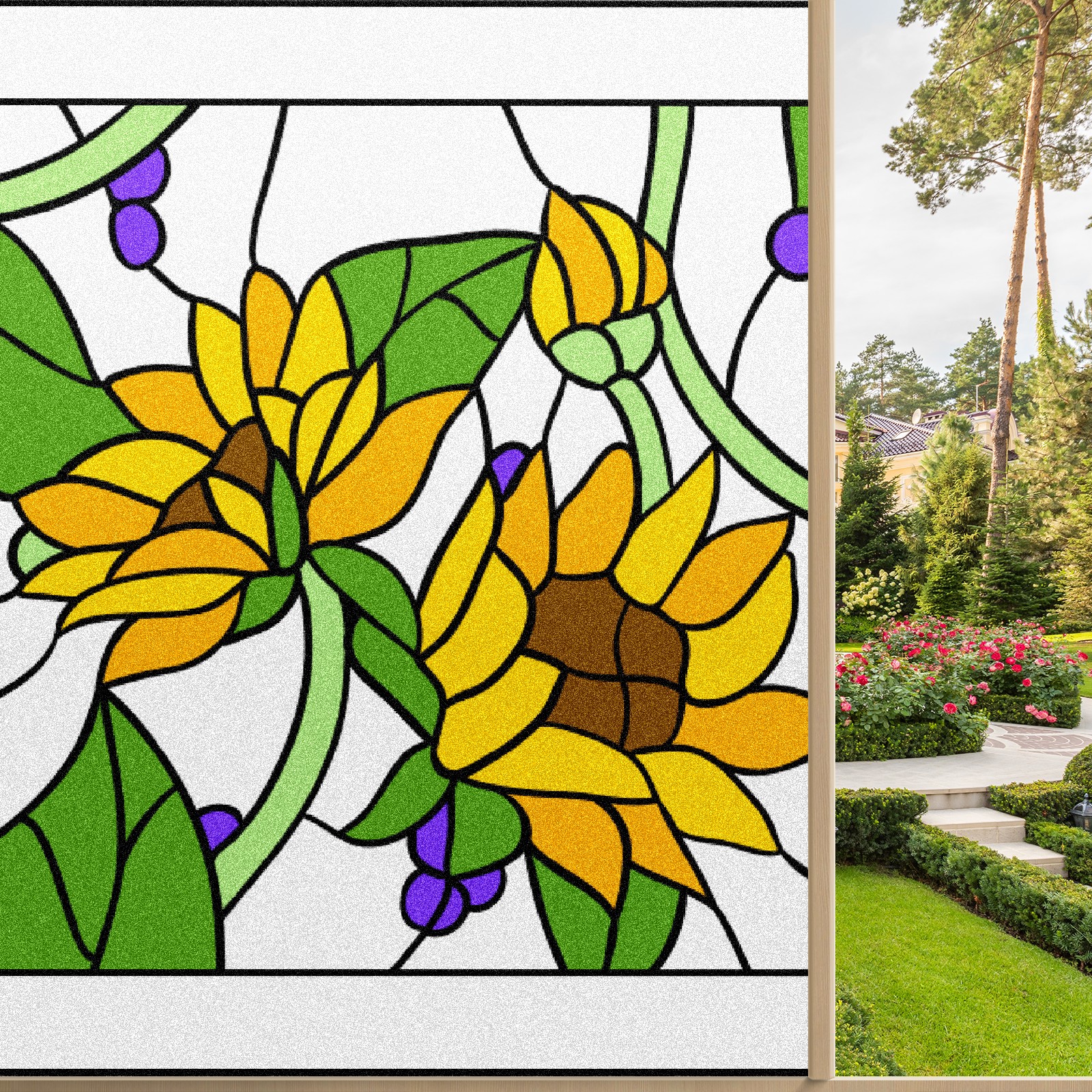 Static Cling Decorative Window Film Frosted Privacy Film Window Clings for Glass Windows No Glue Window Sticker for Bathroom Bedroom Office Sunflower Stained Glass