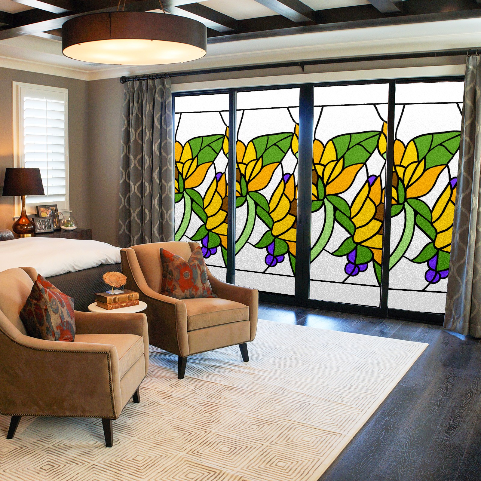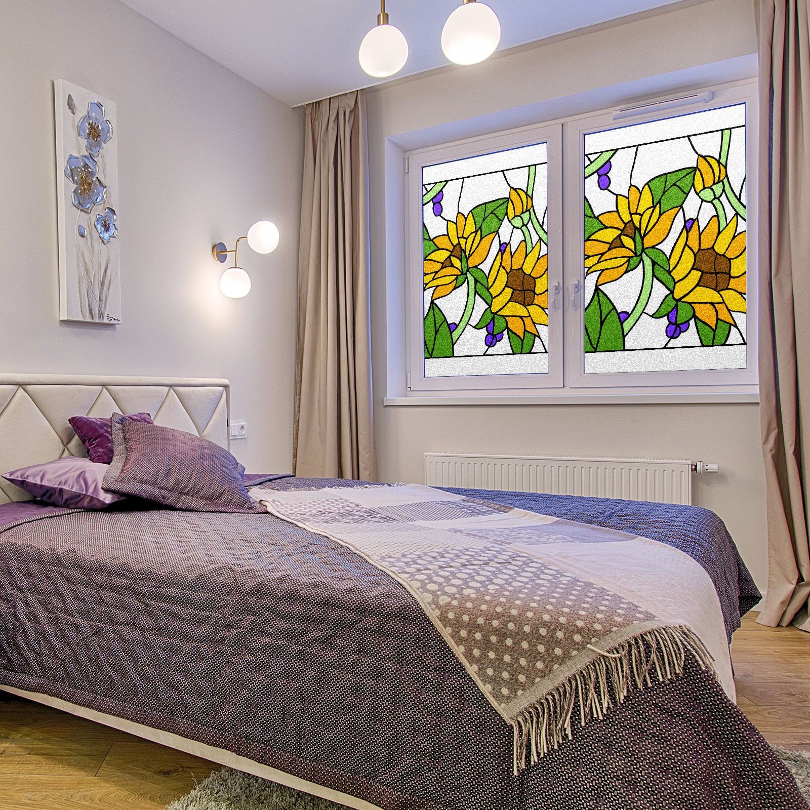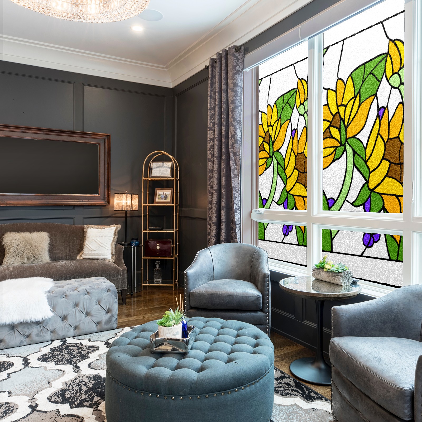 Static Cling Decorative Window Film Frosted Privacy Film Window Clings for Glass Windows No Glue Window Sticker for Bathroom Bedroom Office Sunflower Stained Glass