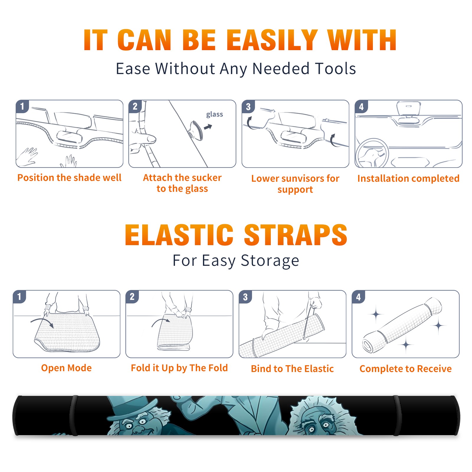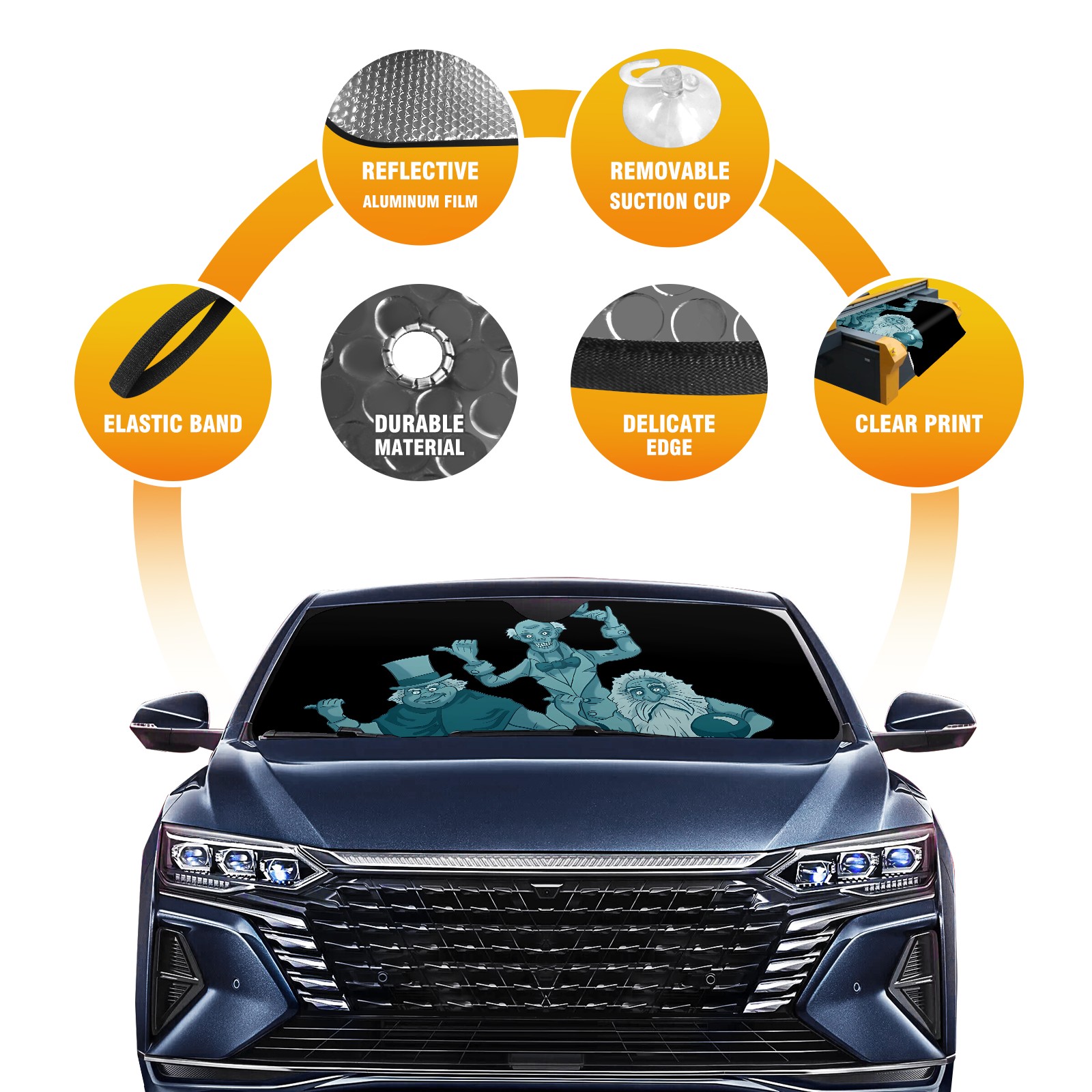 <p><strong>Cute Funny Car Windshield Sun Shades SUV Front Window Sunshade Covers</strong></p><p><br /></p><p><br /></p><p><strong>ABOUT THE CAR SUN SHADE.</strong></p><p><strong>Material:</strong> Our car sun shade is made of durable heat-resistant polyester material, which is lightweight, hold up well to repeated use.</p><p><strong>Size:</strong> Our car sun shade is 55x30 inches. It fits fit different types of vehicles, such as sedans or SUVs.</p><p><strong>Keeps car interior cooler in summer: </strong>The car sun shade can block the sun so it doesn’t heat up your car’s interior. The sun shade also prevents your steering wheel, console, seat belts, and upholstery from getting uncomfortably hot. It takes much less time for the air conditioning to cool down the car once you get inside.</p><p><strong>Protects electronics: </strong>The sun shield also protects the electronics in your car, such as the GPS device, DVD player, or CD player.</p><p><strong>Prevent fading:</strong> The windshield sun shade also blocks UV rays as the rays can make your car interior dashboard, console, and upholstery, and the steering wheel to fade.</p><p><strong>Easy to open and close:</strong> The car windshield sun visor is easy to install and storage.</p><p><br /></p><p><br /></p><p>The sunshade for car windshield fully protect your car suv pickup trucks from intense sun heat and UV rays, keeps your car interior cool even on the hottest days. No more getting into a steaming car that makes you sweaty and uncomfortable, enjoy a cool summer.</p>