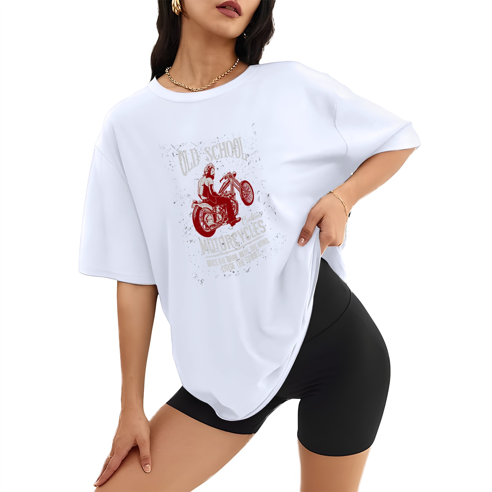 Vintage Motorcycle (14) T-Shirt Tops Short Sleeves Shirt Crew Neck Shirt XS