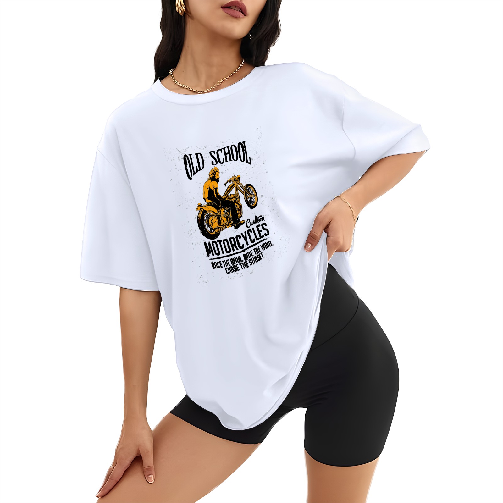 Vintage Motorcycle (13) T-Shirt Tops Short Sleeves Shirt Crew Neck Shirt XS