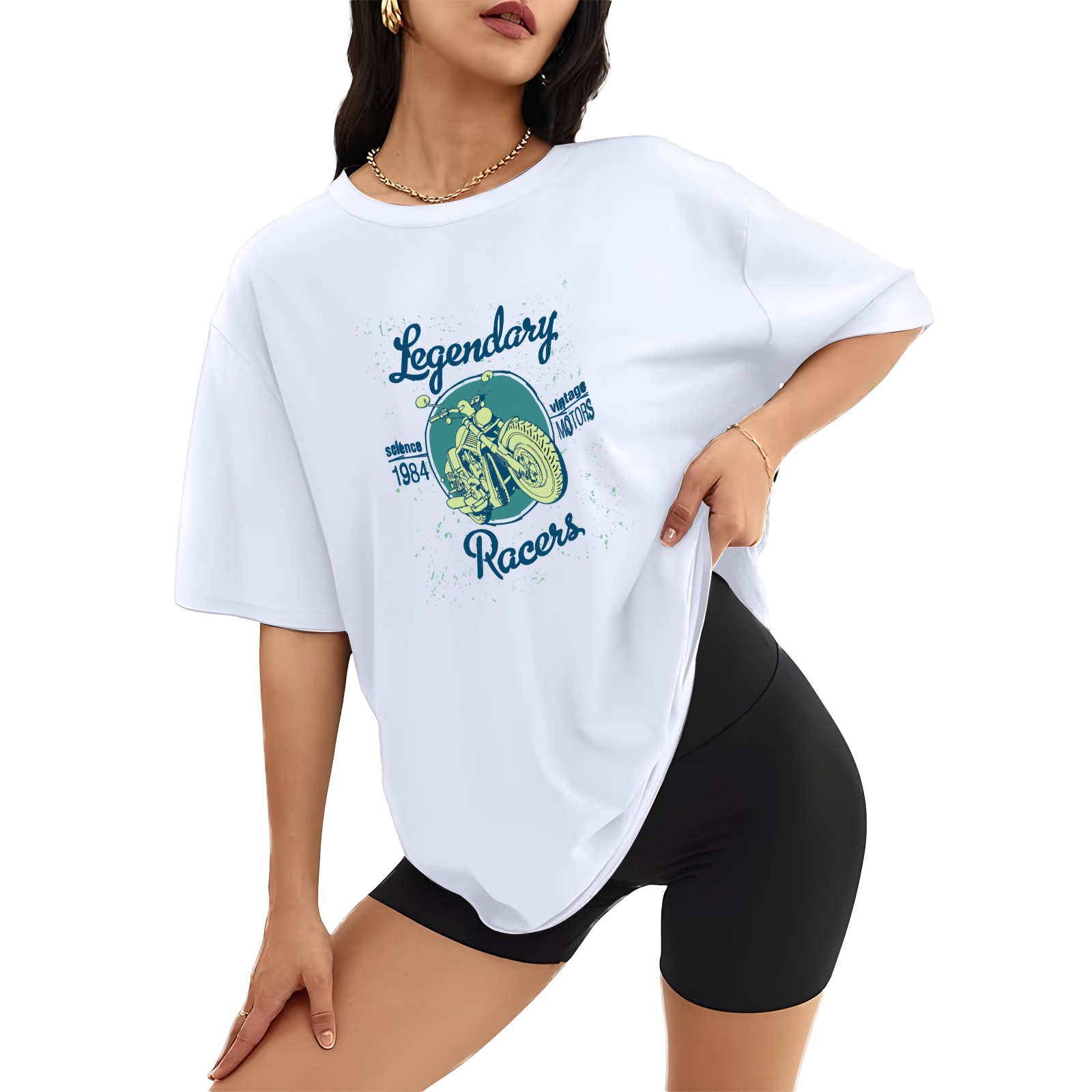 Vintage Motorcycle (9) T-Shirt Tops Short Sleeves Shirt Crew Neck Shirt XS