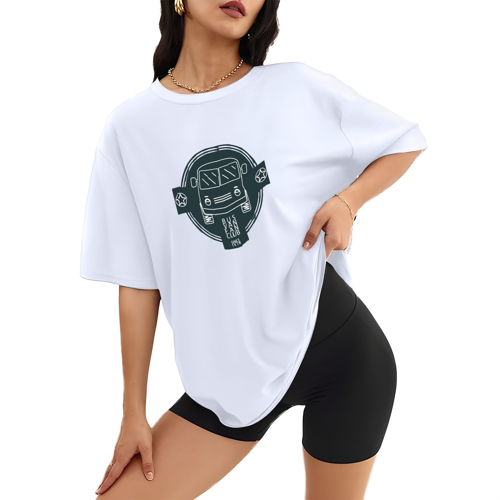 Vintage Bus T-Shirt Tops Short Sleeves Shirt Crew Neck Shirt XS