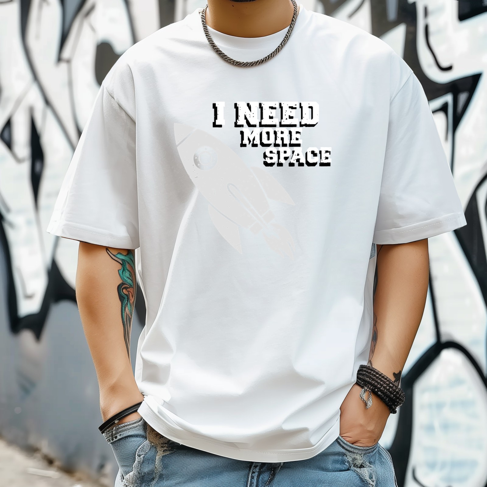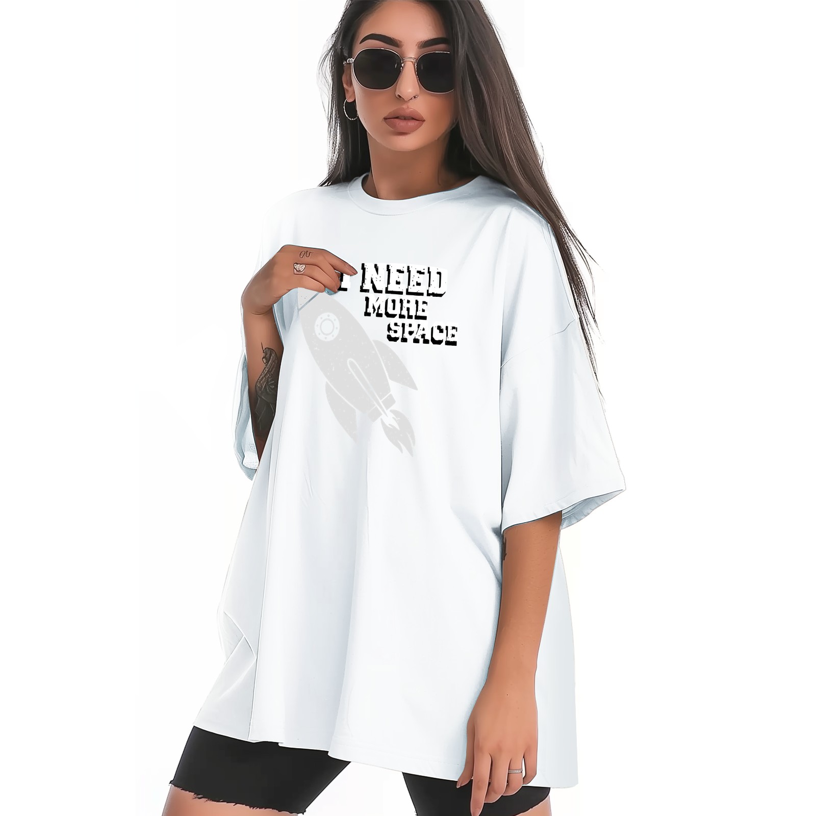 Space (2) T-Shirt Tops Short Sleeves Shirt Crew Neck Shirt XS