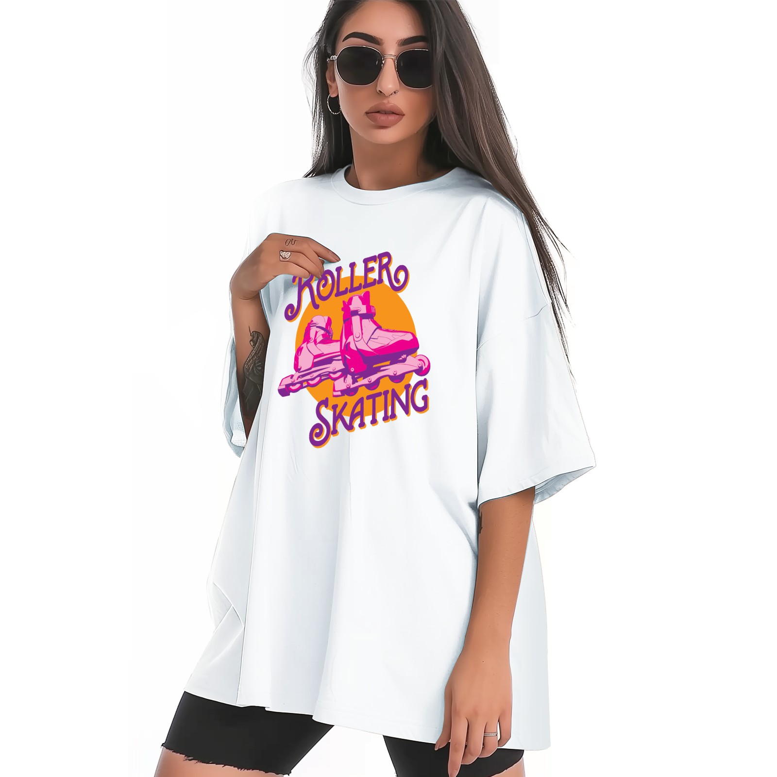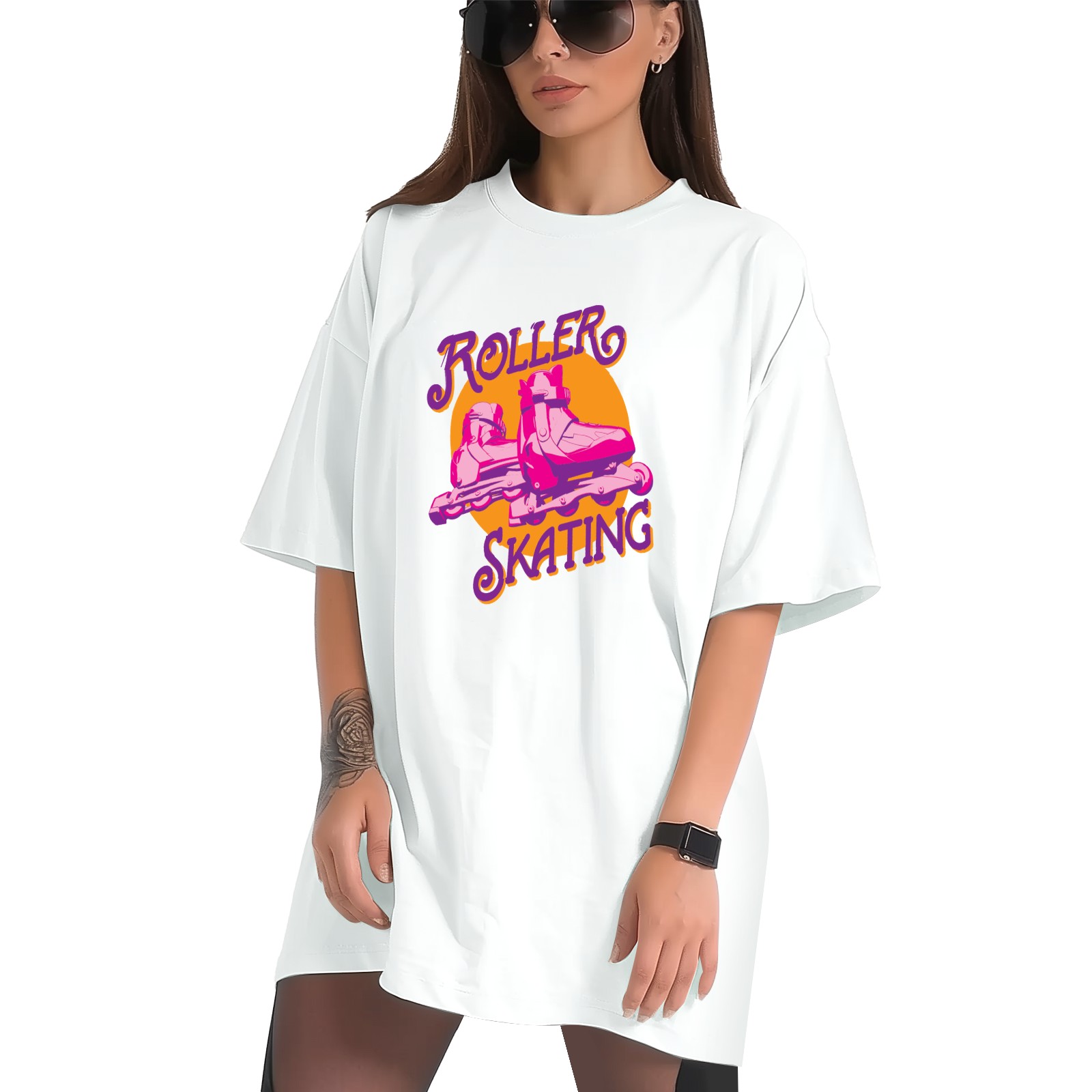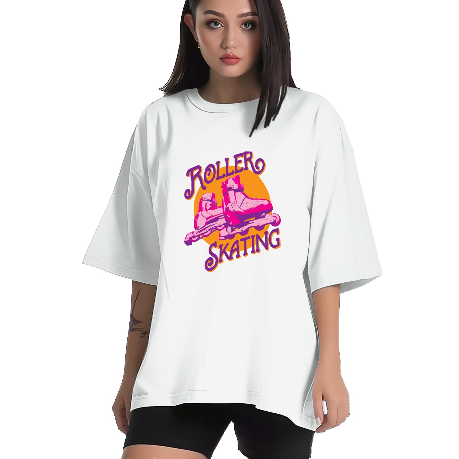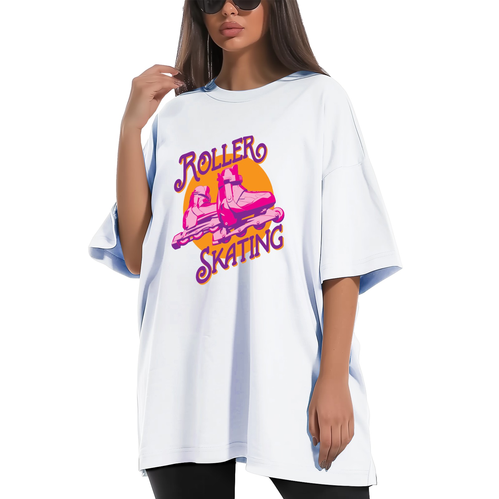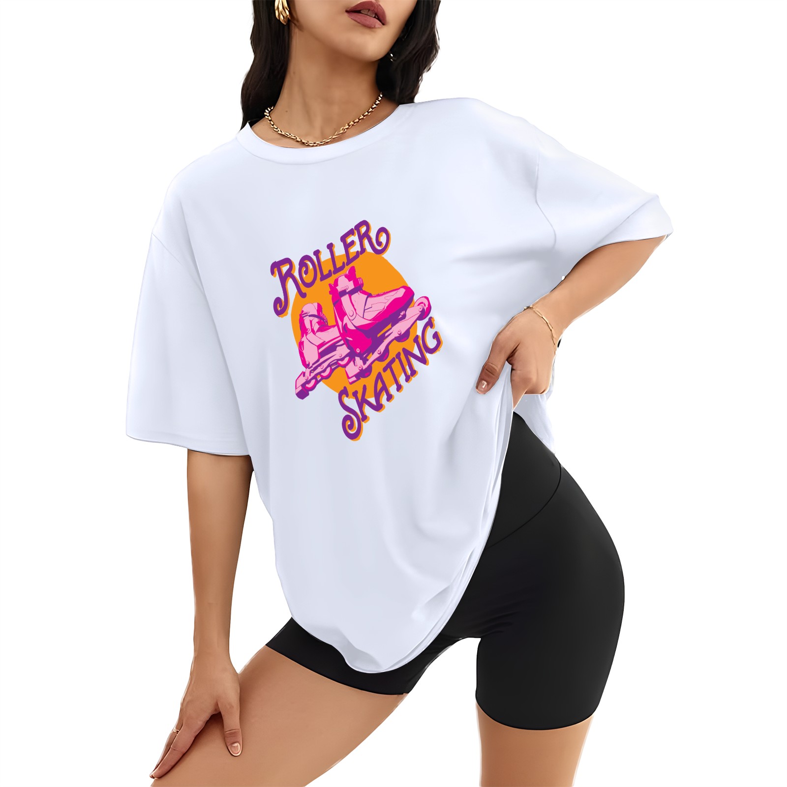 Roller Skating T-Shirt Tops Short Sleeves Shirt Crew Neck Shirt XS