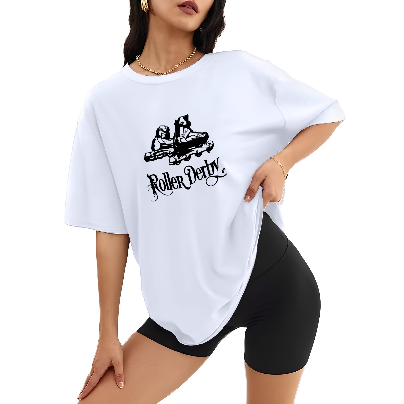 Roller Skating (3) T-Shirt Tops Short Sleeves Shirt Crew Neck Shirt XS