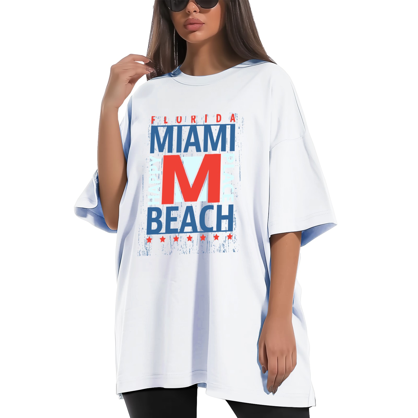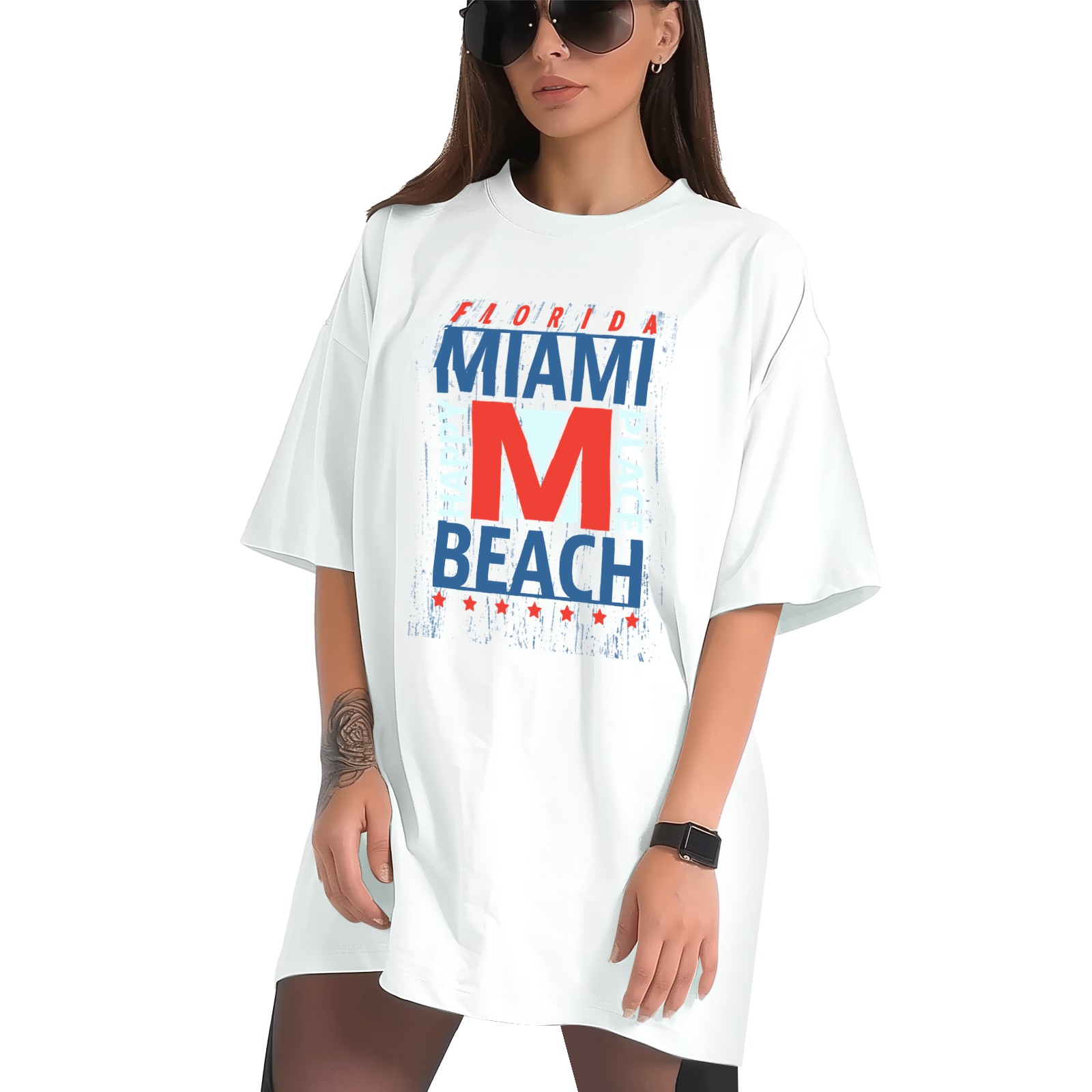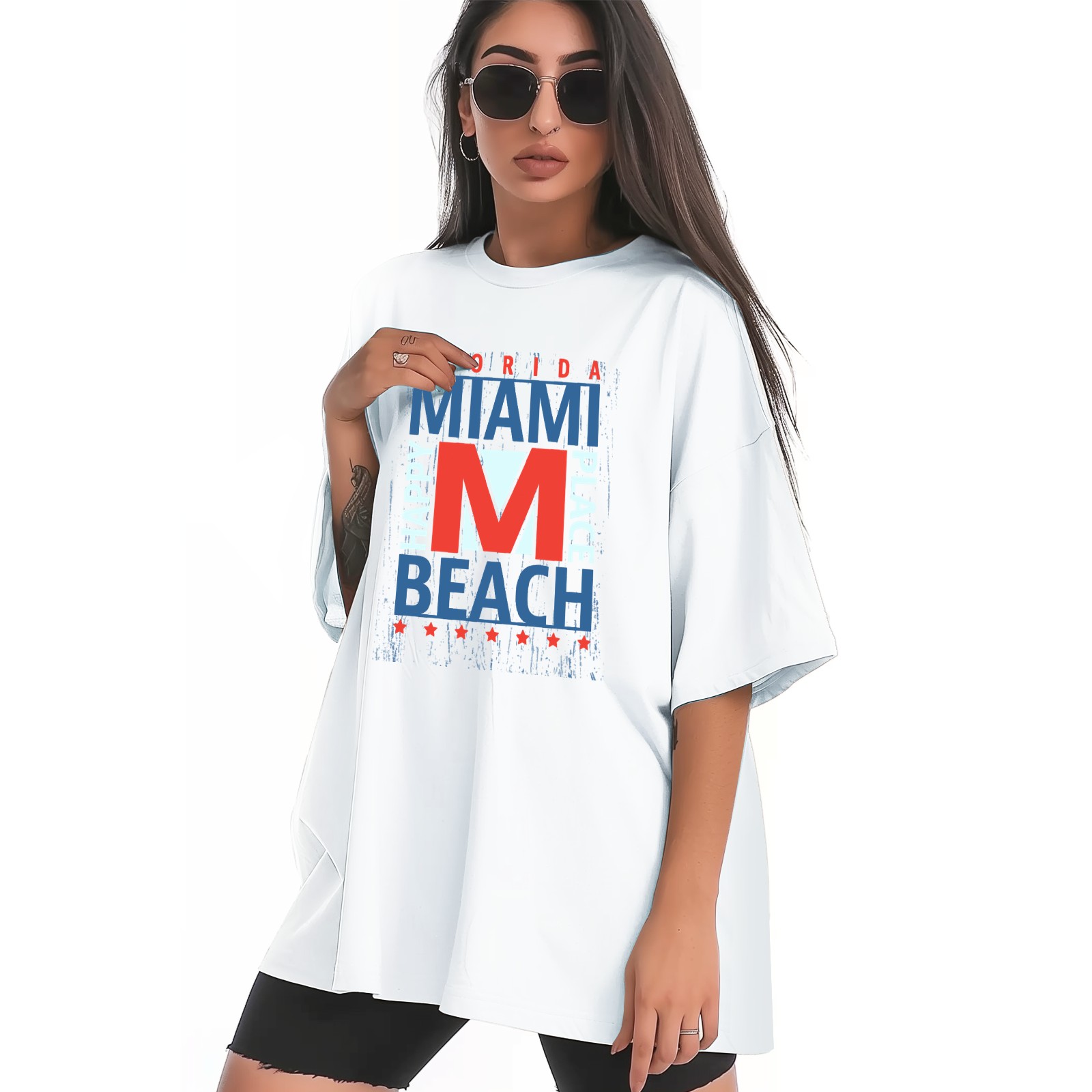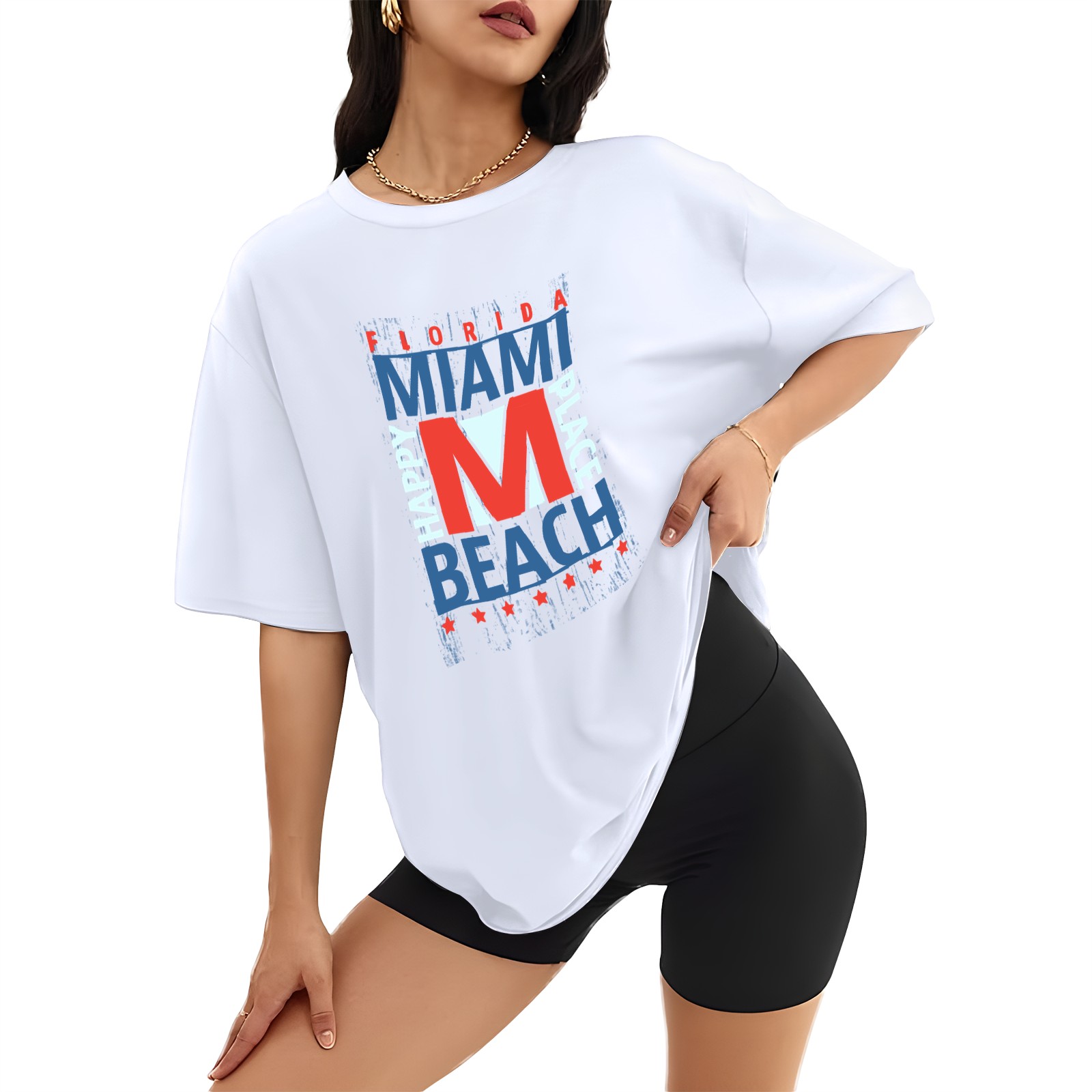 Miami Beach T-Shirt Tops Short Sleeves Shirt Crew Neck Shirt XS