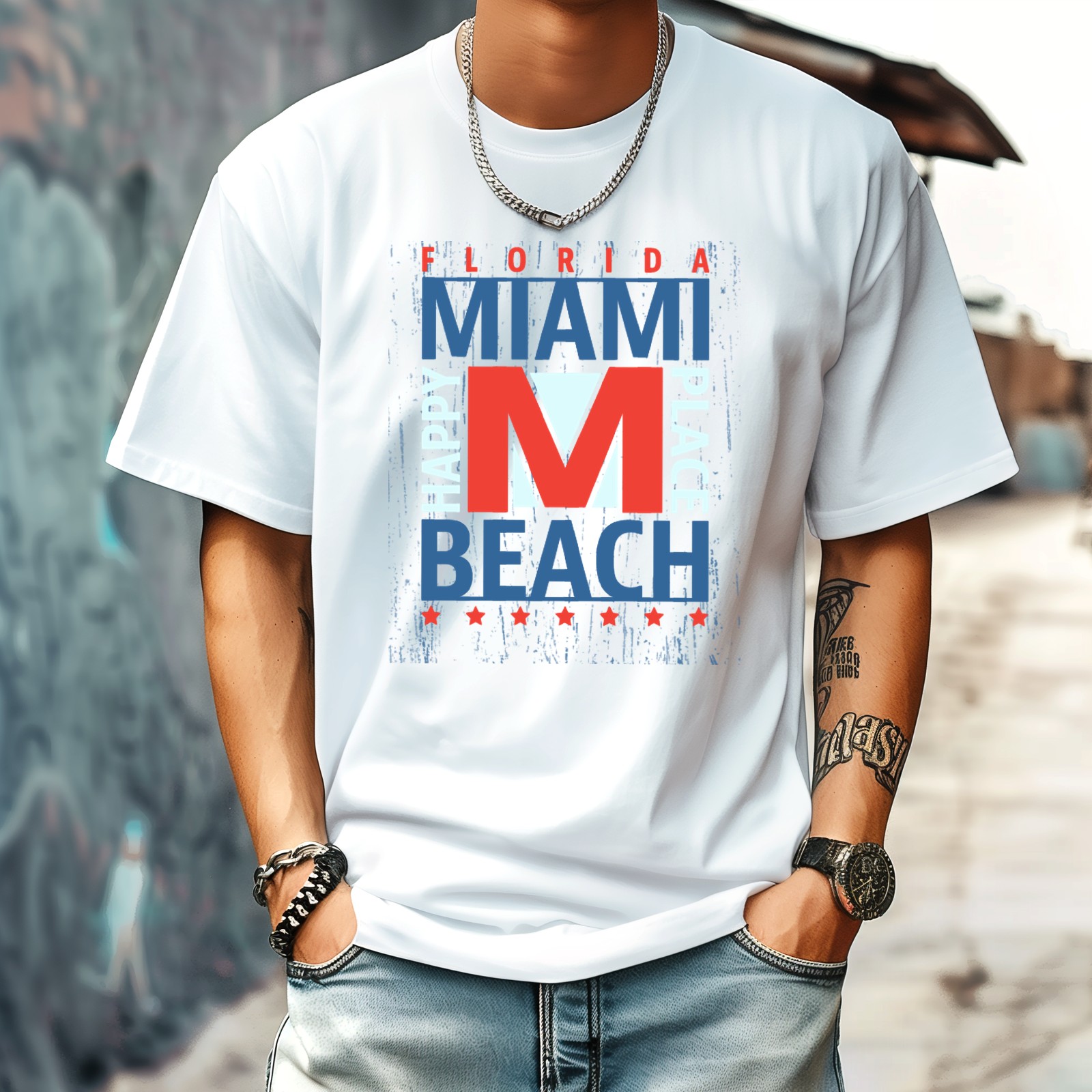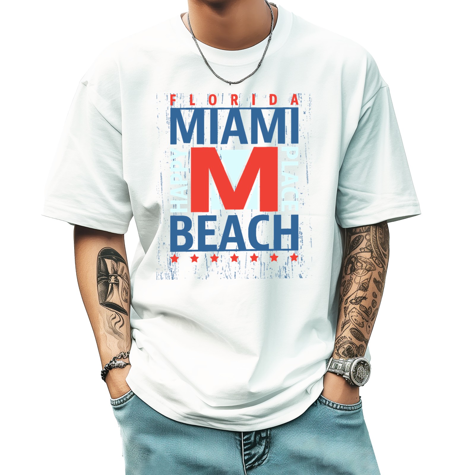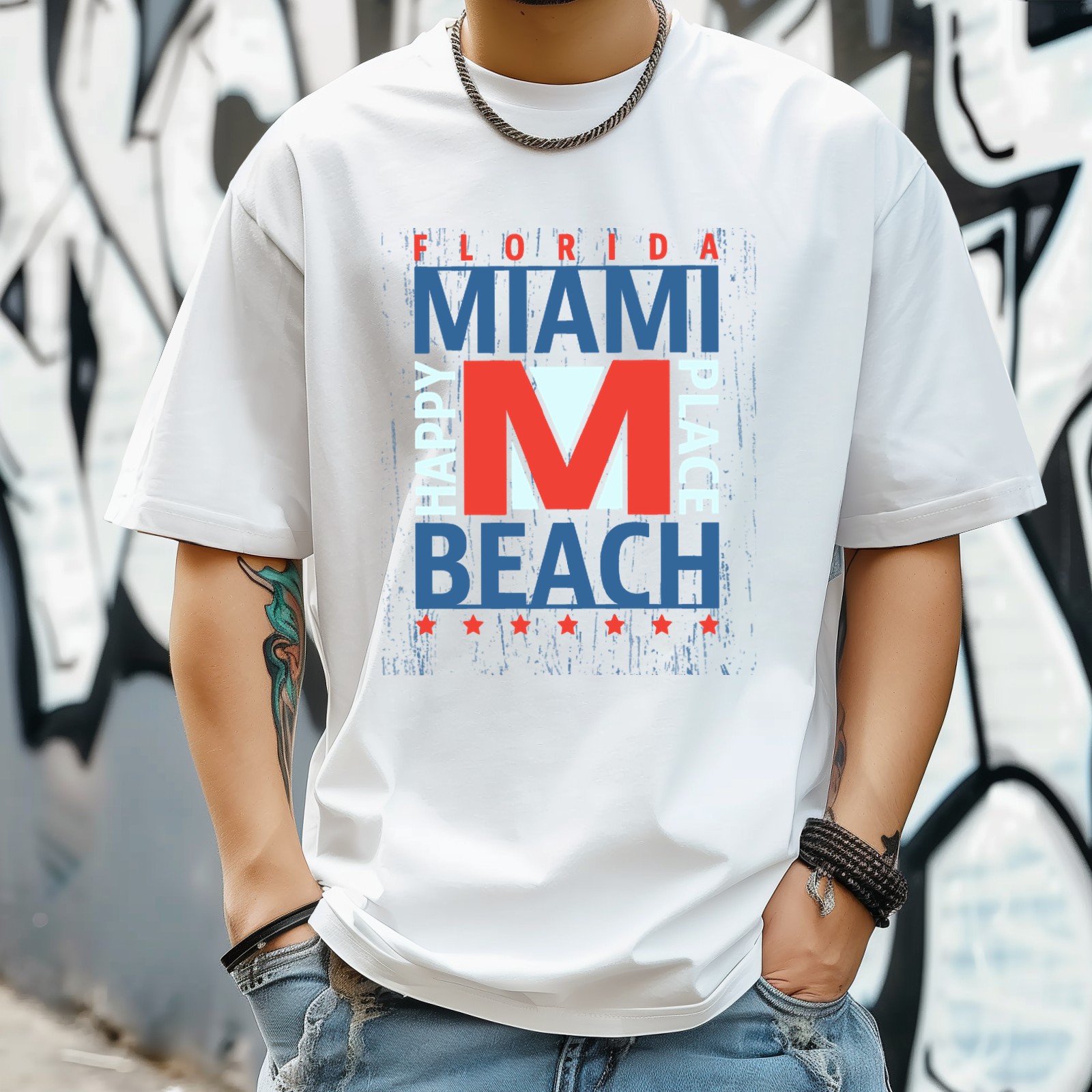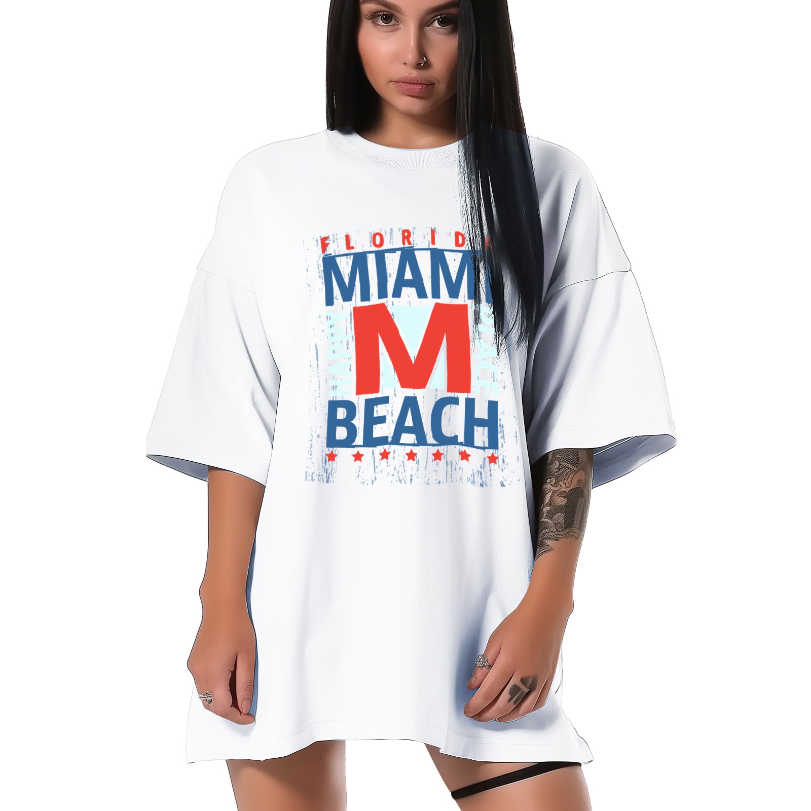 Miami Beach T-Shirt Tops Short Sleeves Shirt Crew Neck Shirt XS