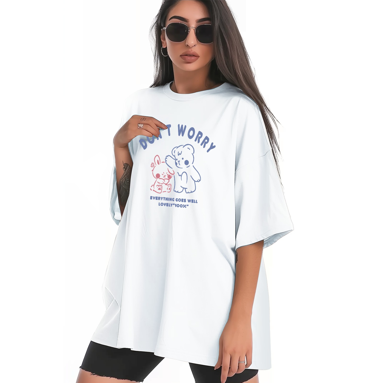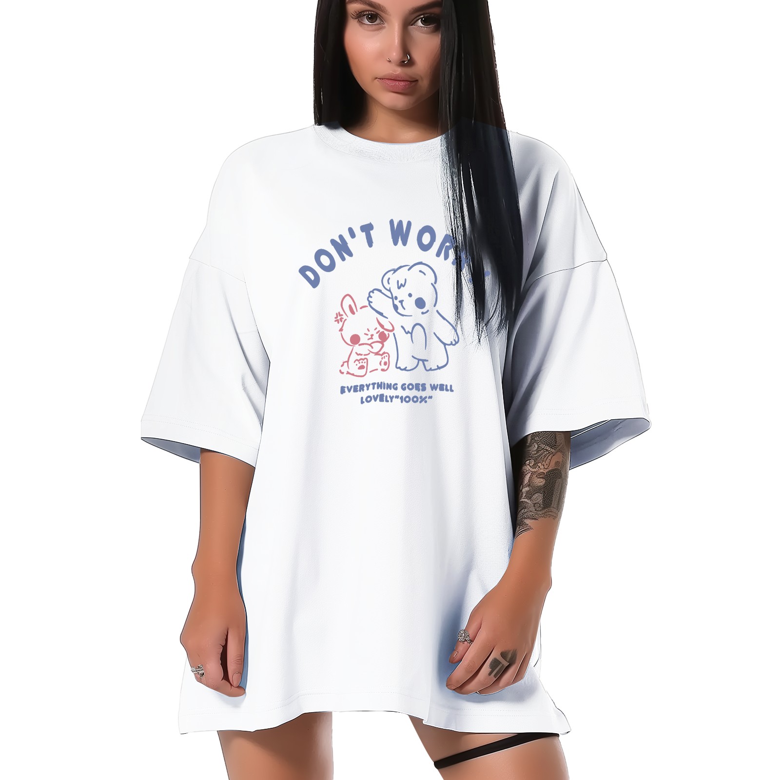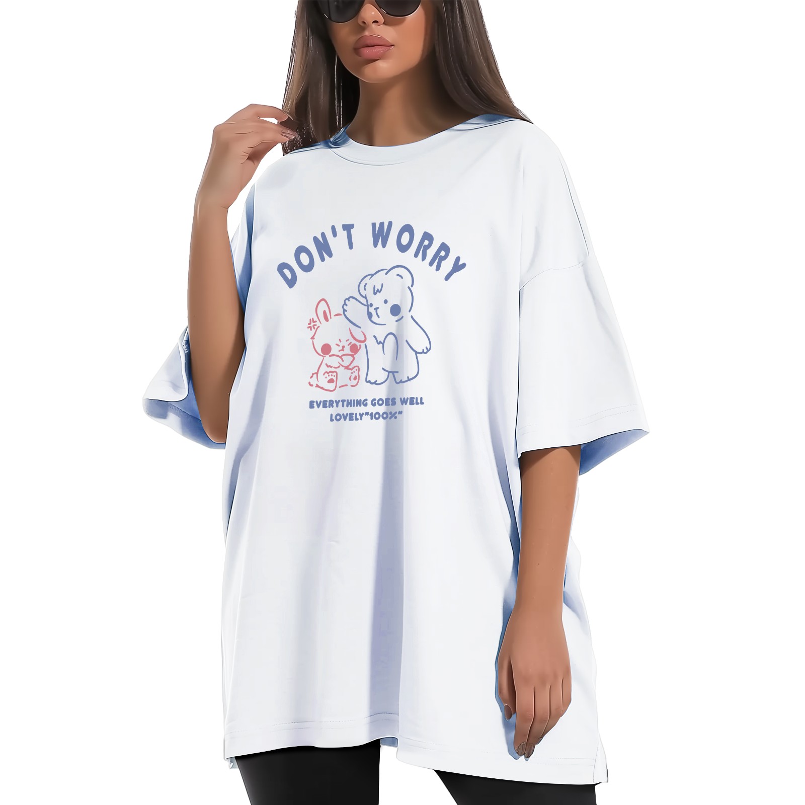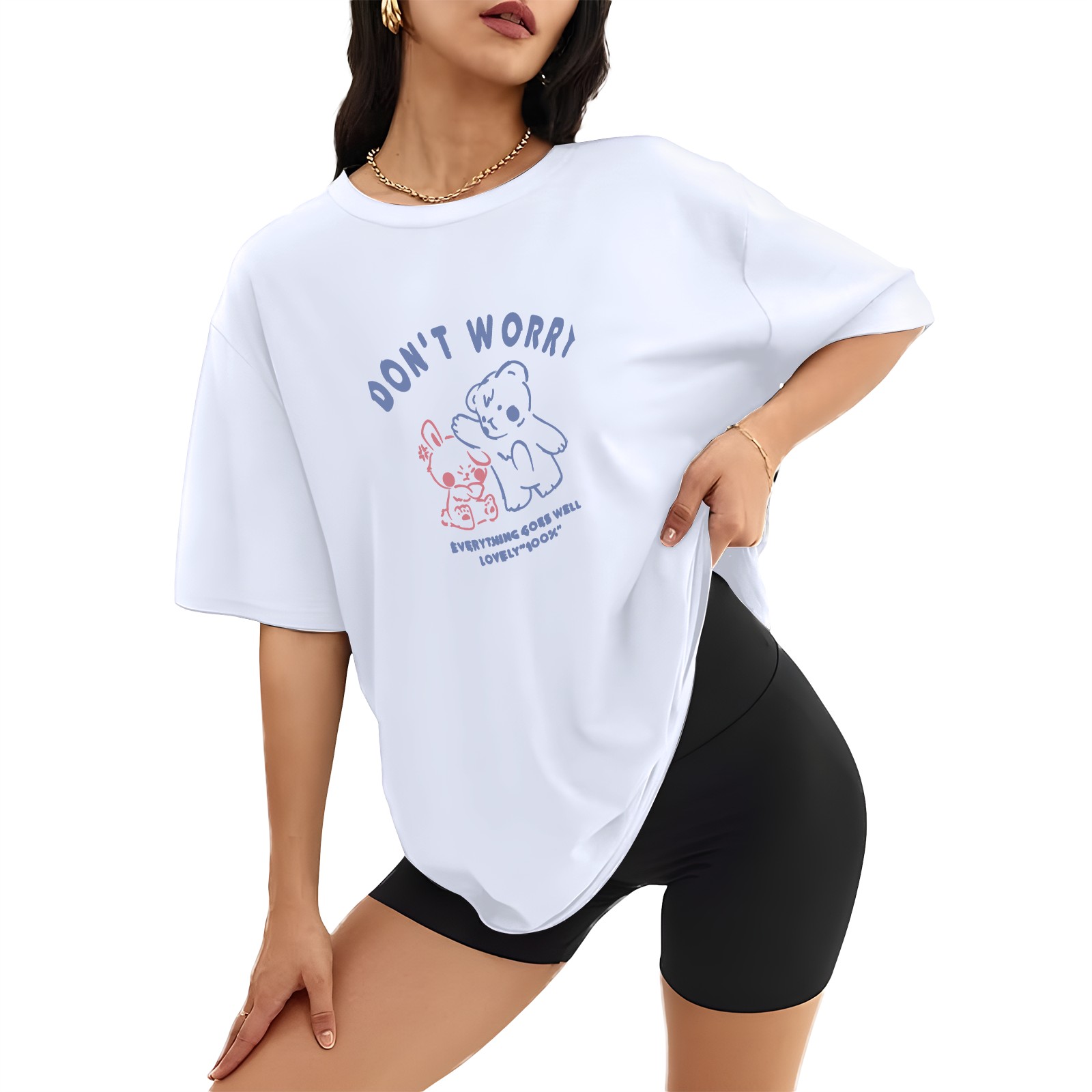 Don't Worry T-Shirt Tops Short Sleeves Shirt Crew Neck Shirt XS