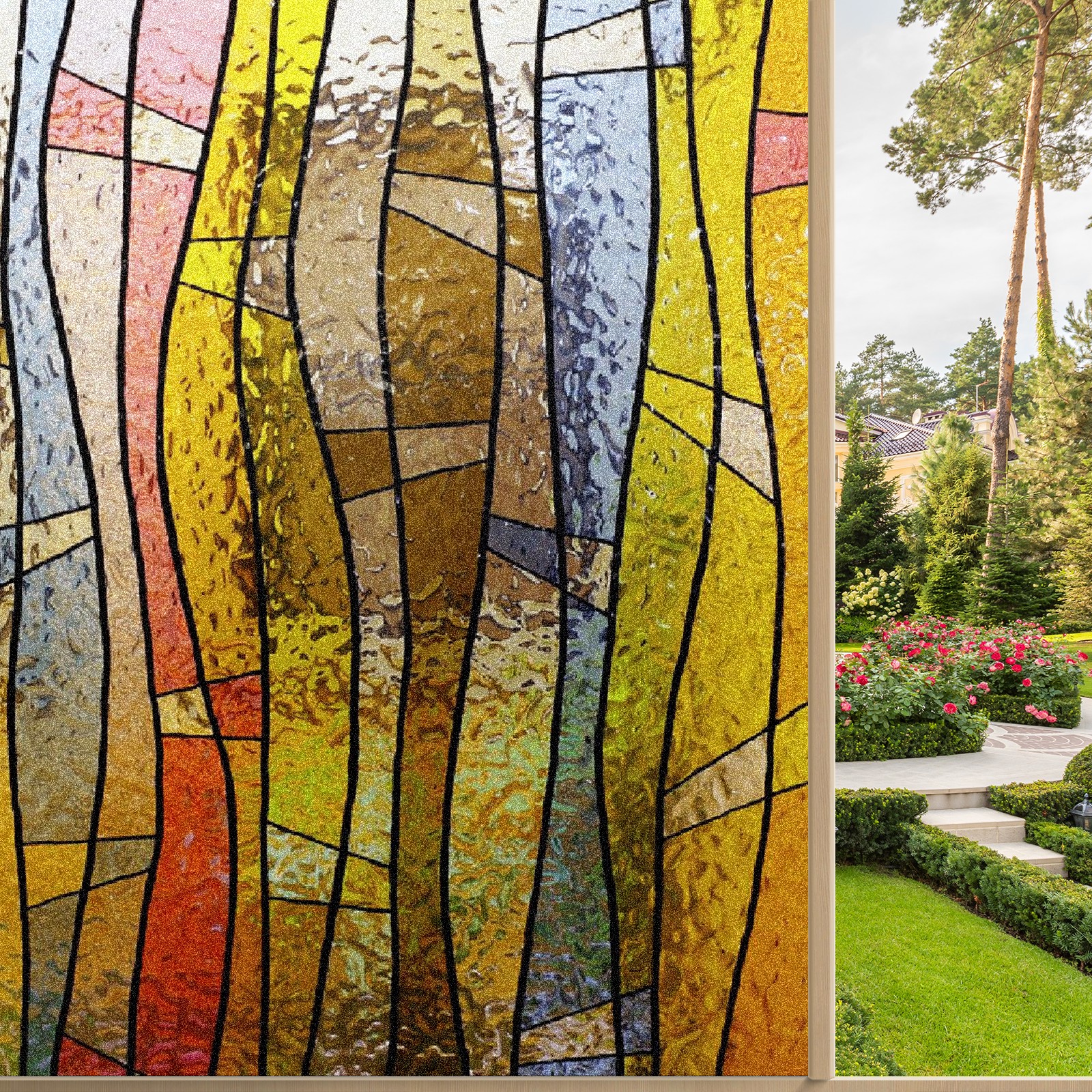 Static Cling Decorative Window Film Frosted Privacy Film Window Clings for Glass Windows No Glue Window Sticker for Bathroom Bedroom Office Vintage Stained Glass Yellow