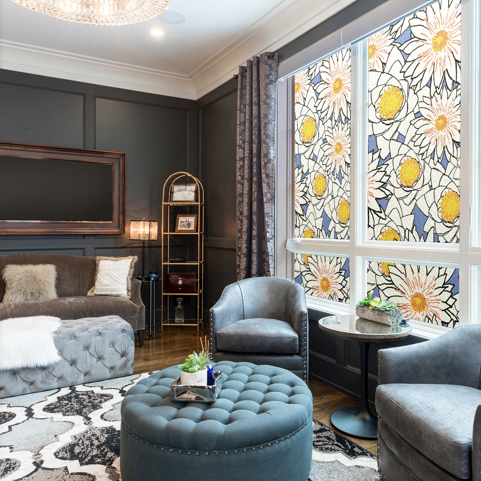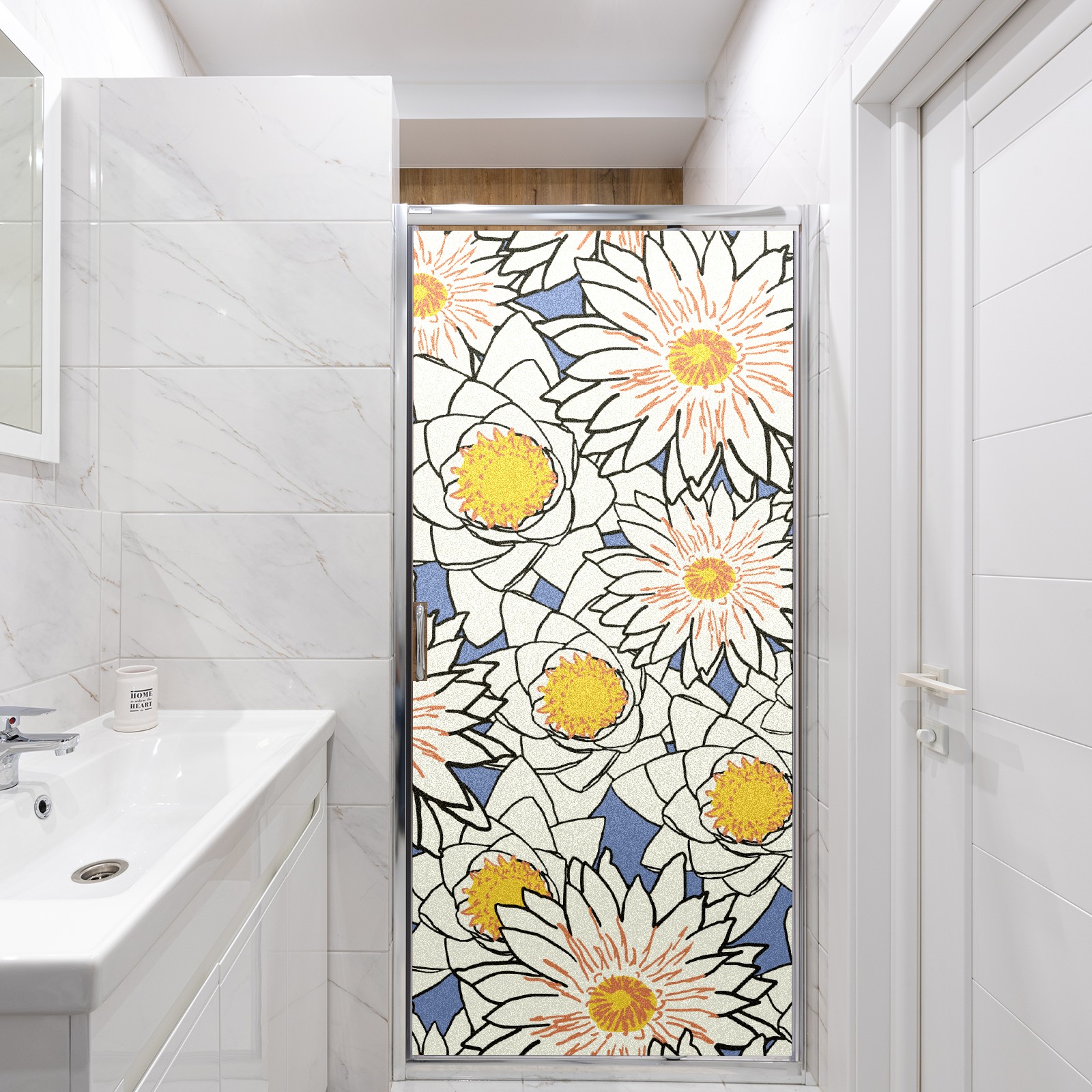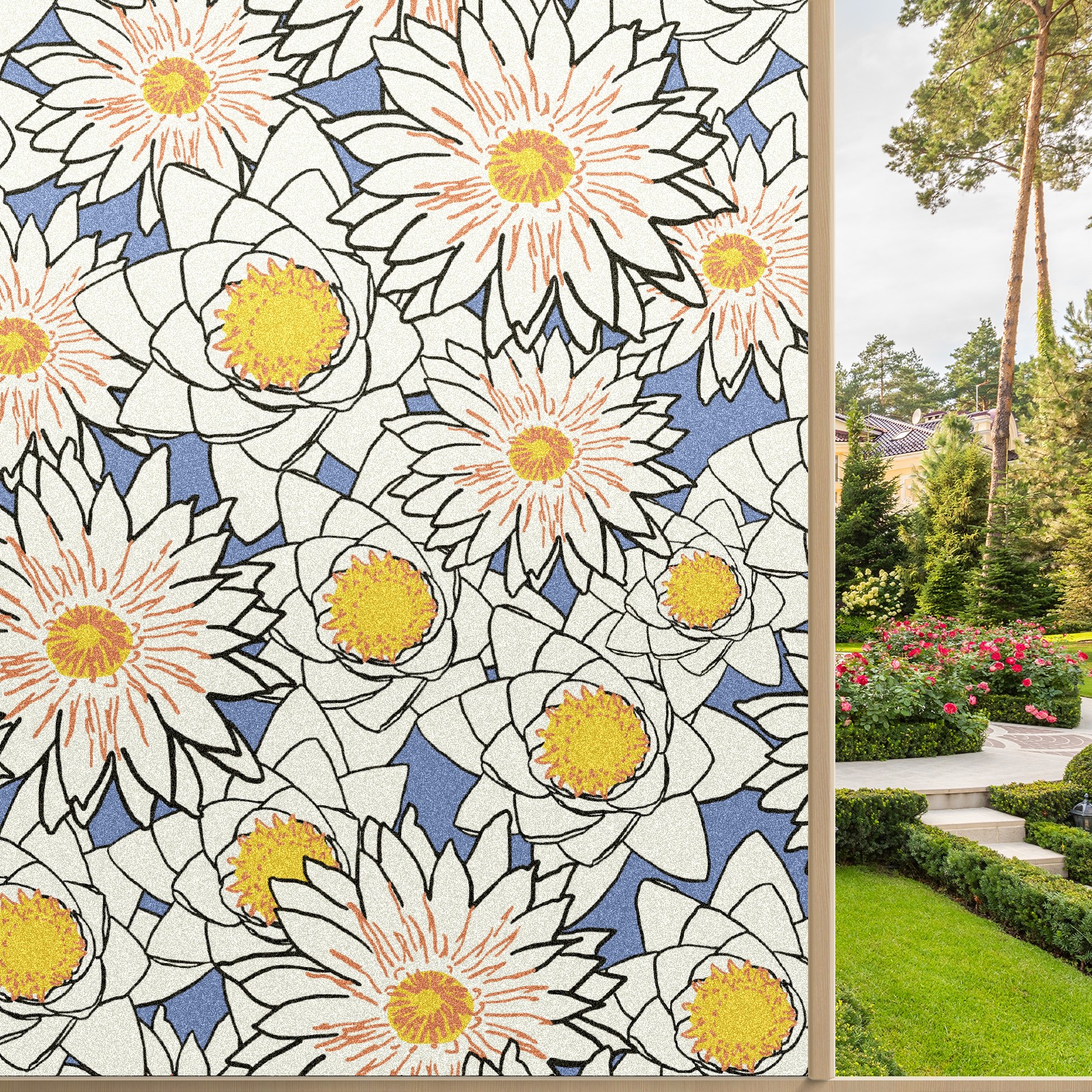 Static Cling Decorative Window Film Frosted Privacy Film Window Clings for Glass Windows No Glue Window Sticker for Bathroom Bedroom Office Stained Glass Flower