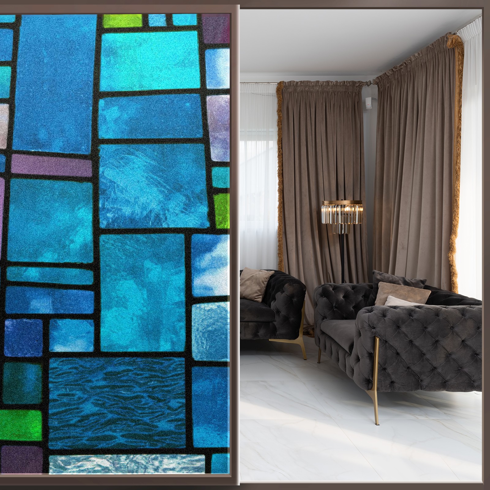 • Transform Your House to Home with BRTURLAIR Frosted Glass Window Film!</b><br> ●BRTURLAIR Window Film with Graphic Printings, Bright and Vivid Color, Our Window Clings are Great Home Decoration.<br> ●This one-way window tint offers excellent sun blocking capabilities, effectively reducing heat and glare, while still allowing natural light into your space.<br> ●With its non-adhesive static cling technology, installation is a breeze.<br> ●Plus, it’s reusable, making it perfect for renters.<br> <br> Installation Tips:</b> Before installation, please make sure the window surface, edges and corners are clean enough without any dust; during installation, please spray a lot of water both on the window surface and window film back for effective attachment; after installation, please trim the margins and leave edge gaps to squeeze out air bubbles easily.