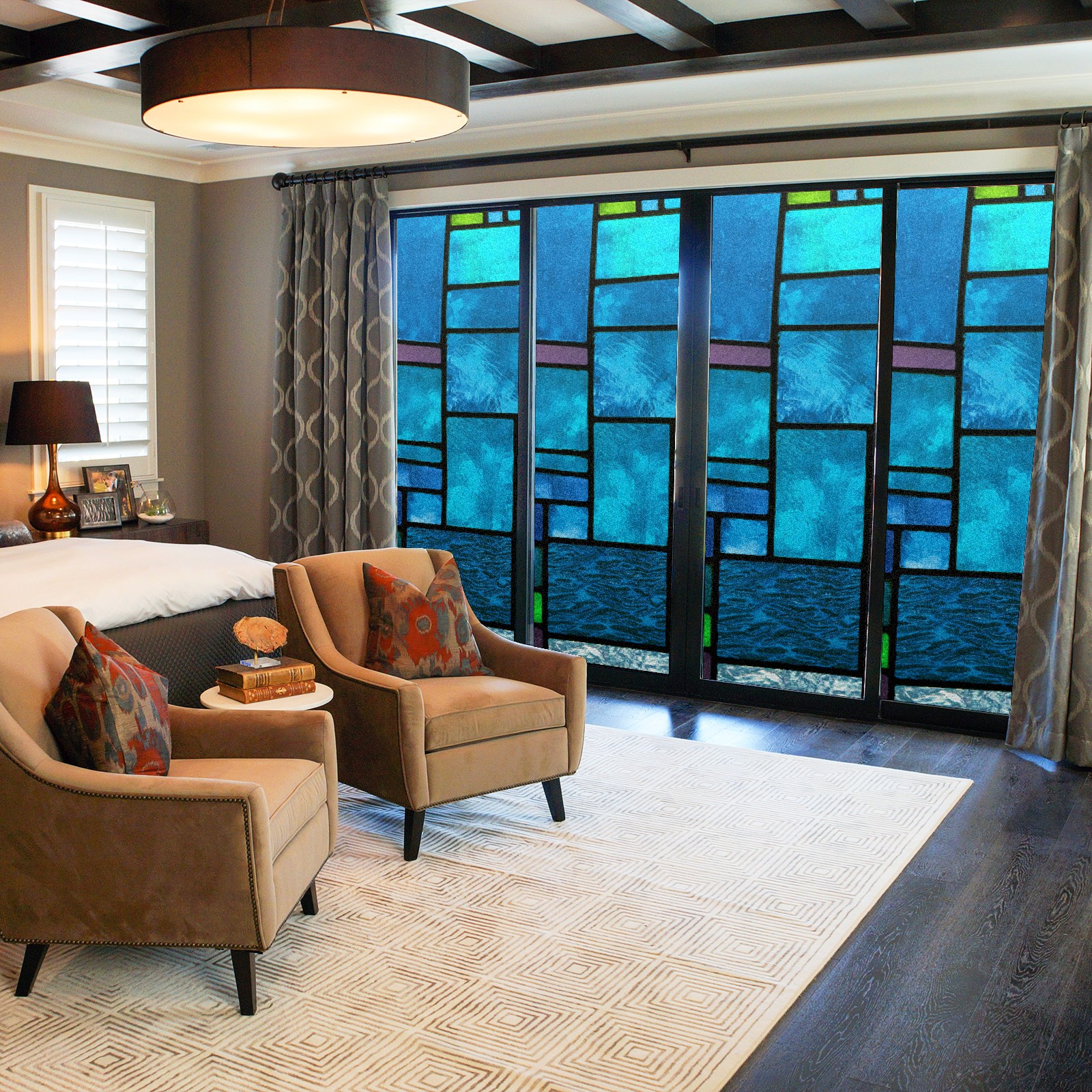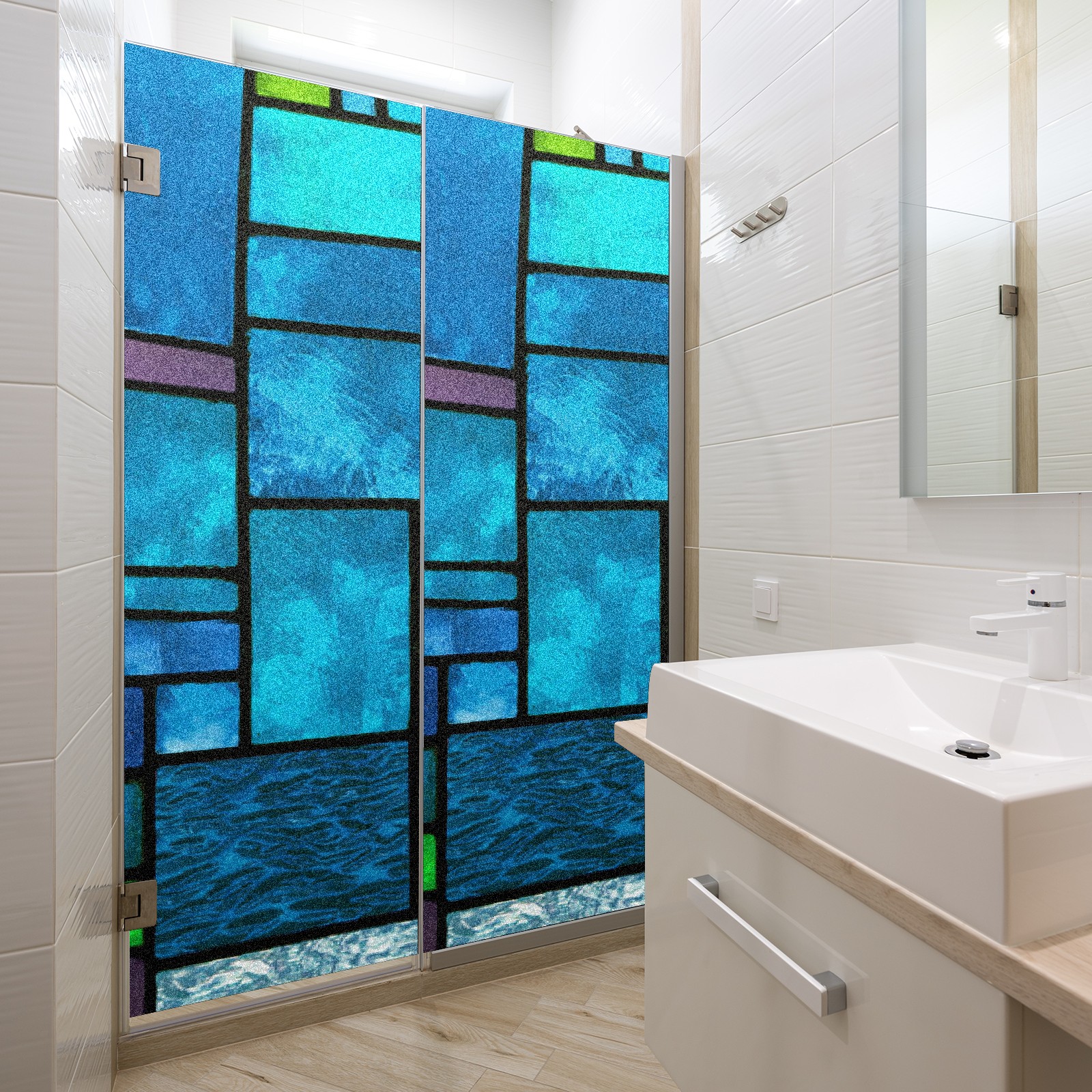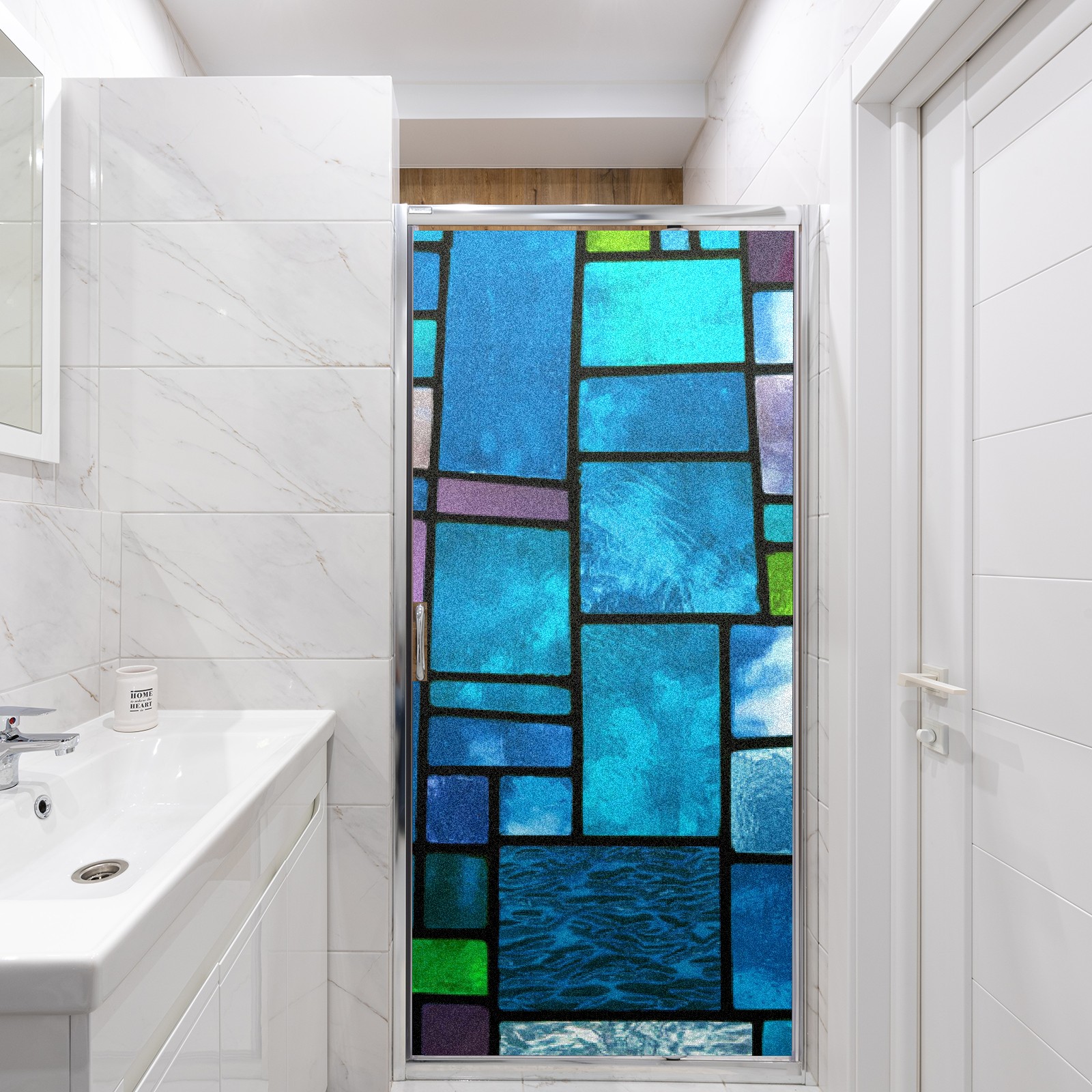 Static Cling Decorative Window Film Frosted Privacy Film Window Clings for Glass Windows No Glue Window Sticker for Bathroom Bedroom Office Blue Green Stained Glass