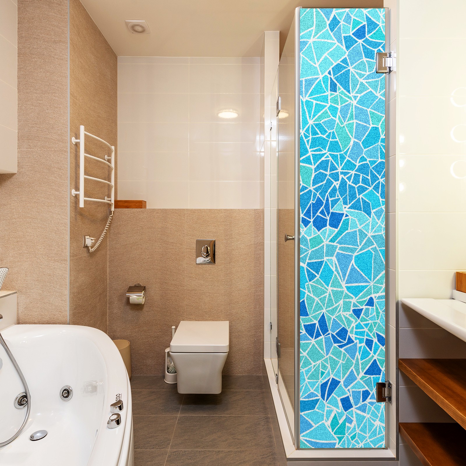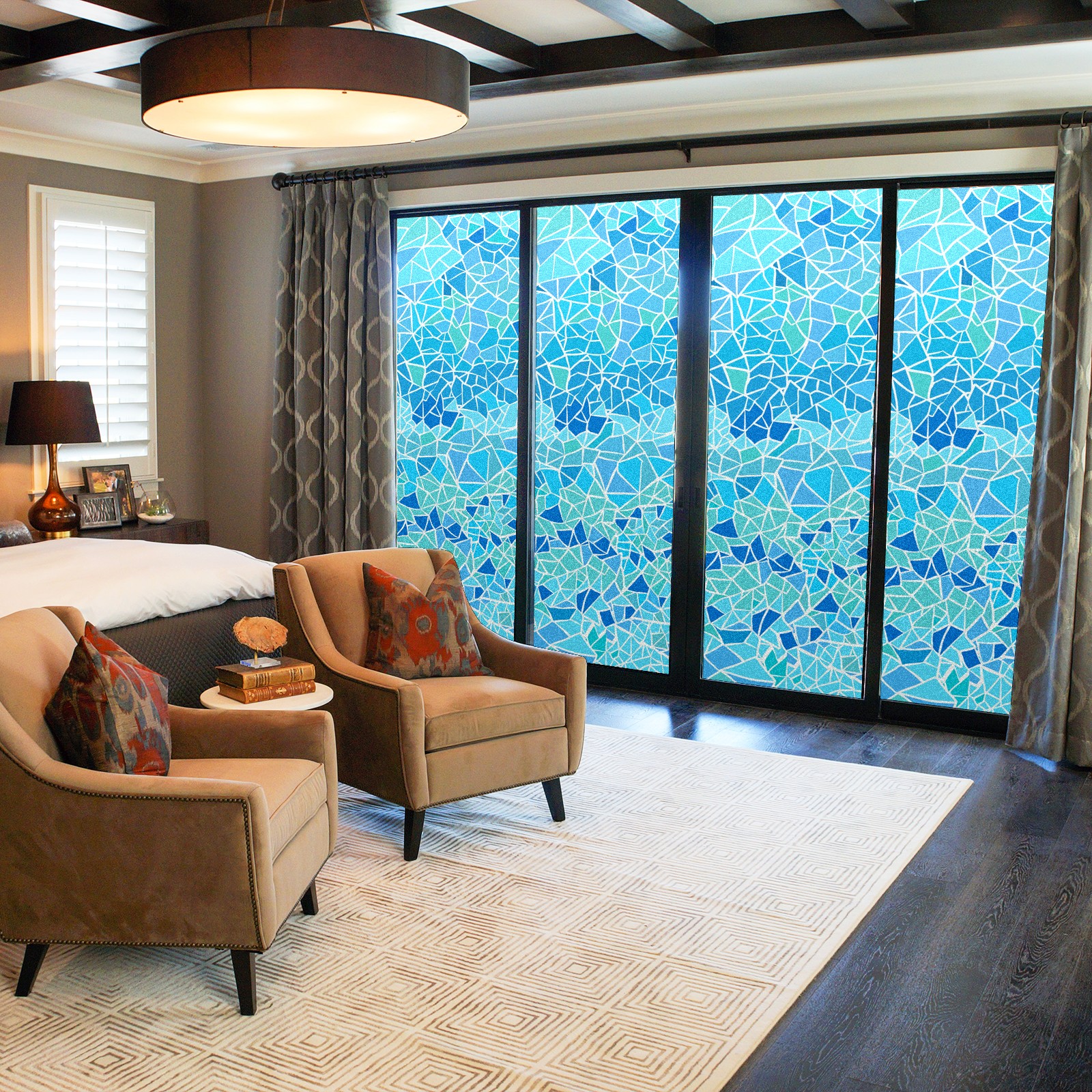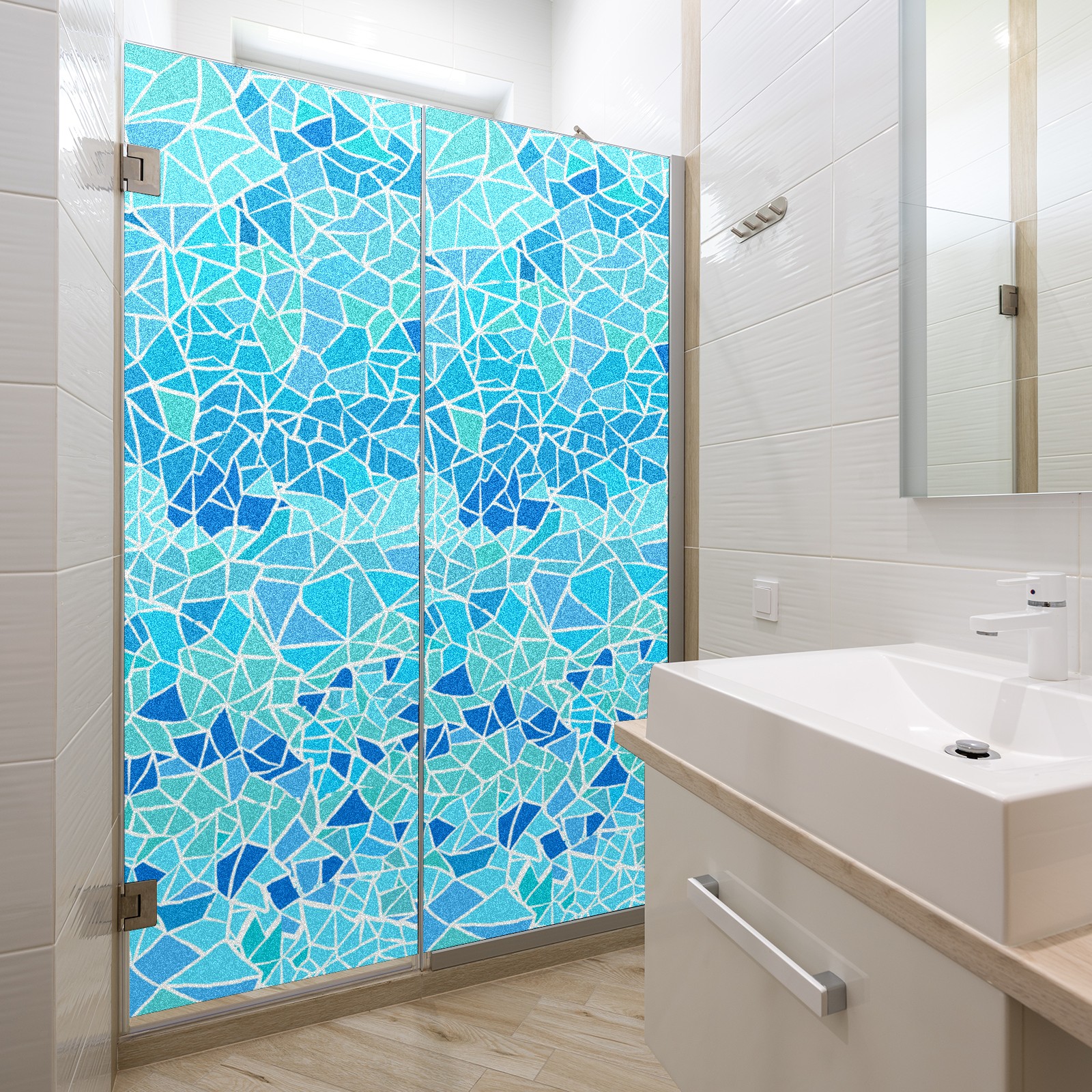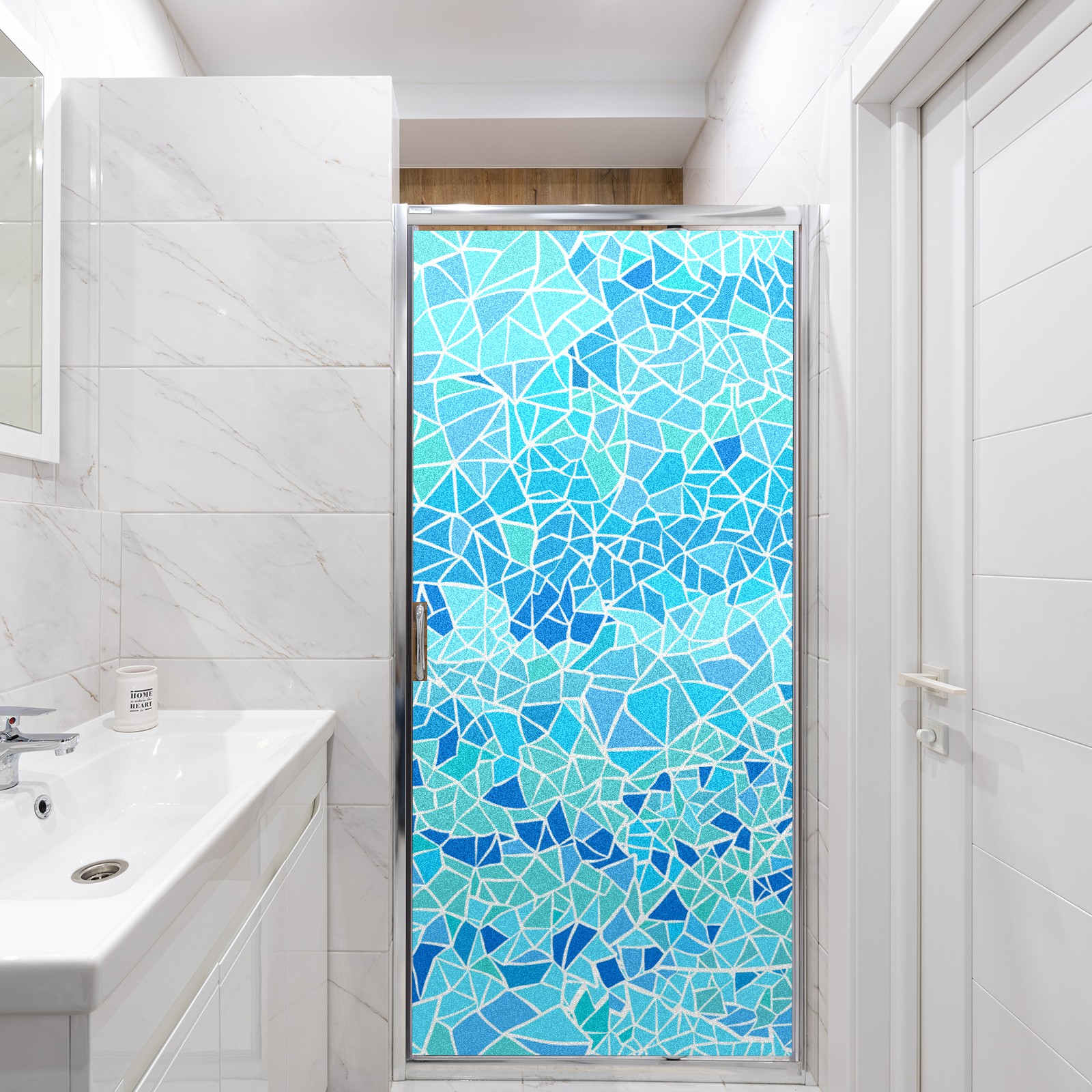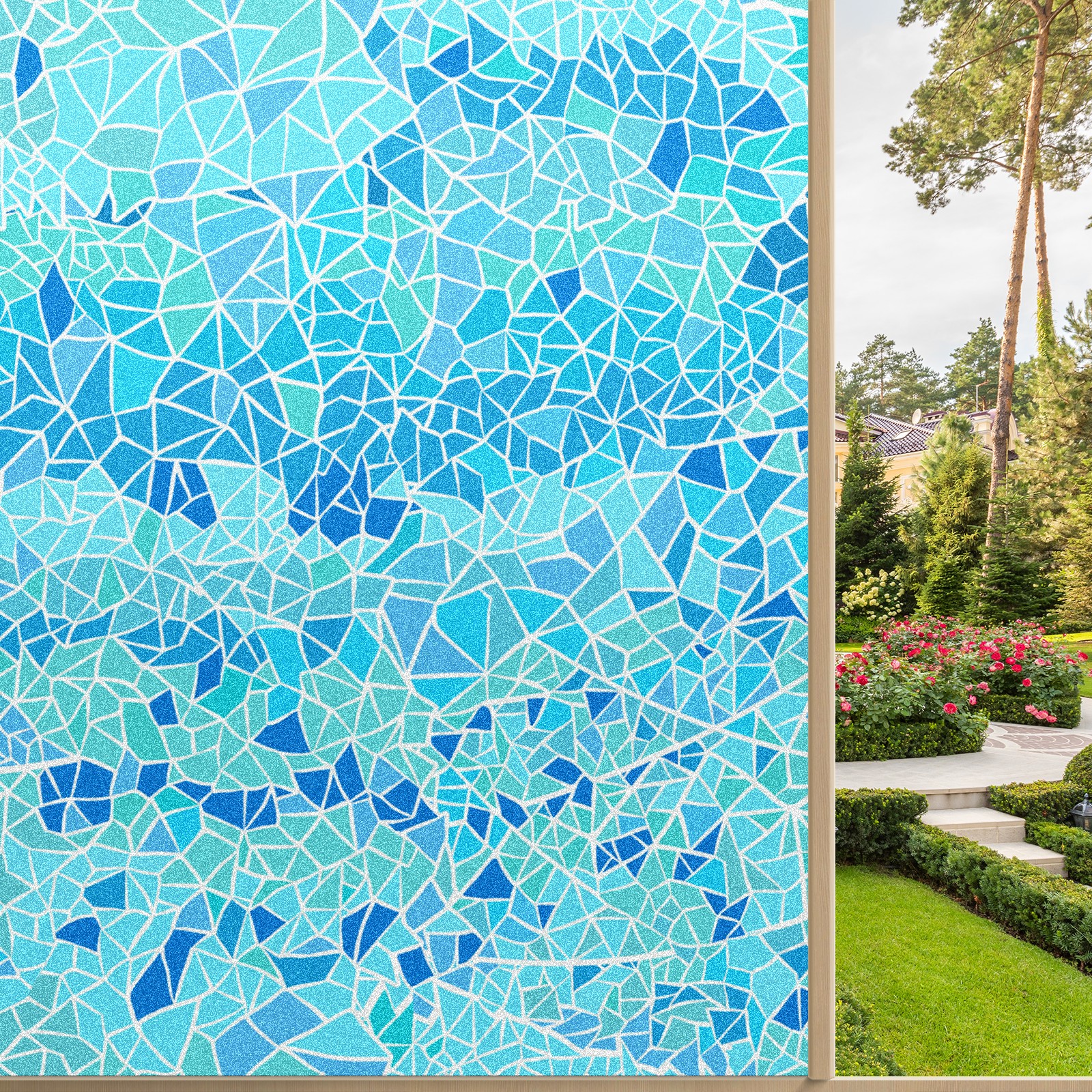 Static Cling Decorative Window Film Frosted Privacy Film Window Clings for Glass Windows No Glue Window Sticker for Bathroom Bedroom Office Stained Glass Blue