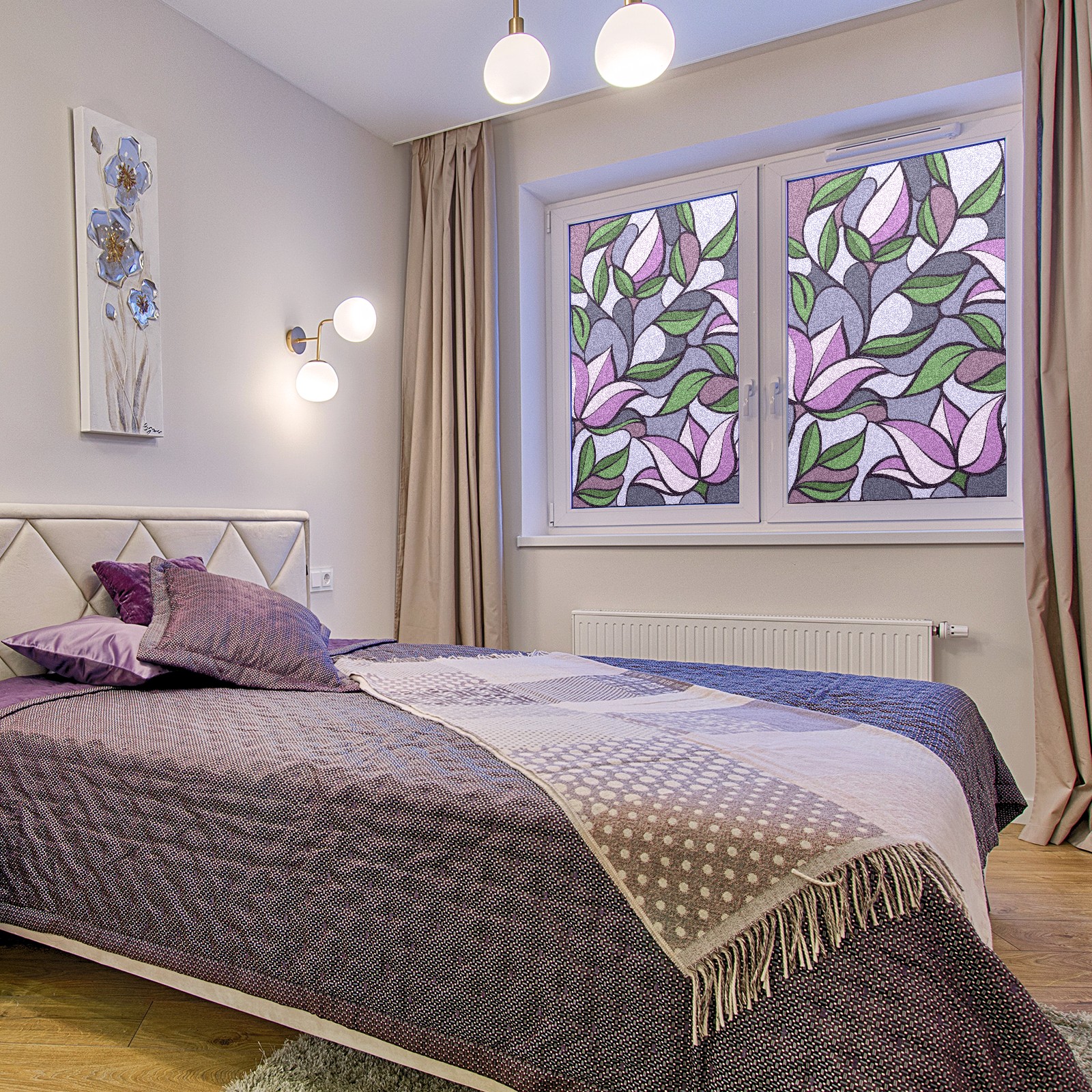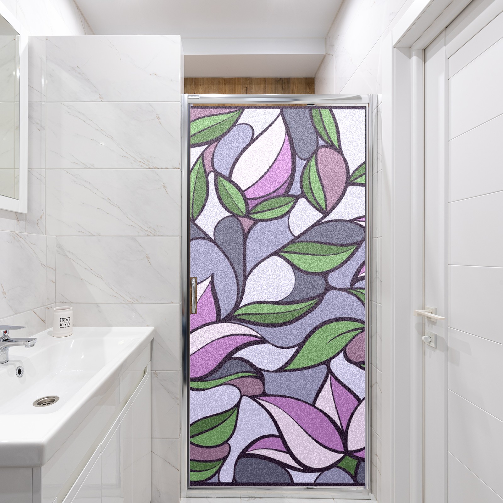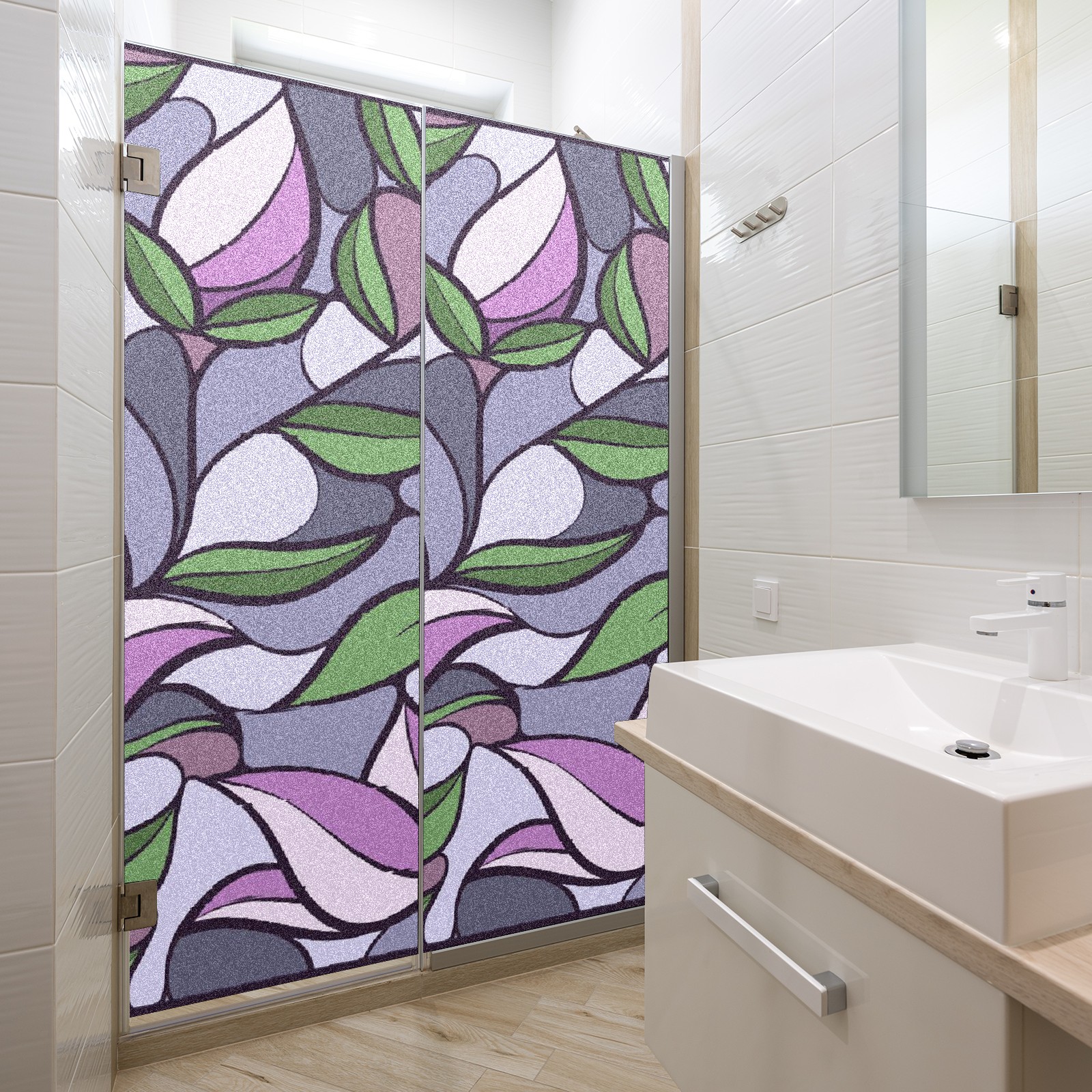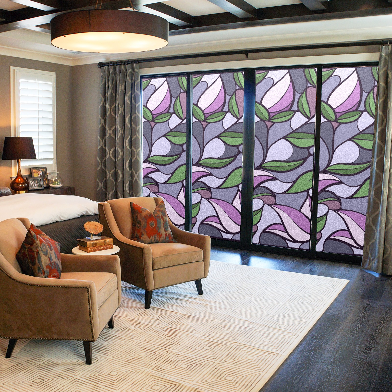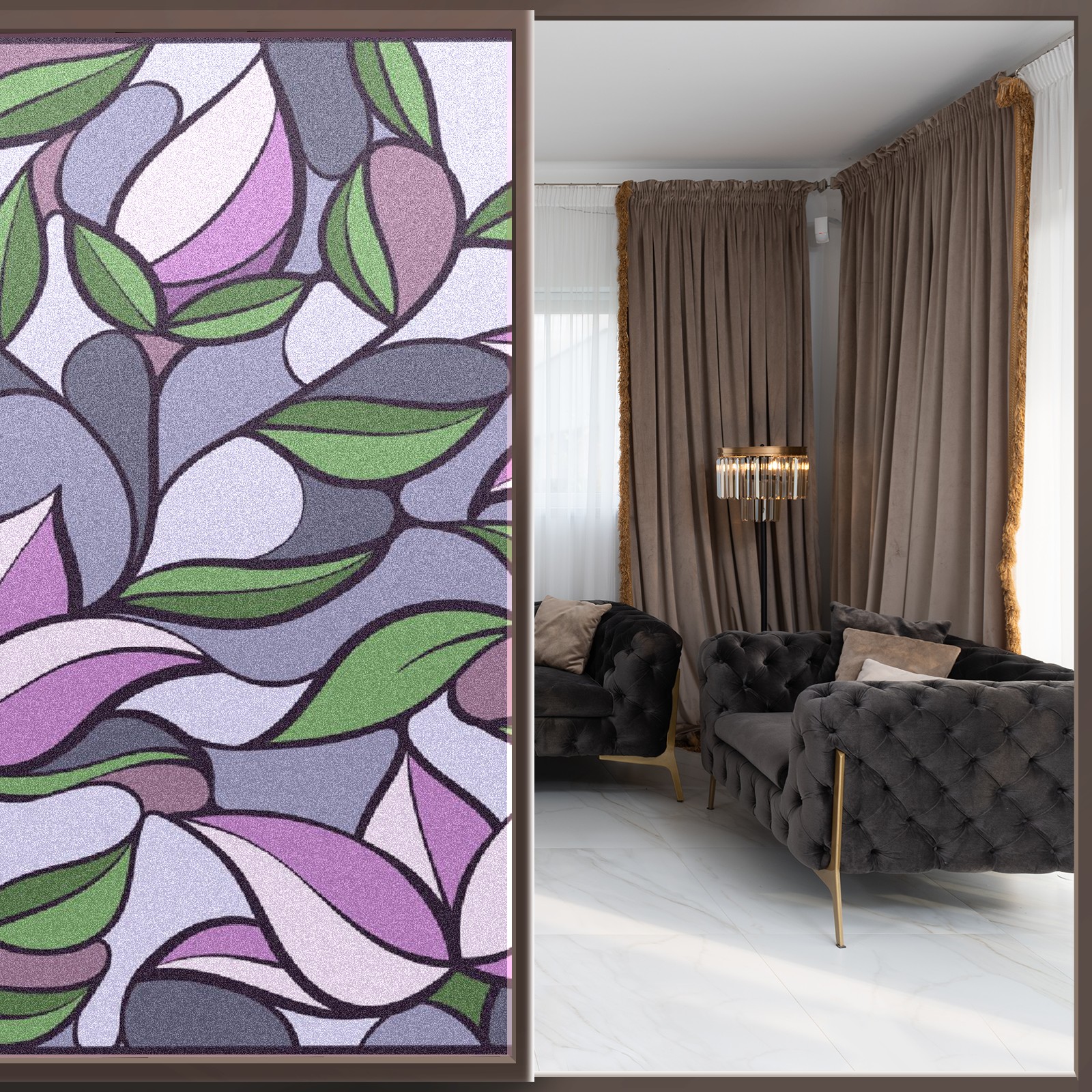 Static Cling Decorative Window Film Frosted Privacy Film Window Clings for Glass Windows No Glue Window Sticker for Bathroom Bedroom Office Vintage Stained Glass Flower