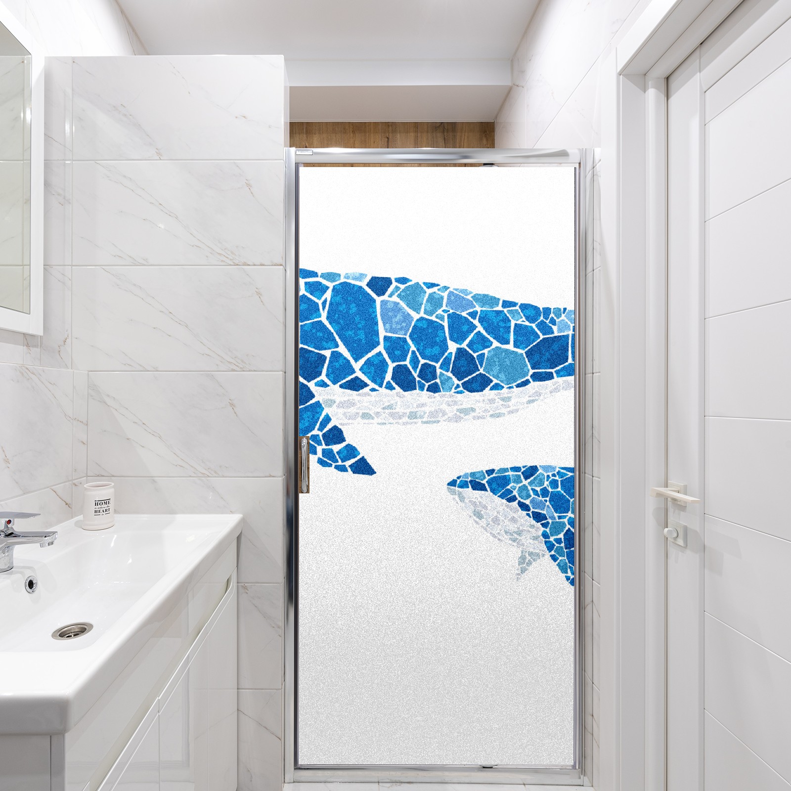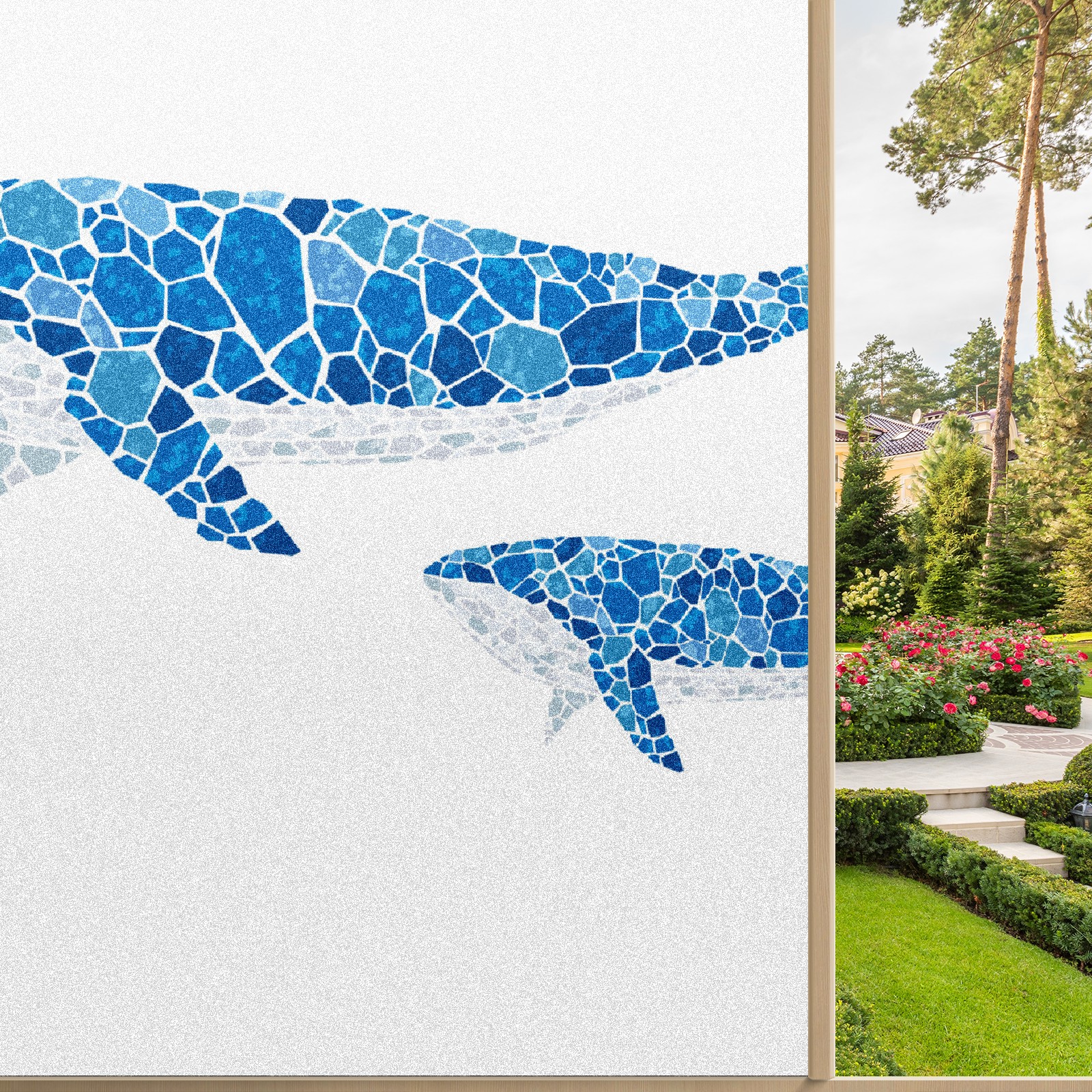 Static Cling Decorative Window Film Frosted Privacy Film Window Clings for Glass Windows No Glue Window Sticker for Bathroom Bedroom Office Stained Glass Whale