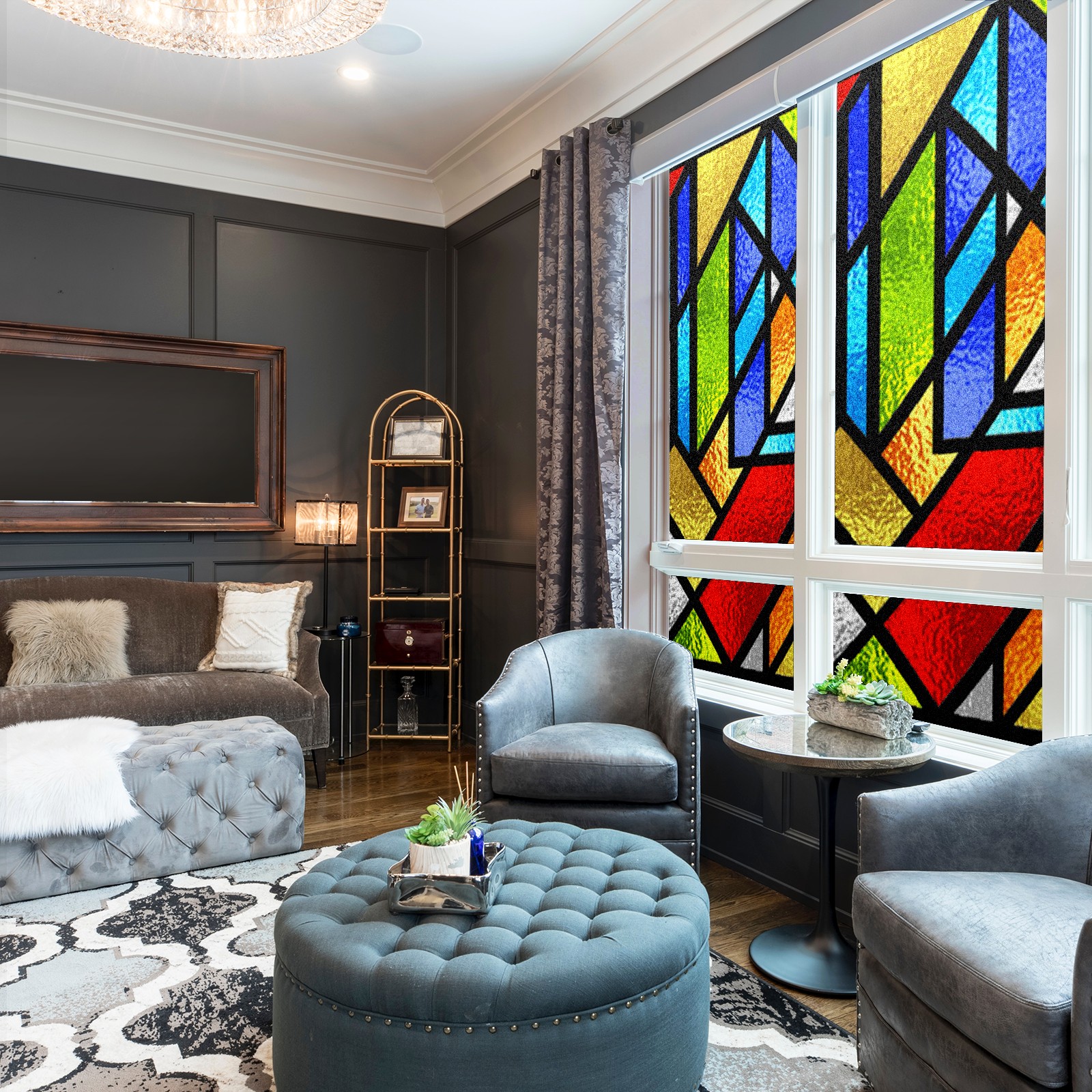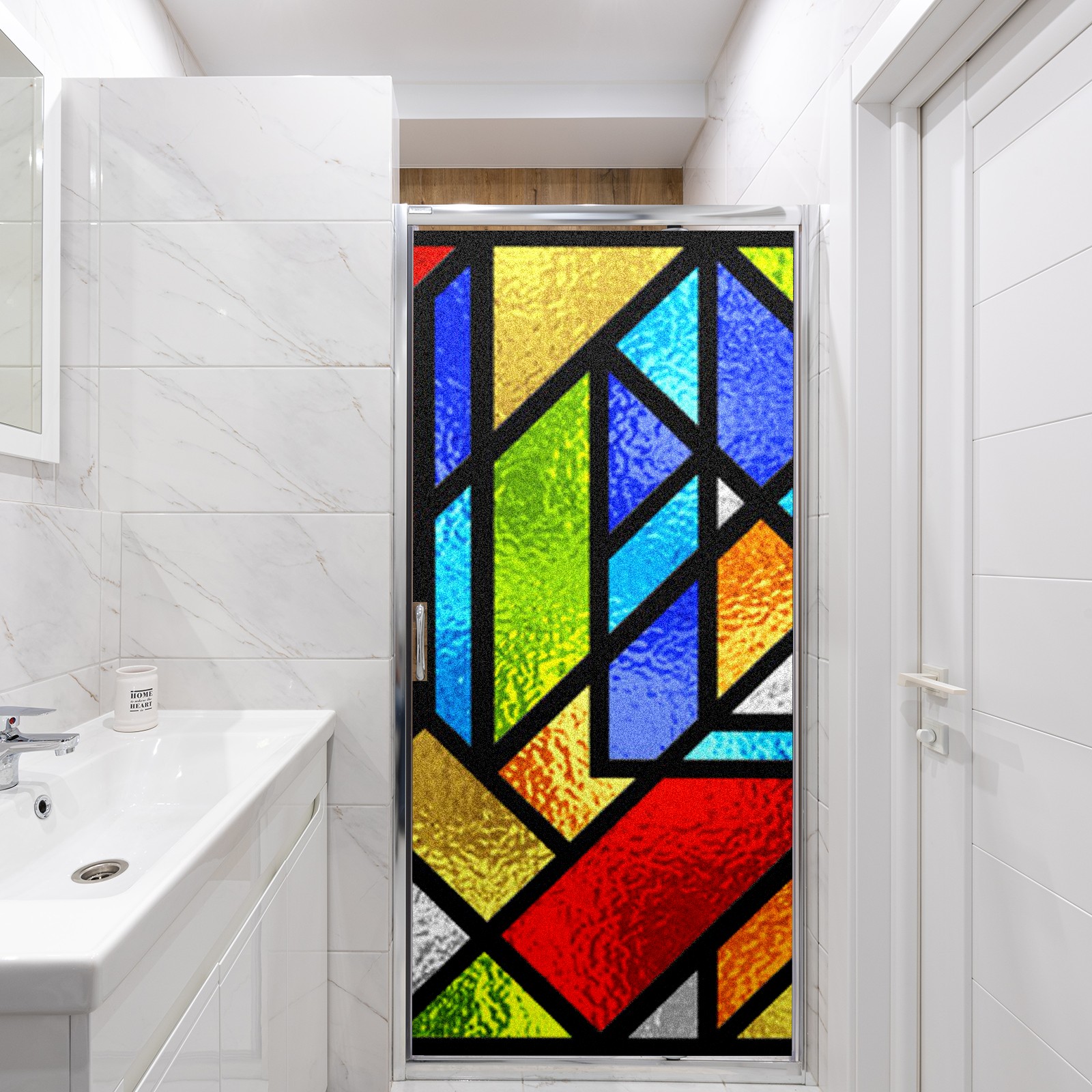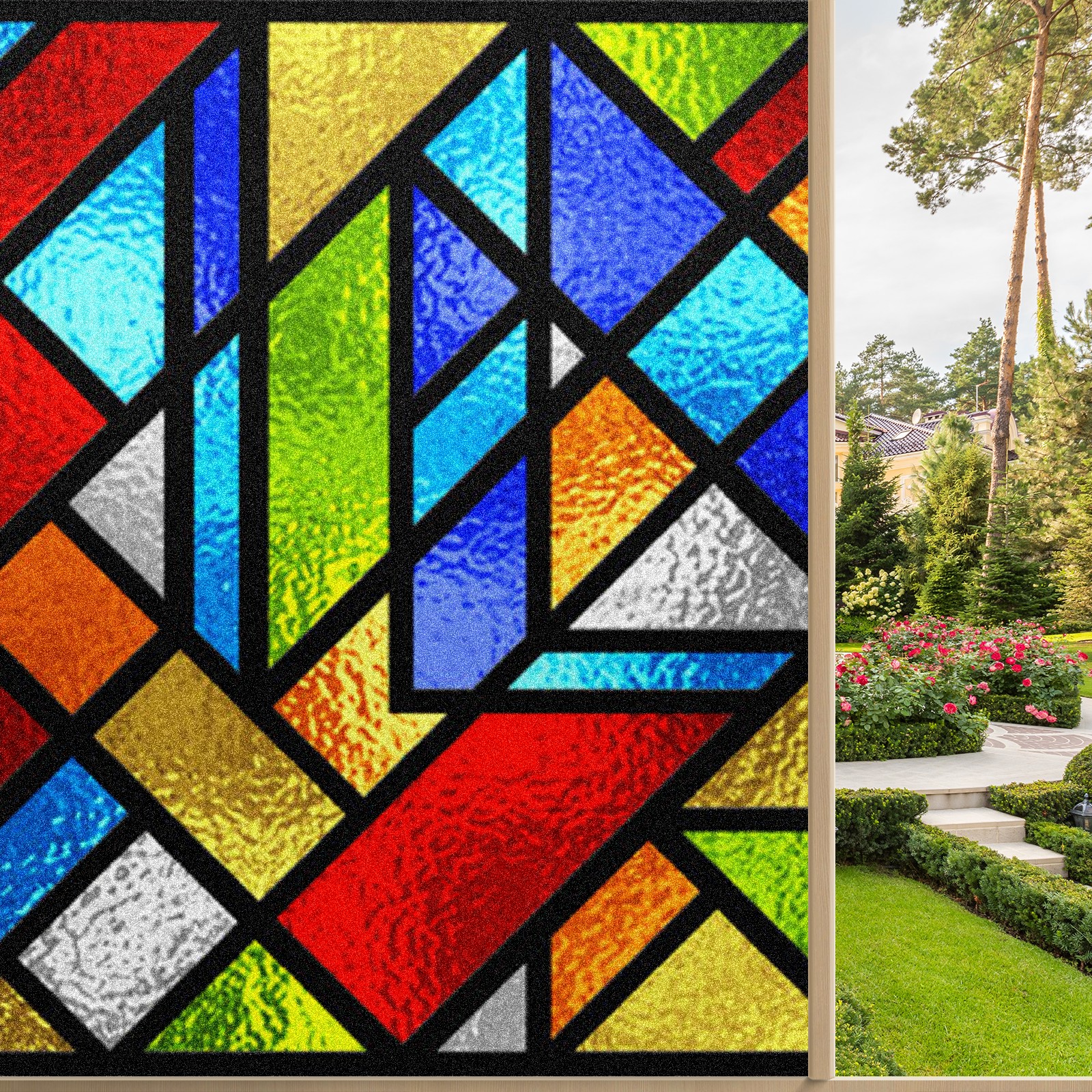 Static Cling Decorative Window Film Frosted Privacy Film Window Clings for Glass Windows No Glue Window Sticker for Bathroom Bedroom Office Vintage Stained Glass Texture