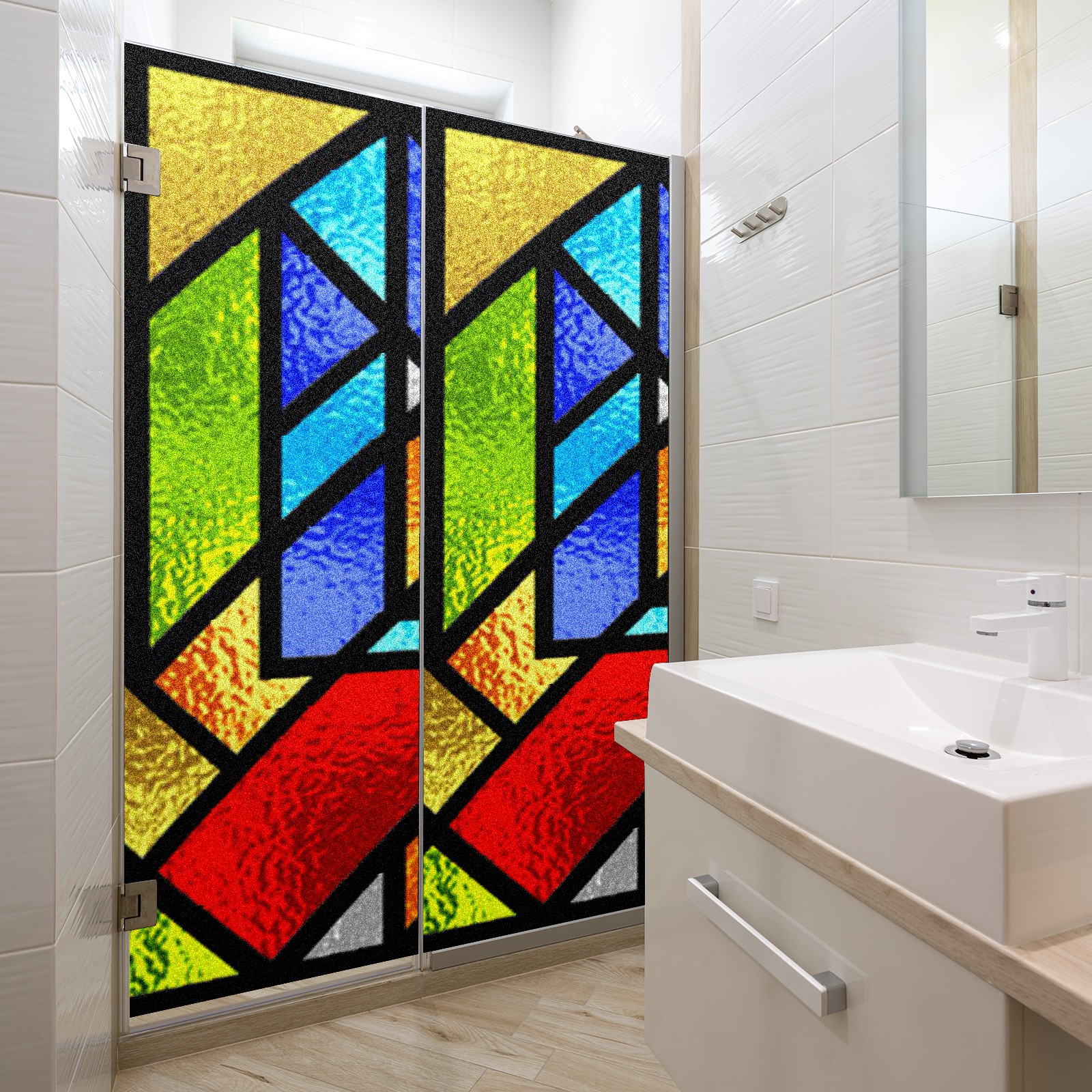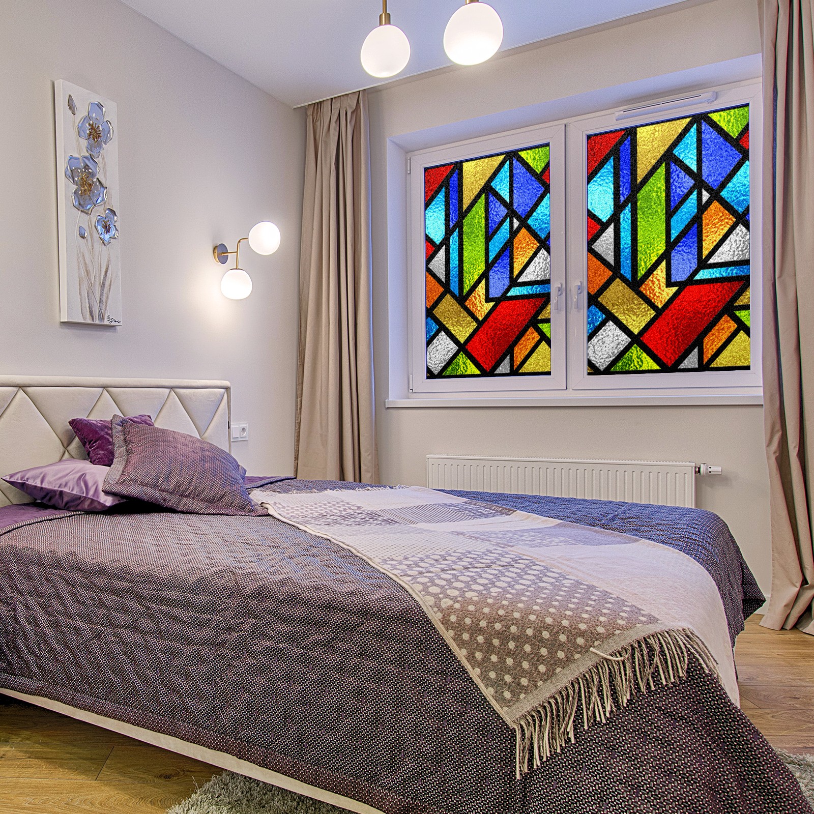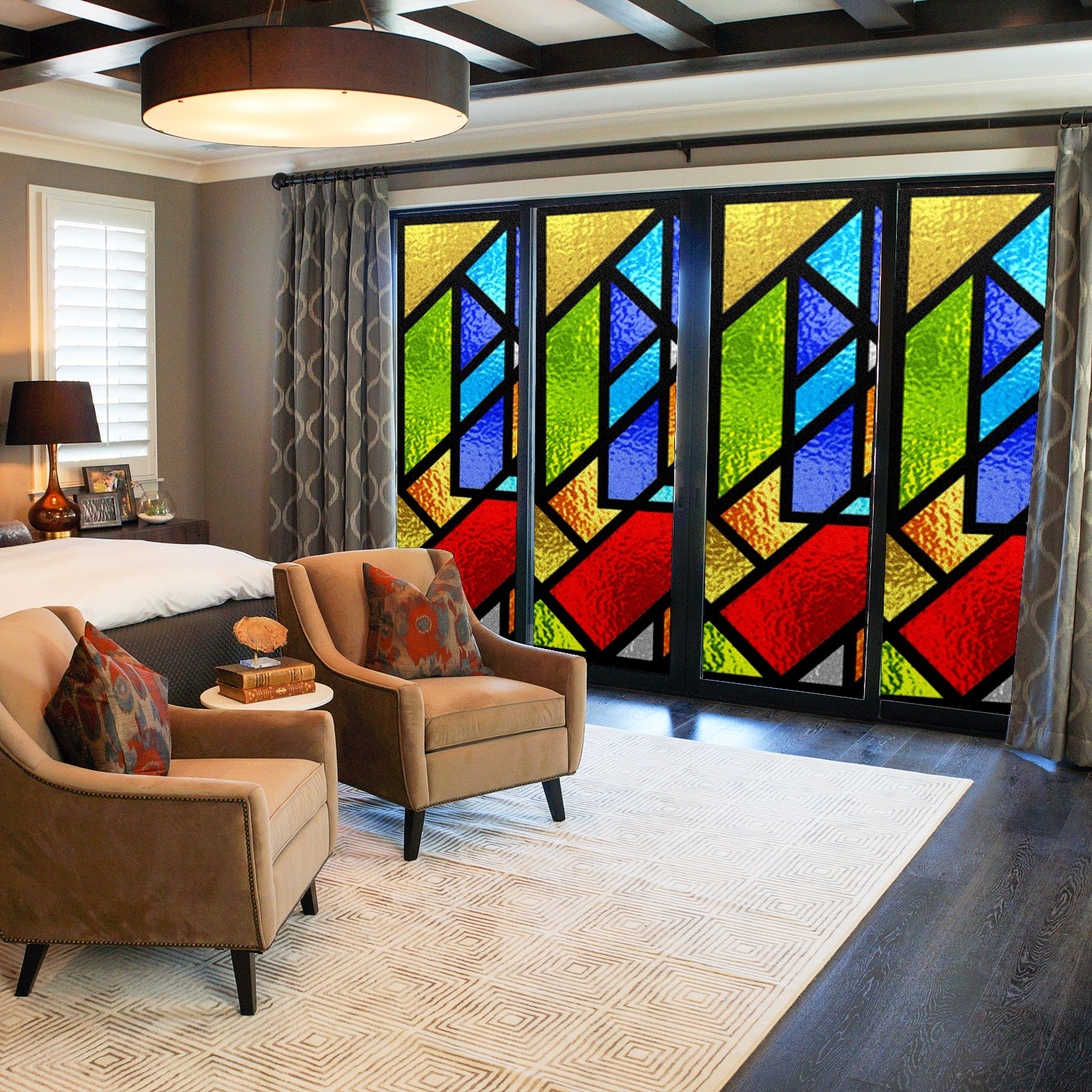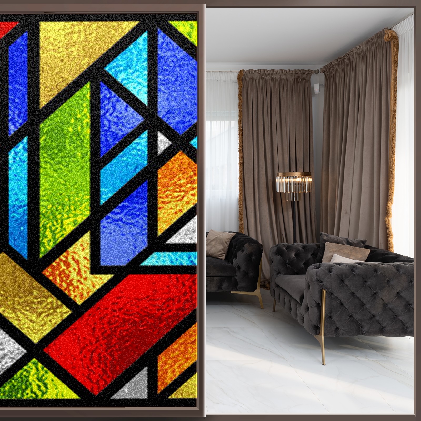 Static Cling Decorative Window Film Frosted Privacy Film Window Clings for Glass Windows No Glue Window Sticker for Bathroom Bedroom Office Vintage Stained Glass Texture