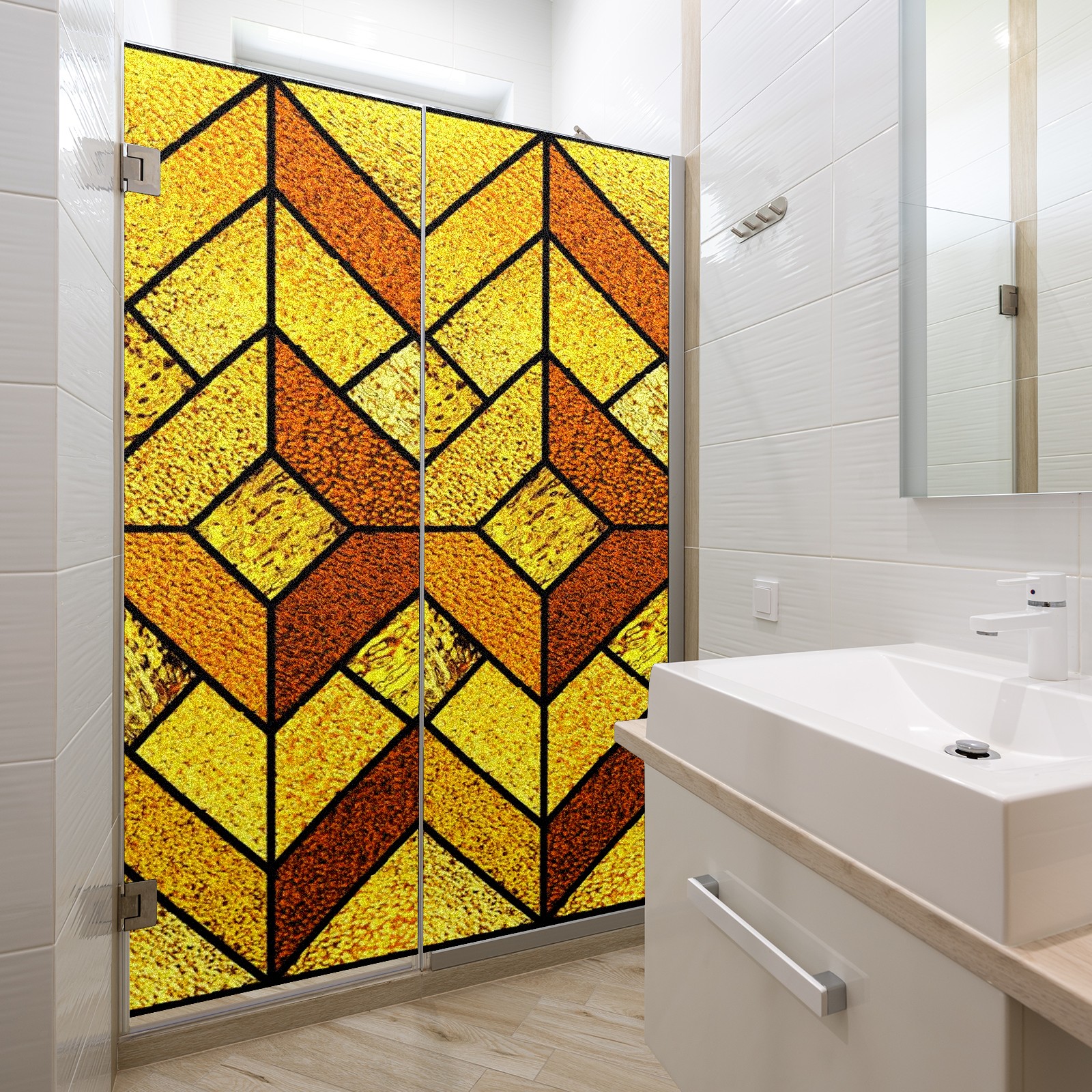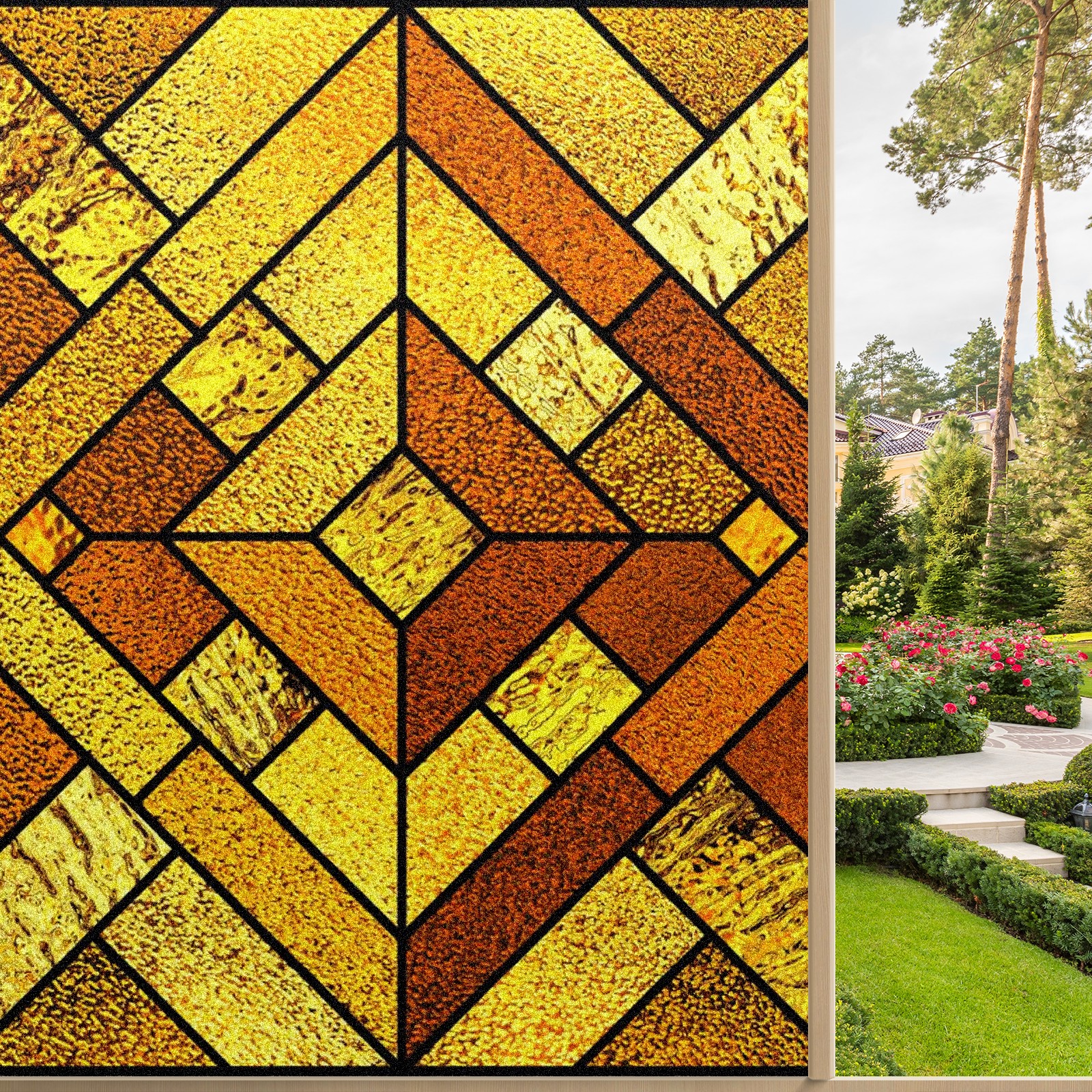 Static Cling Decorative Window Film Frosted Privacy Film Window Clings for Glass Windows No Glue Window Sticker for Bathroom Bedroom Office Gold Stained Glass
