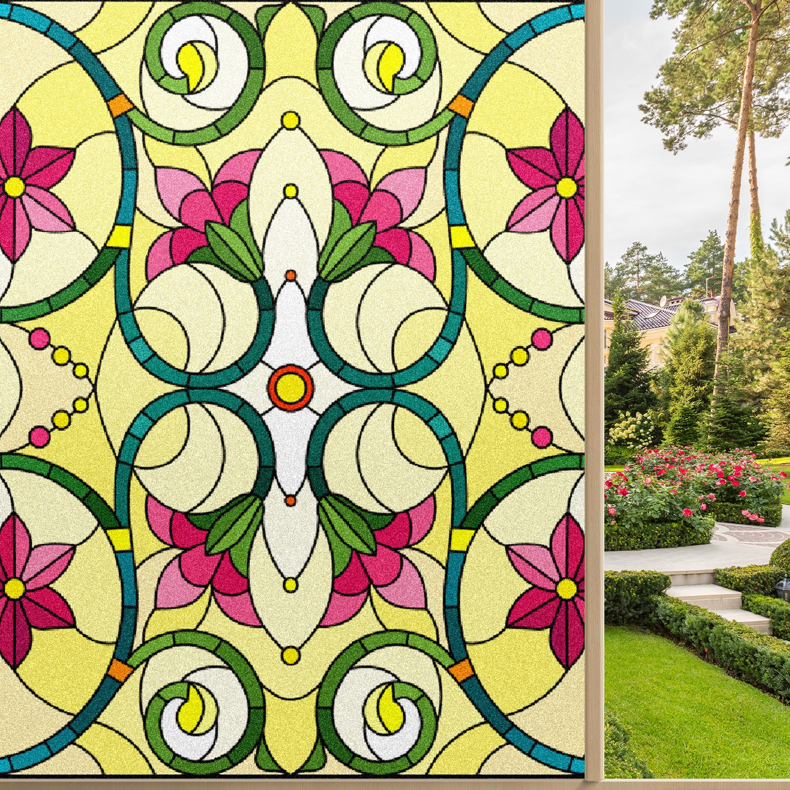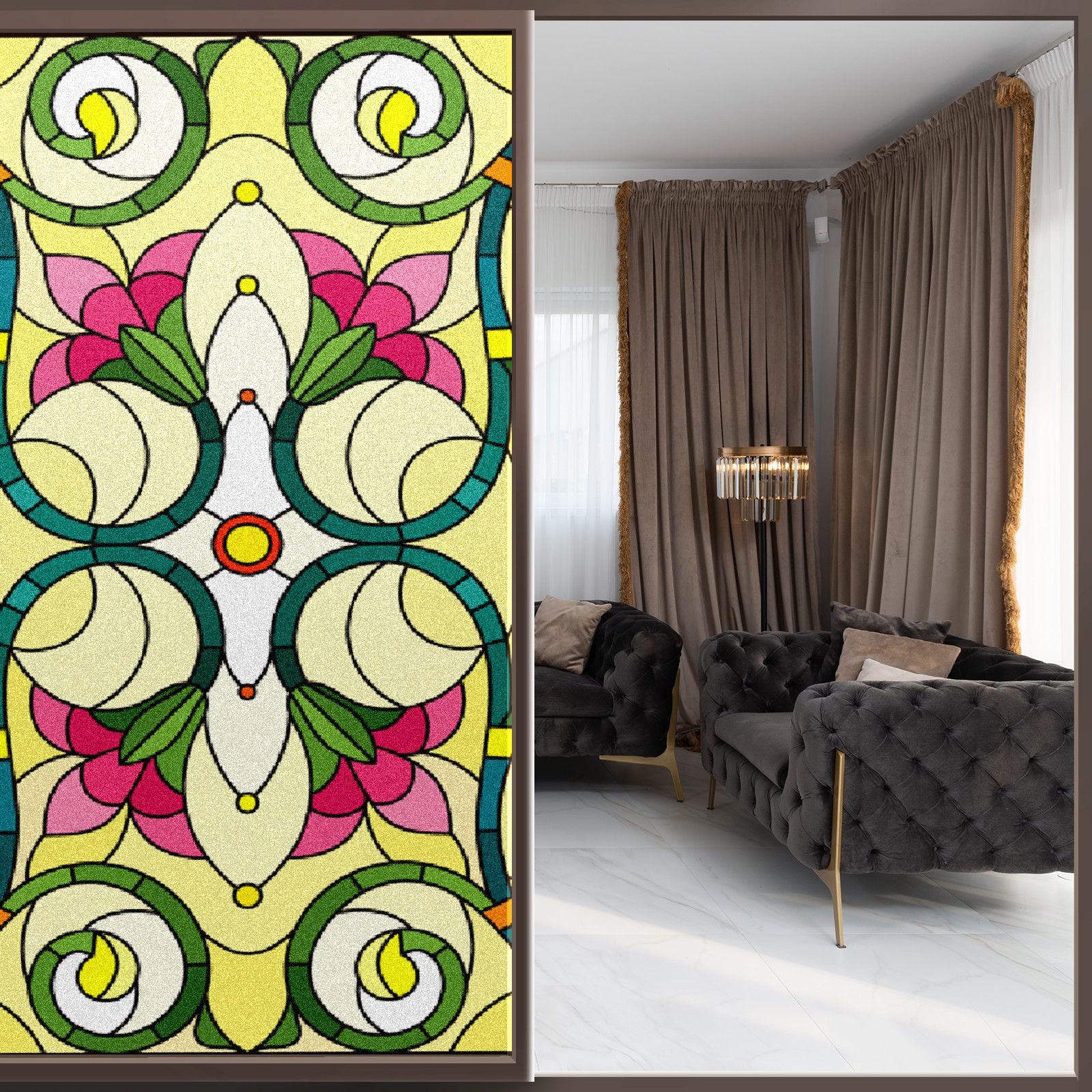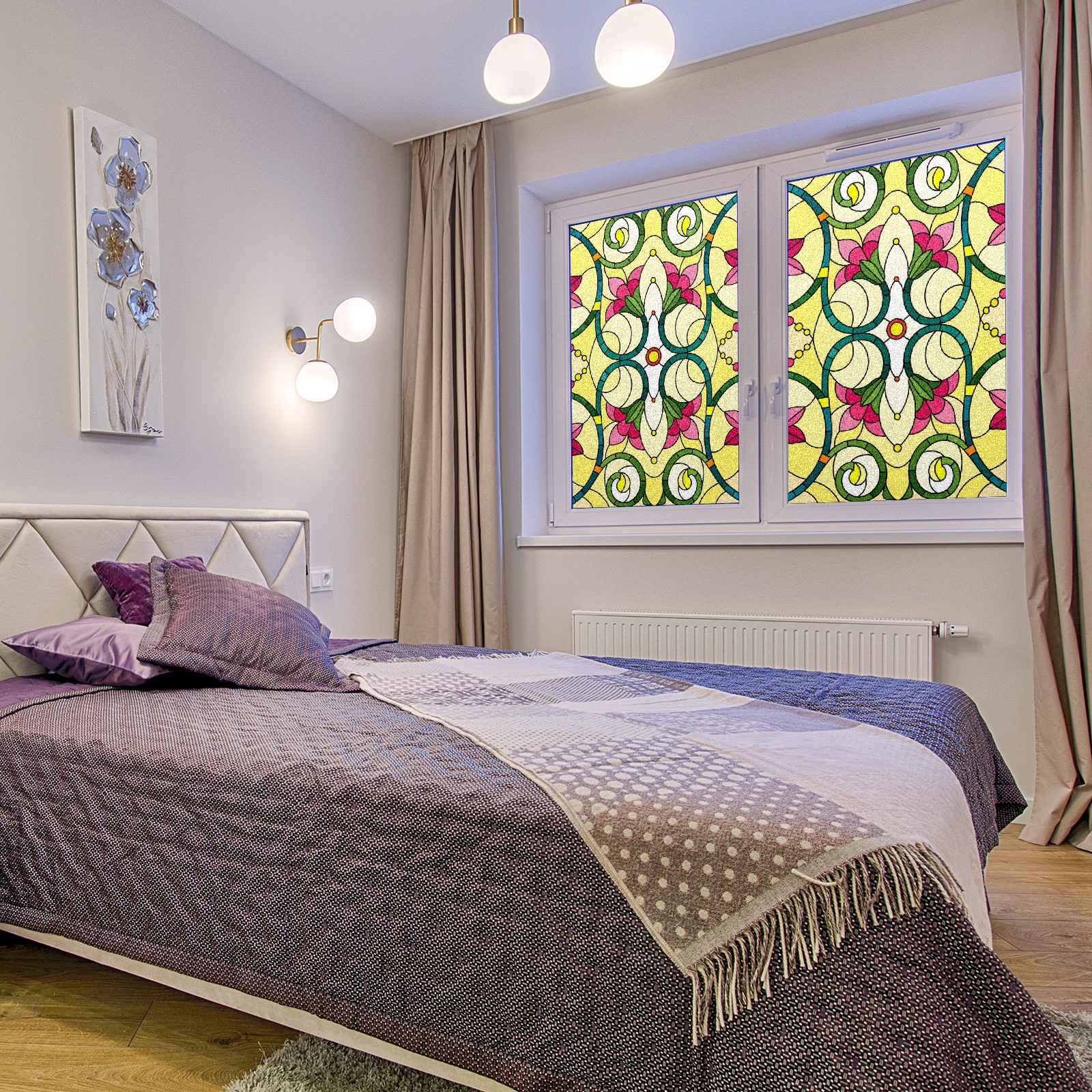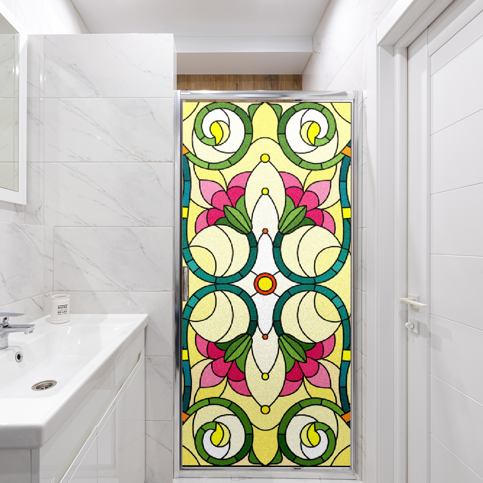 Static Cling Decorative Window Film Frosted Privacy Film Window Clings for Glass Windows No Glue Window Sticker for Bathroom Bedroom Office Stained Glass Abstract