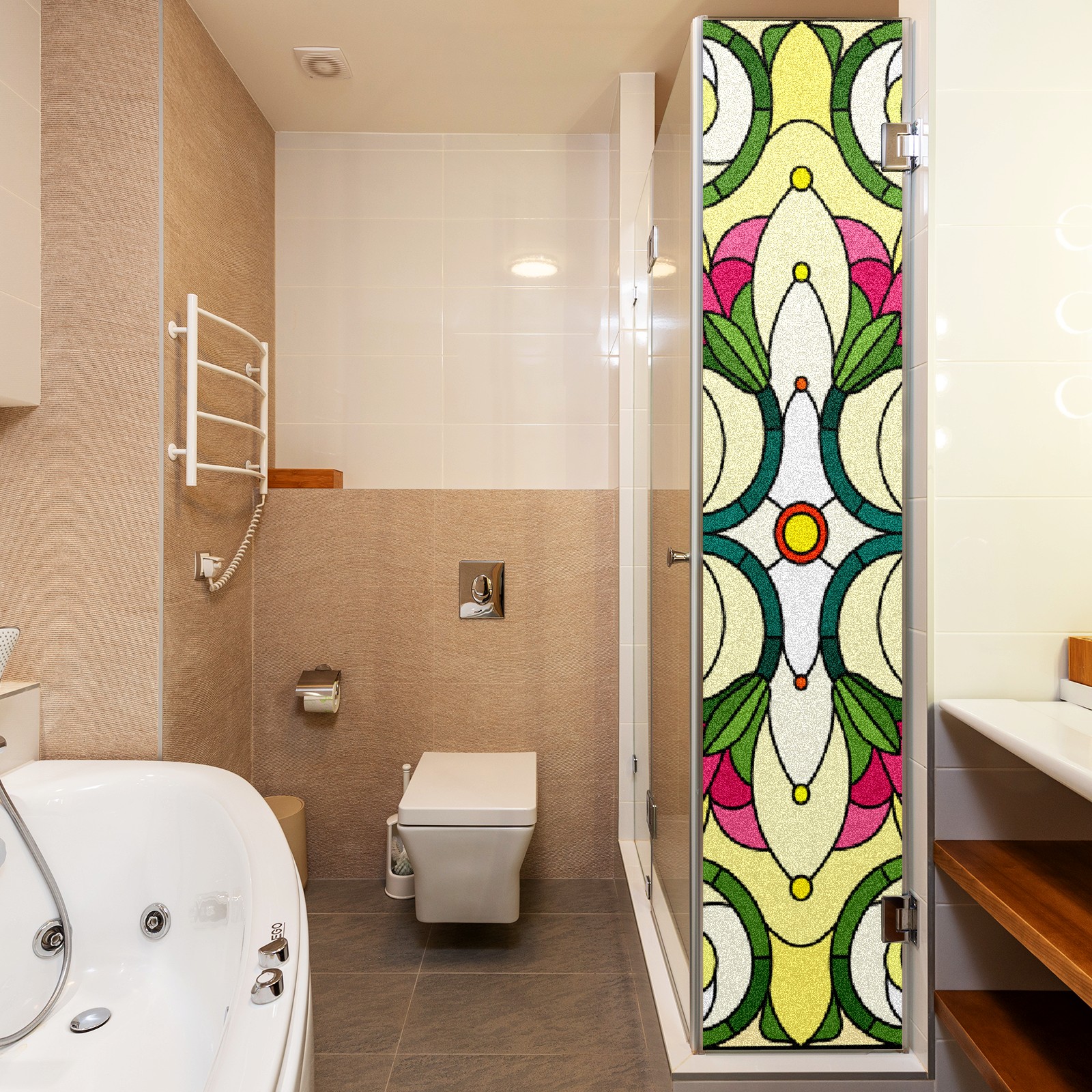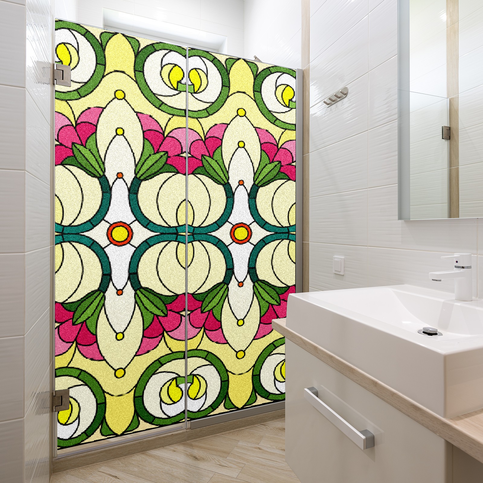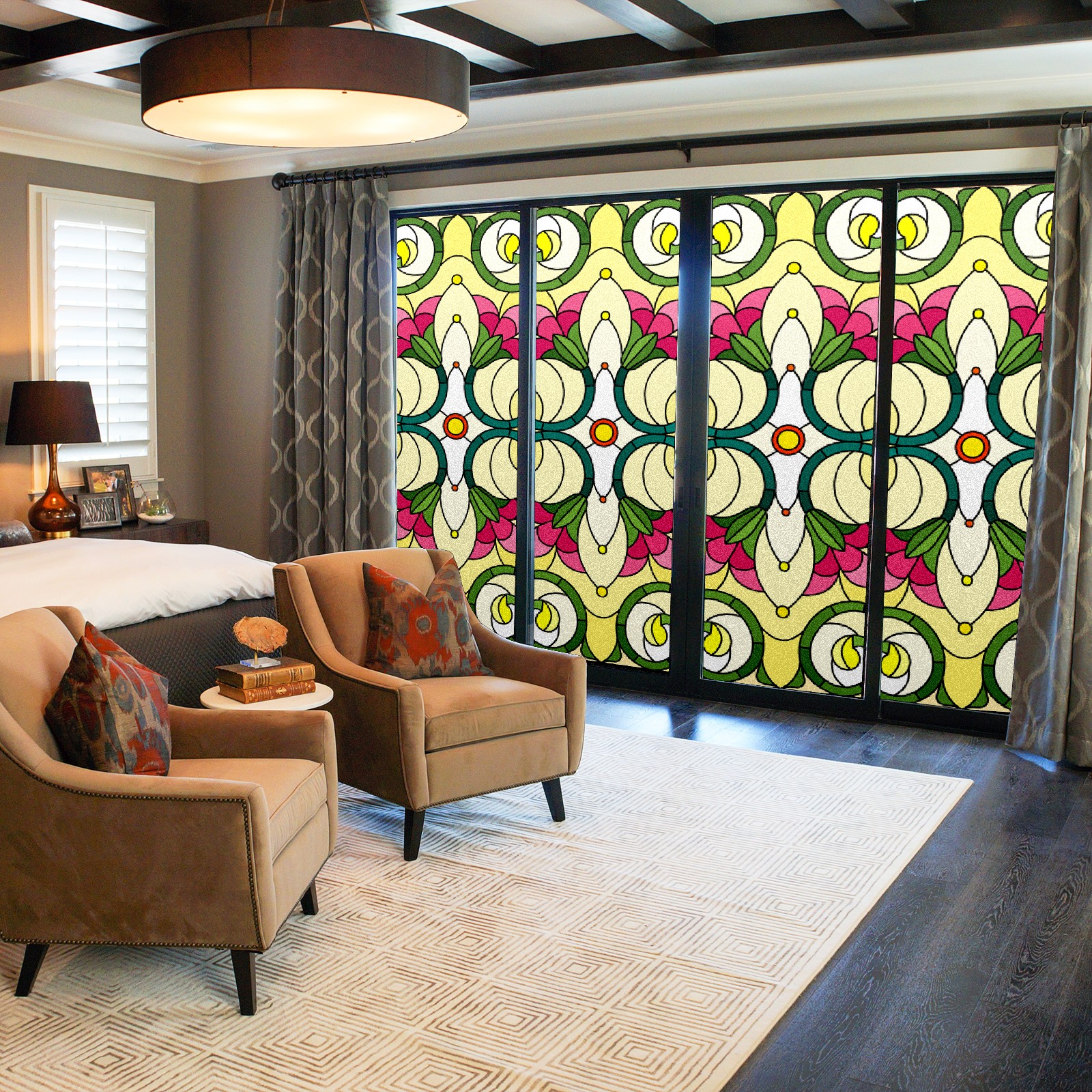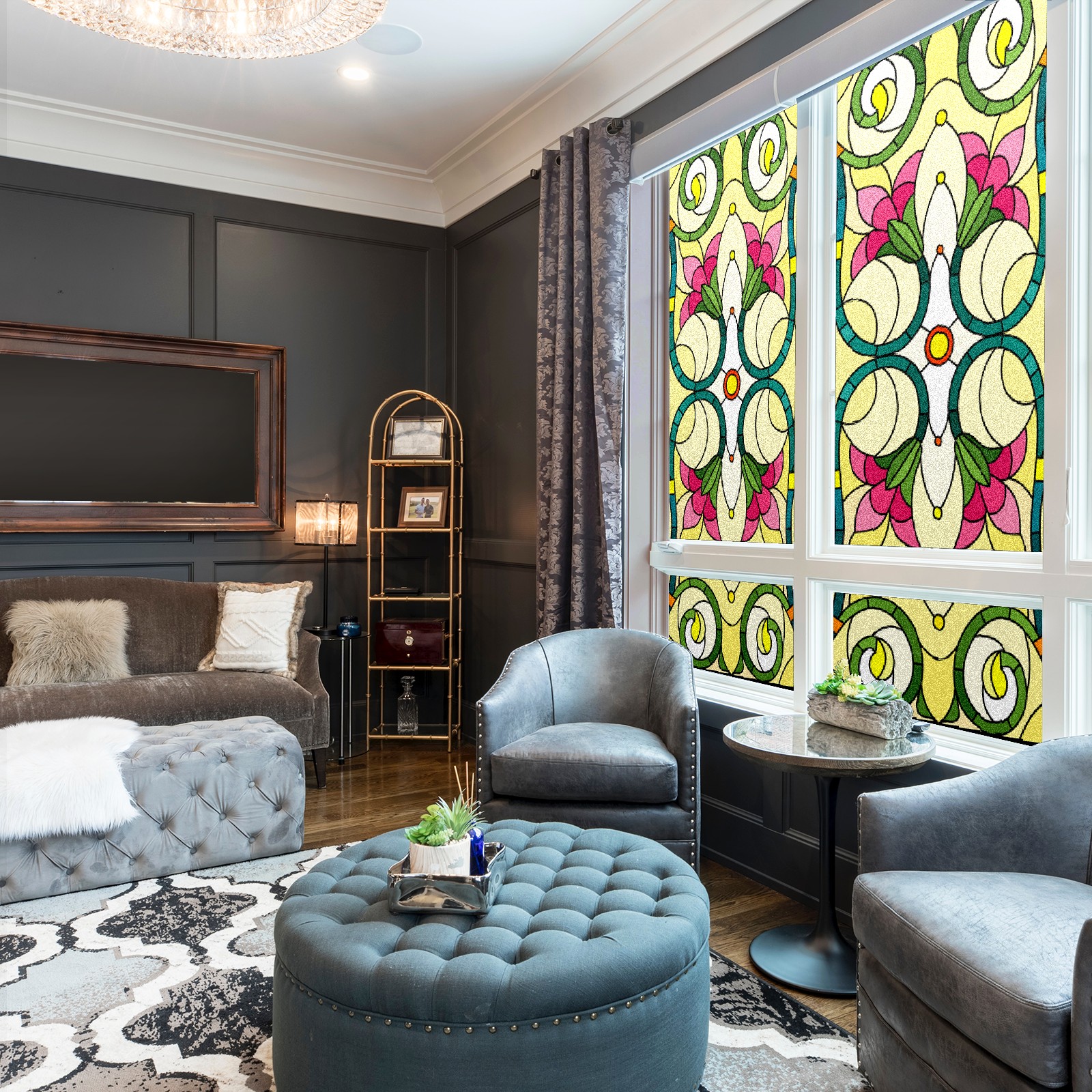 Static Cling Decorative Window Film Frosted Privacy Film Window Clings for Glass Windows No Glue Window Sticker for Bathroom Bedroom Office Stained Glass Abstract