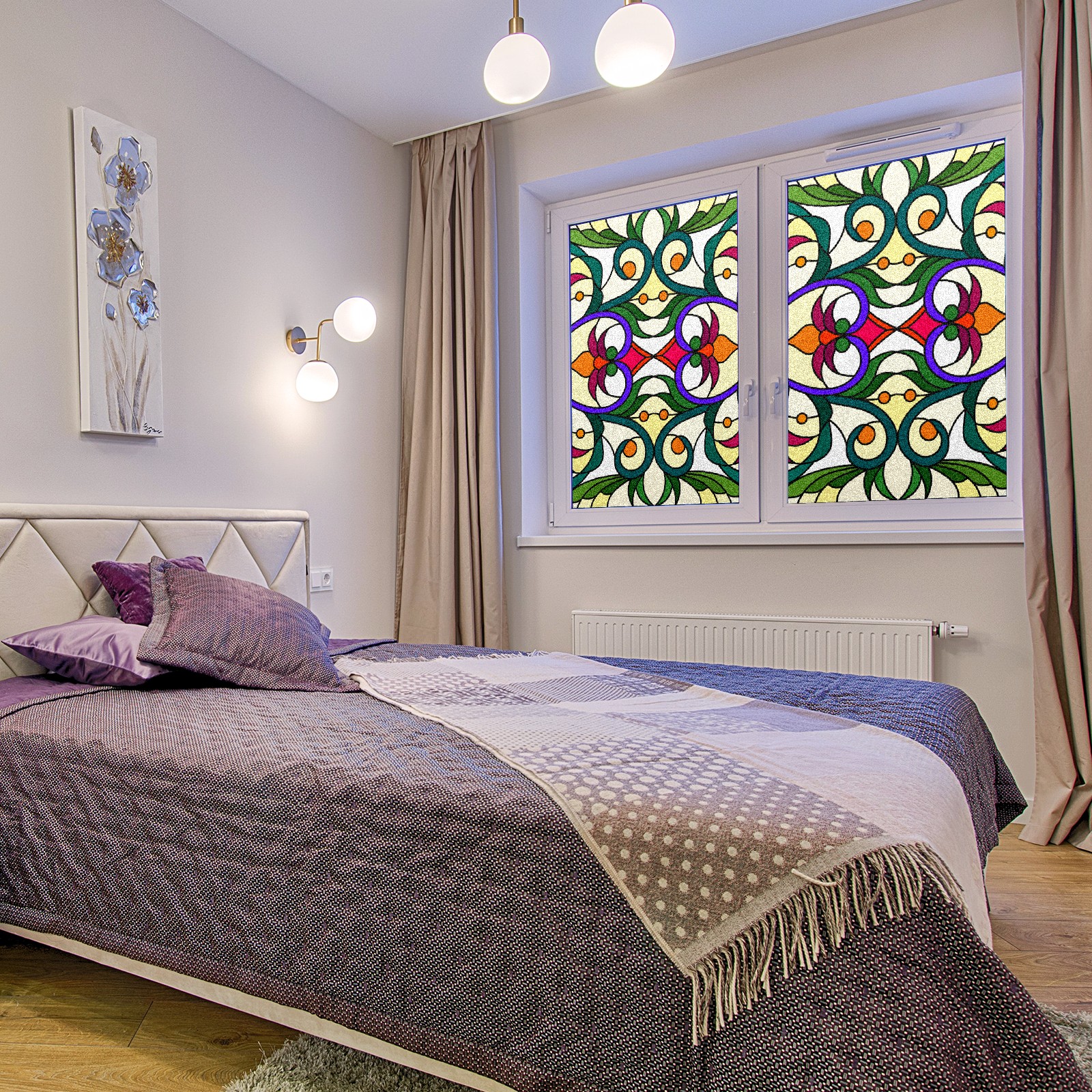 Static Cling Decorative Window Film Frosted Privacy Film Window Clings for Glass Windows No Glue Window Sticker for Bathroom Bedroom Office Stained Glass Flower Leaves