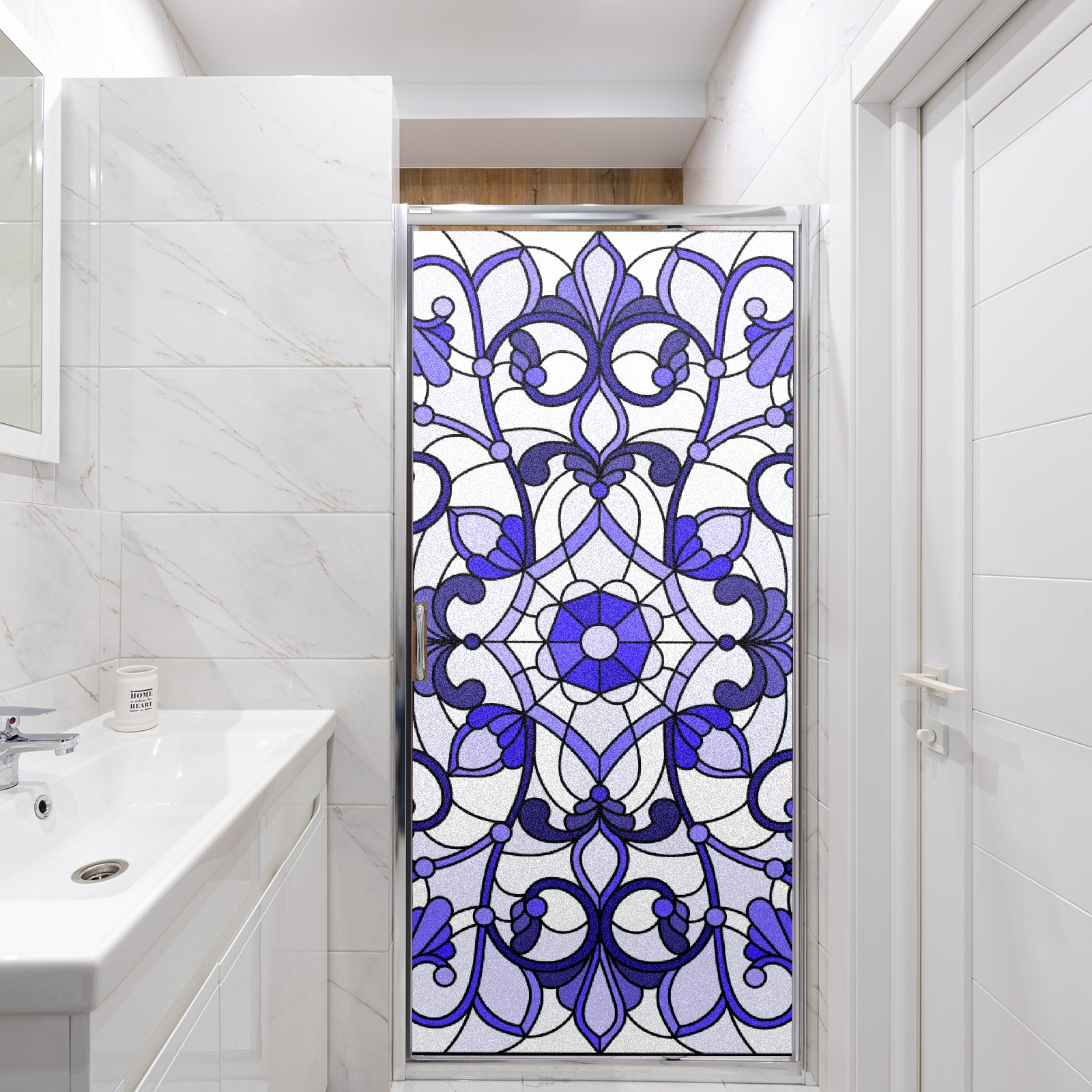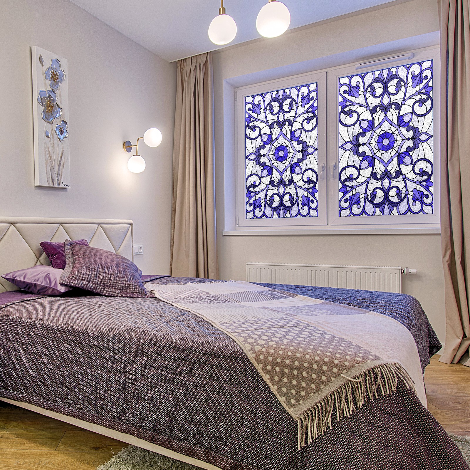 Static Cling Decorative Window Film Frosted Privacy Film Window Clings for Glass Windows No Glue Window Sticker for Bathroom Bedroom Office Purple Stained Glass