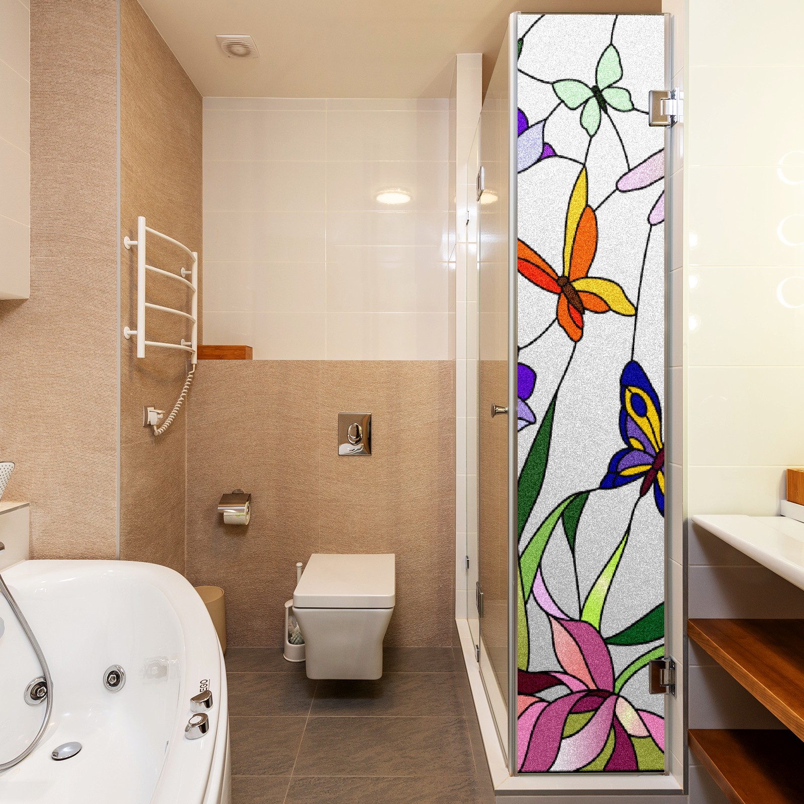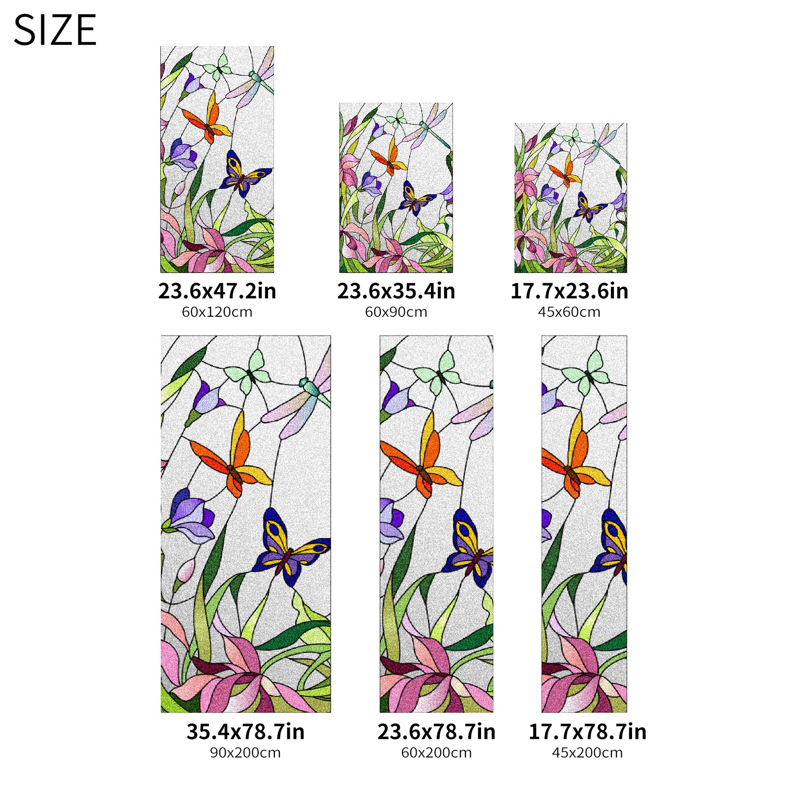 Static Cling Decorative Window Film Frosted Privacy Film Window Clings for Glass Windows No Glue Window Sticker for Bathroom Bedroom Office Stained Glass Flower Butterfly