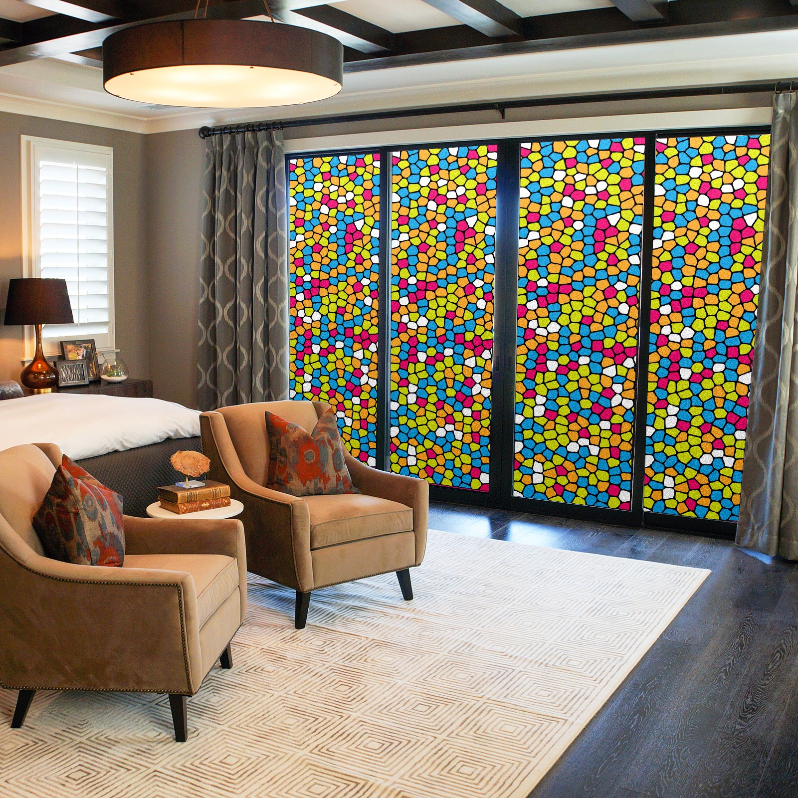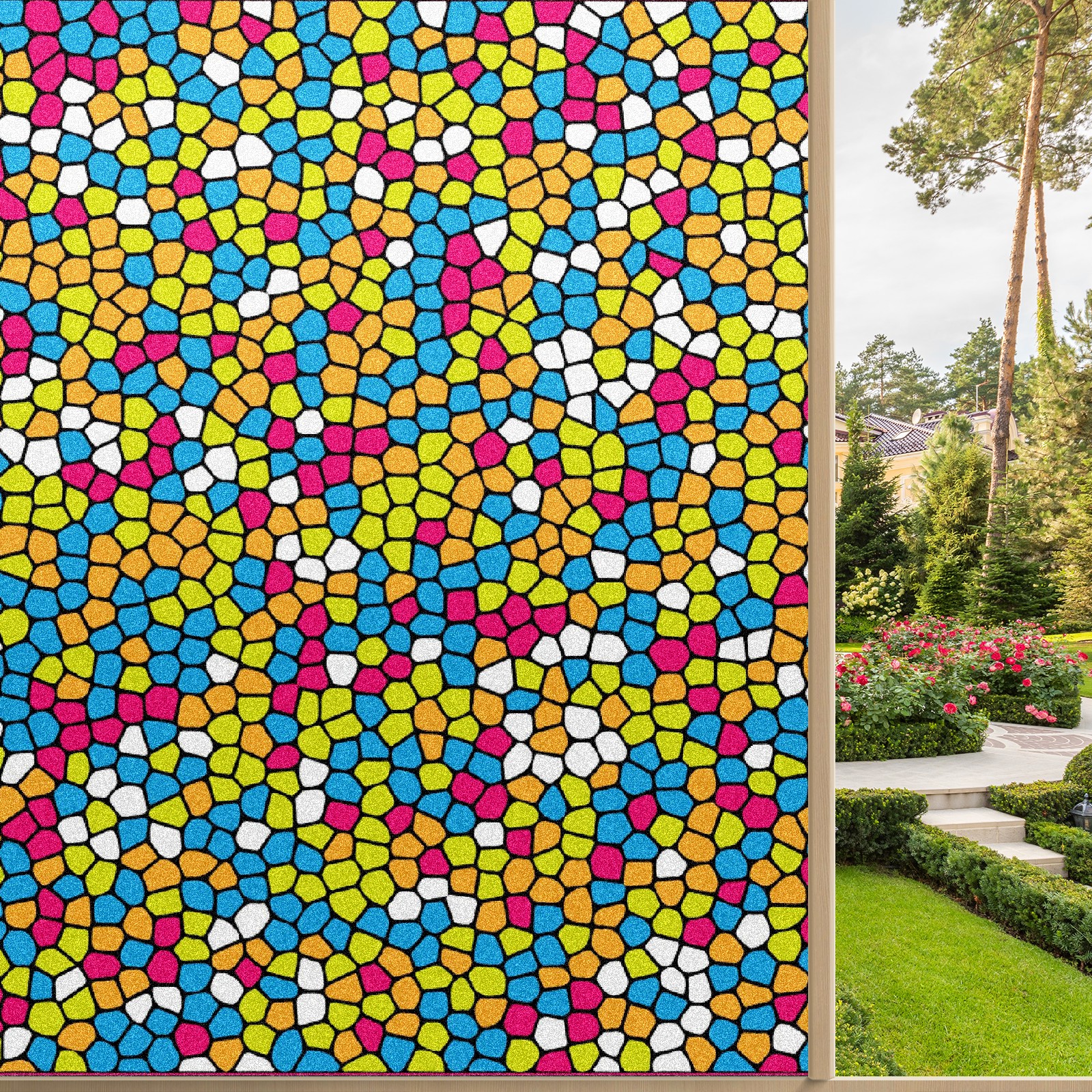 Static Cling Decorative Window Film Frosted Privacy Film Window Clings for Glass Windows No Glue Window Sticker for Bathroom Bedroom Office Colorful Stained Glass Creative Shape