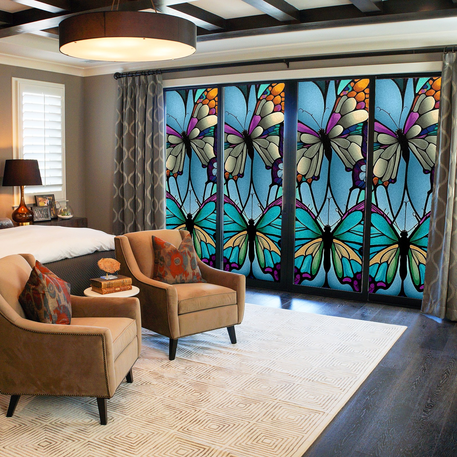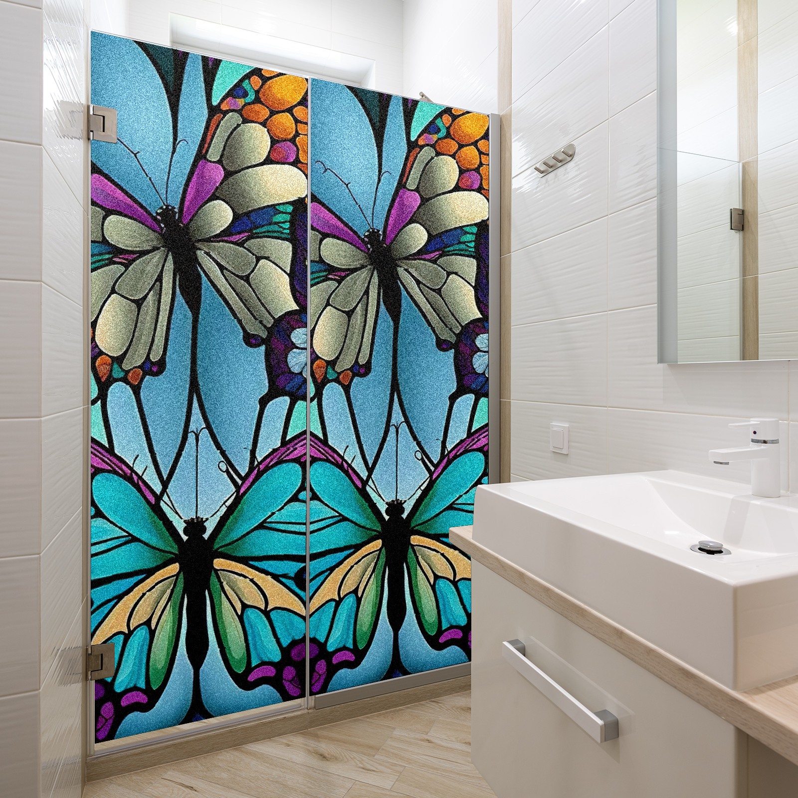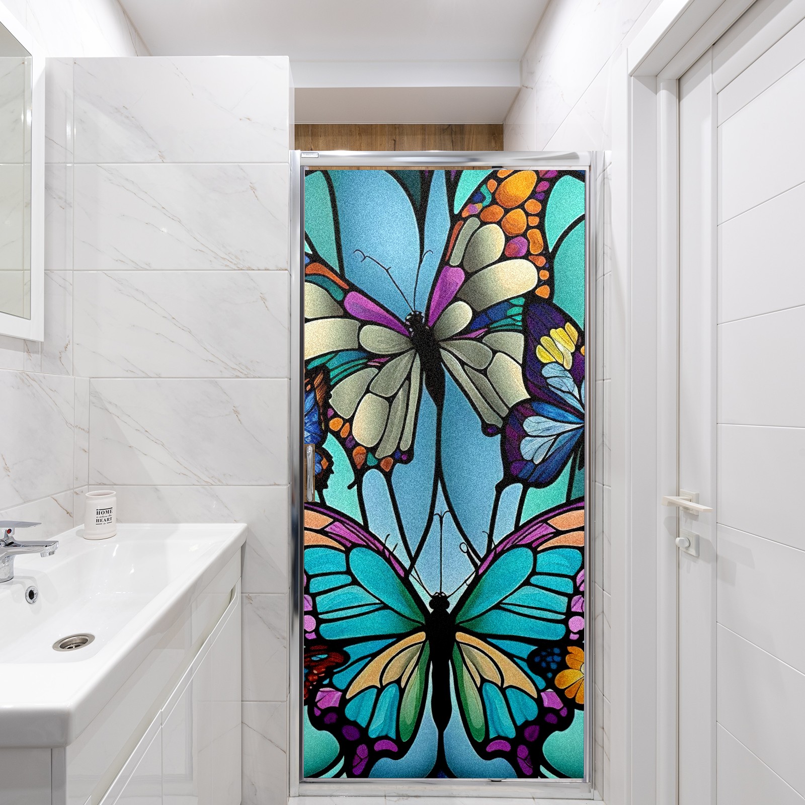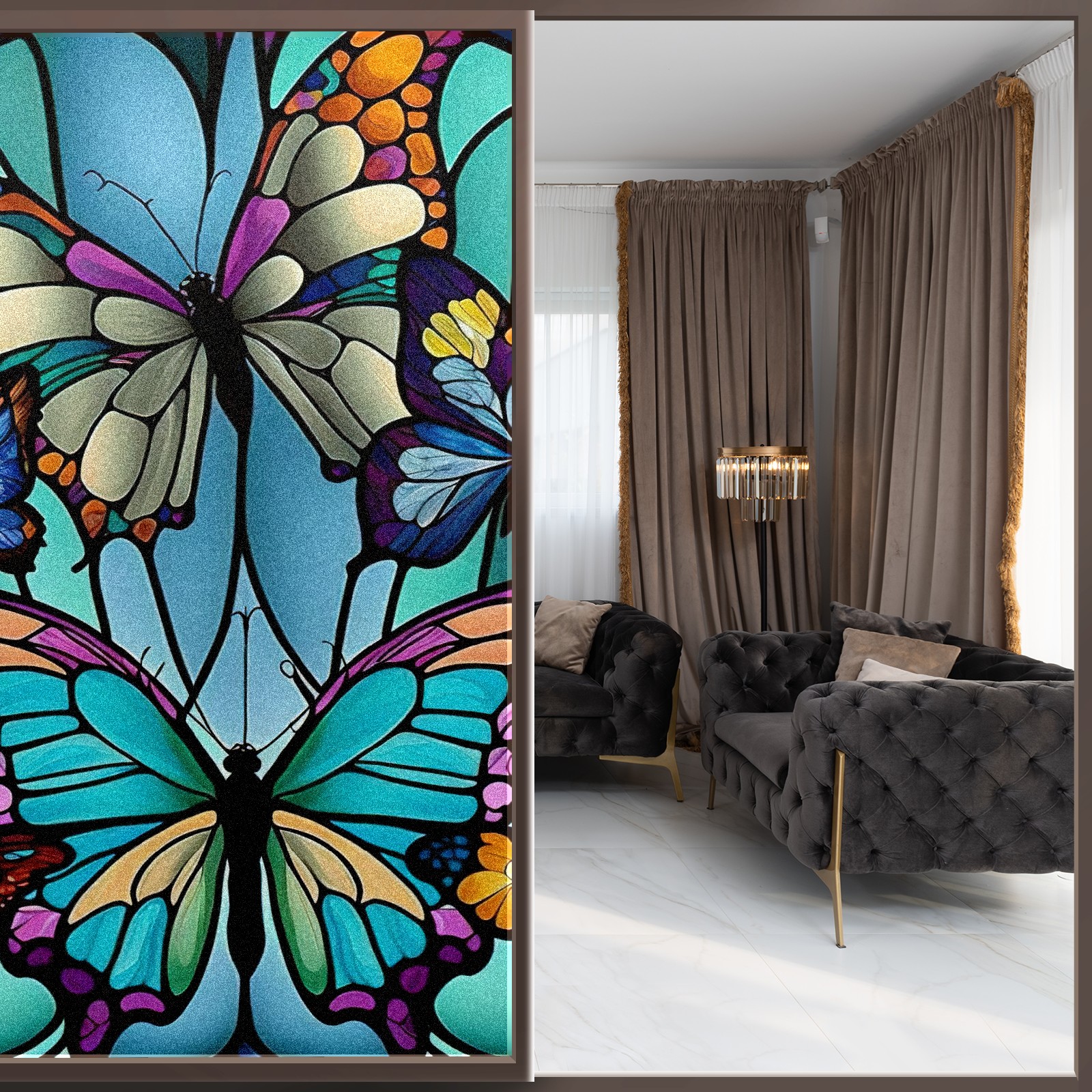 Static Cling Decorative Window Film Frosted Privacy Film Window Clings for Glass Windows No Glue Window Sticker for Bathroom Bedroom Office Stained Glass Window Butterflies