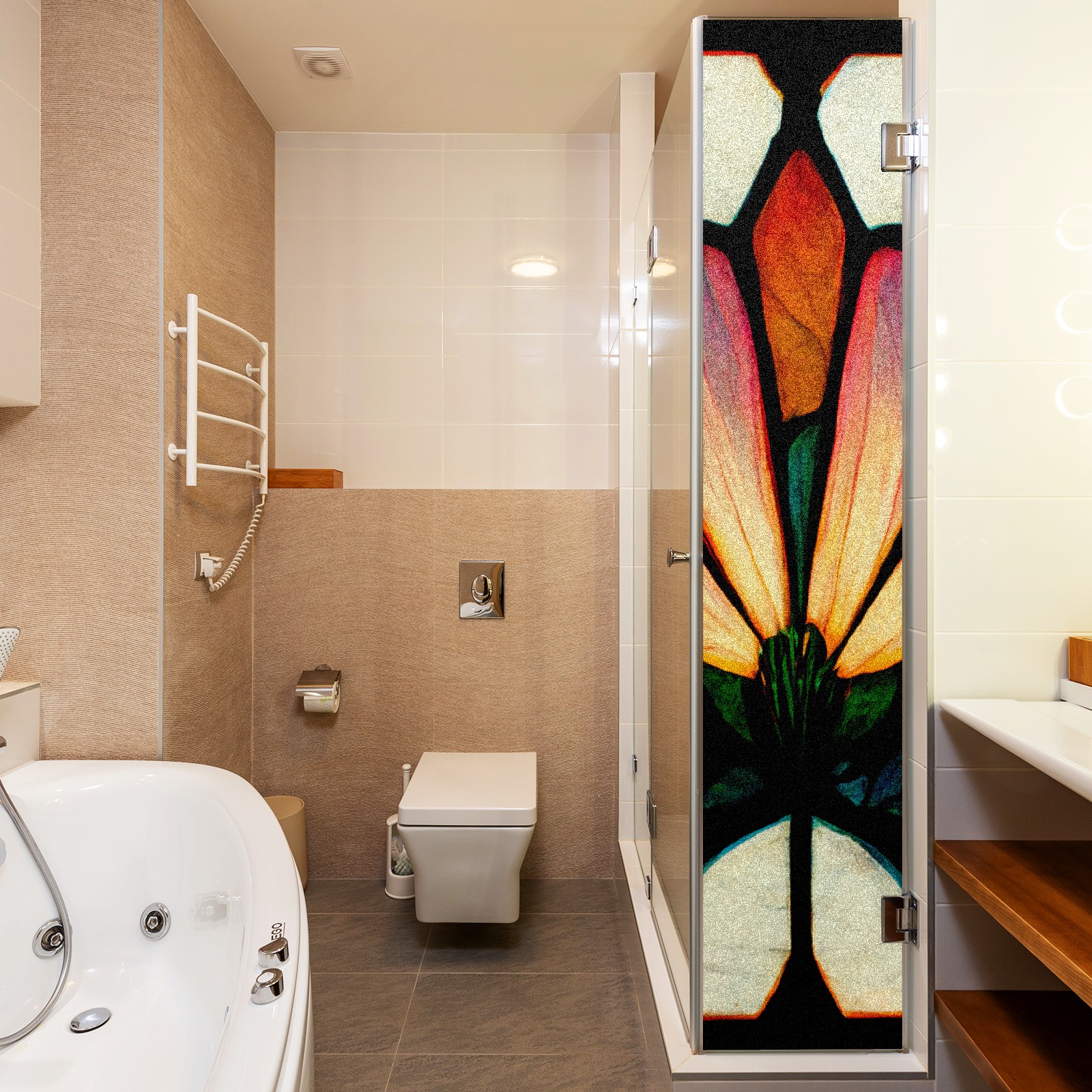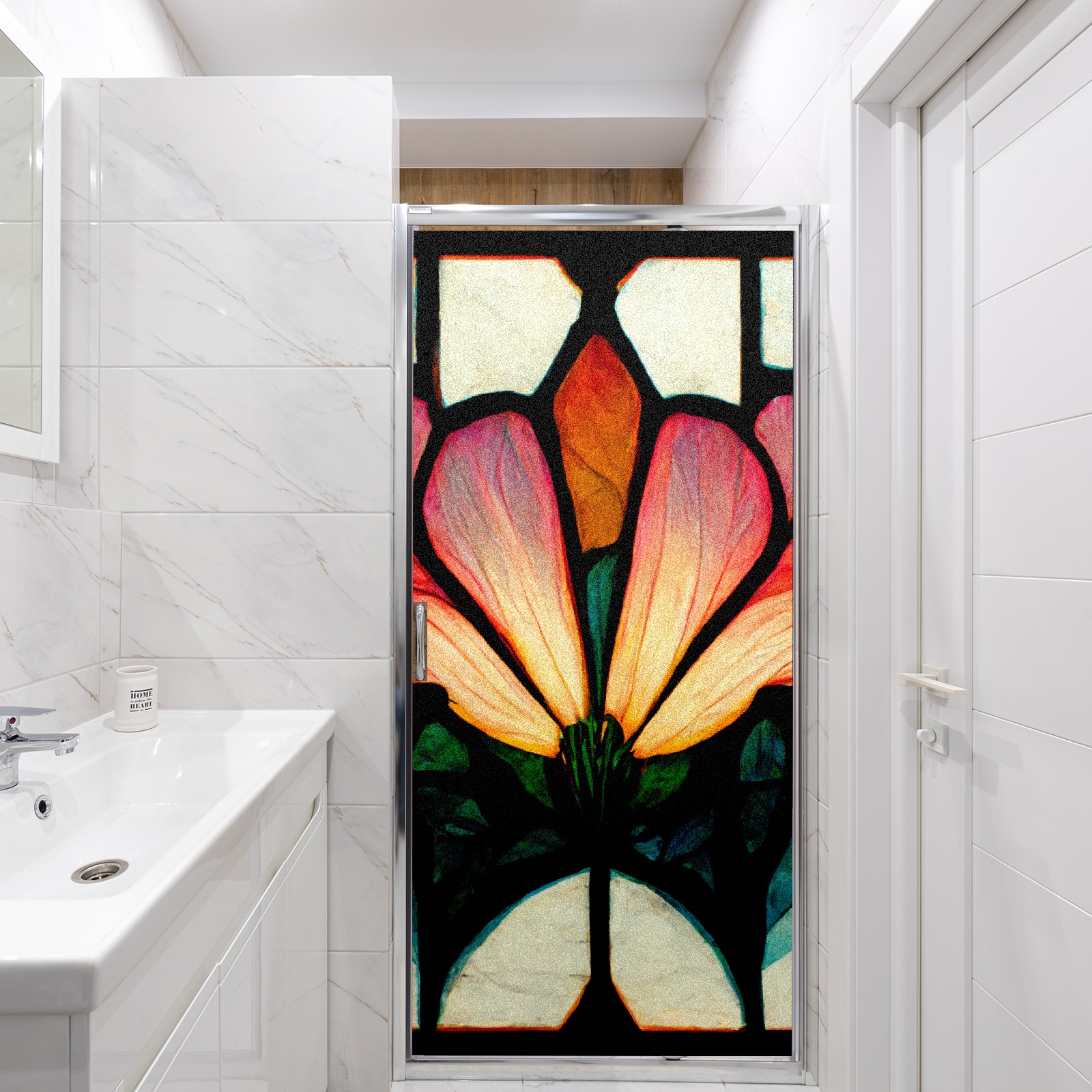Static Cling Decorative Window Film Frosted Privacy Film Window Clings for Glass Windows No Glue Window Sticker for Bathroom Bedroom Office Stain Glassed Window Rainbow Flower