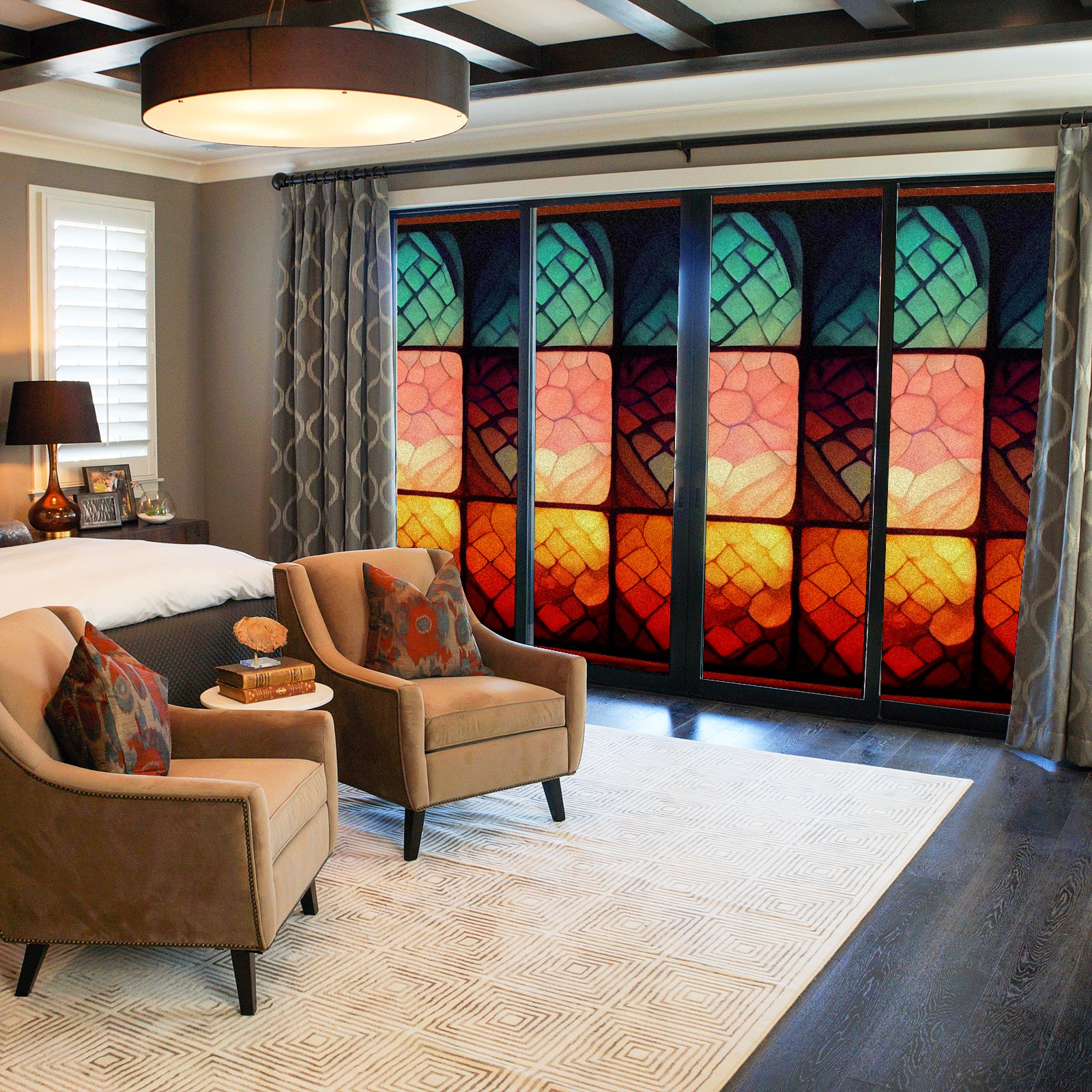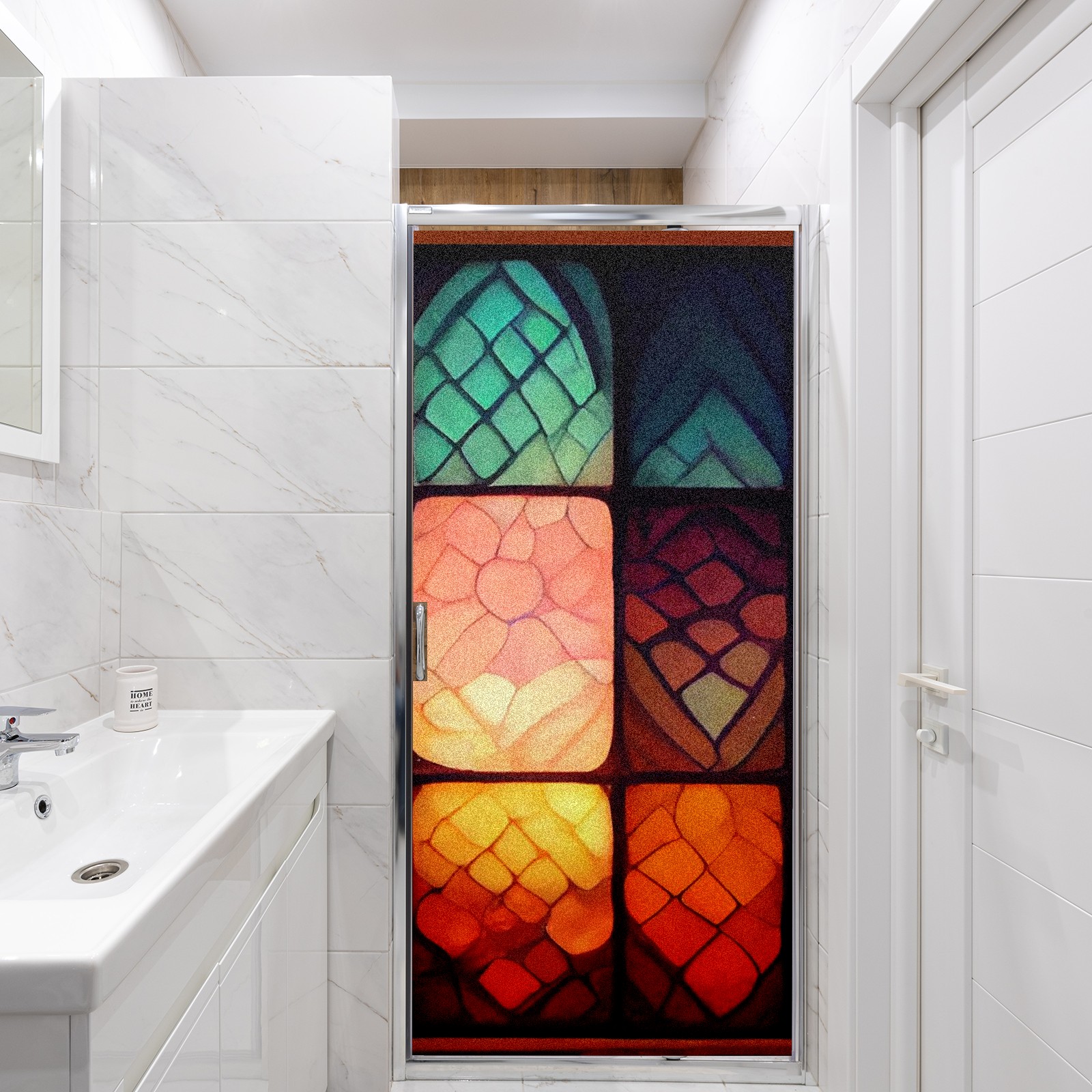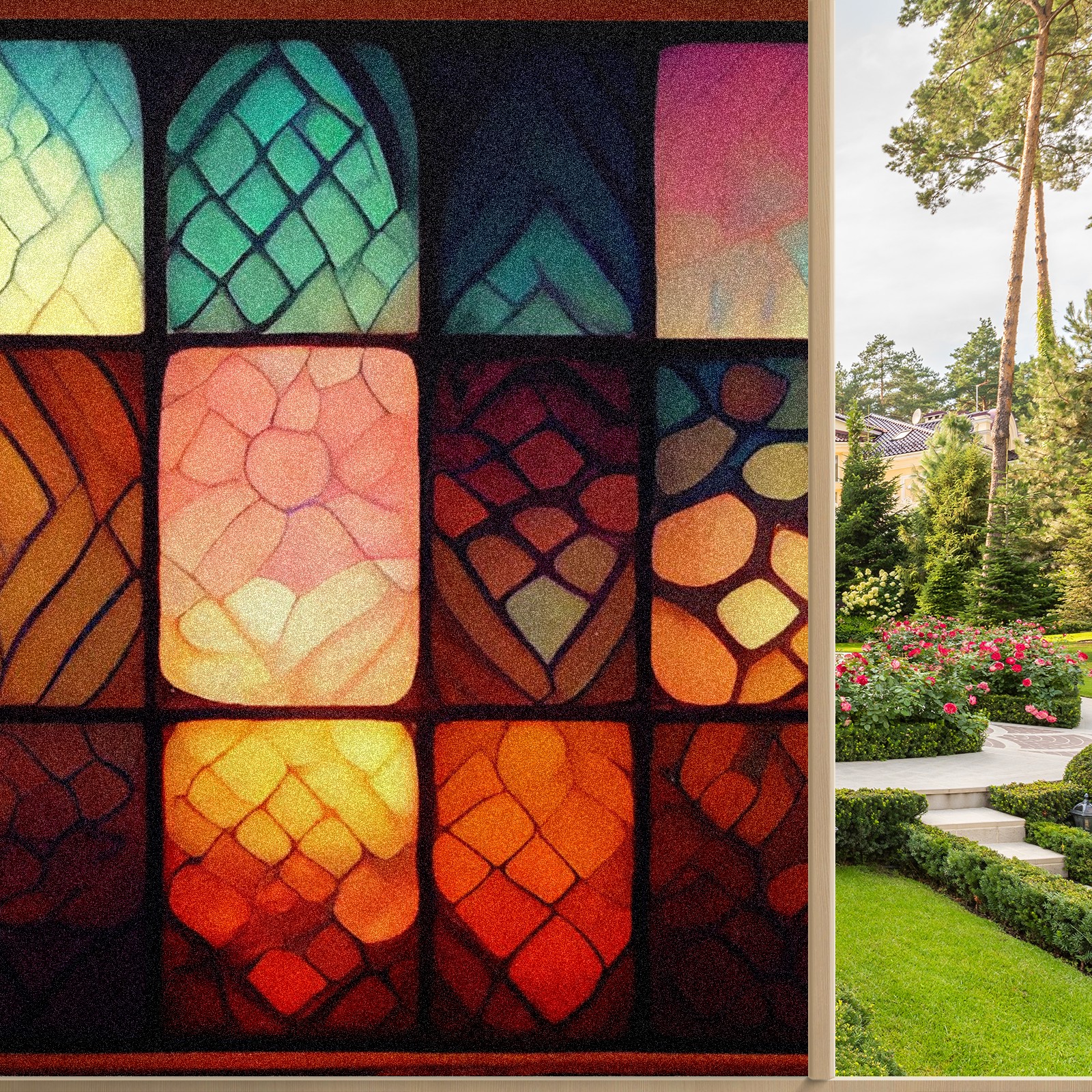 Static Cling Decorative Window Film Frosted Privacy Film Window Clings for Glass Windows No Glue Window Sticker for Bathroom Bedroom Office Glowing Stained Glass