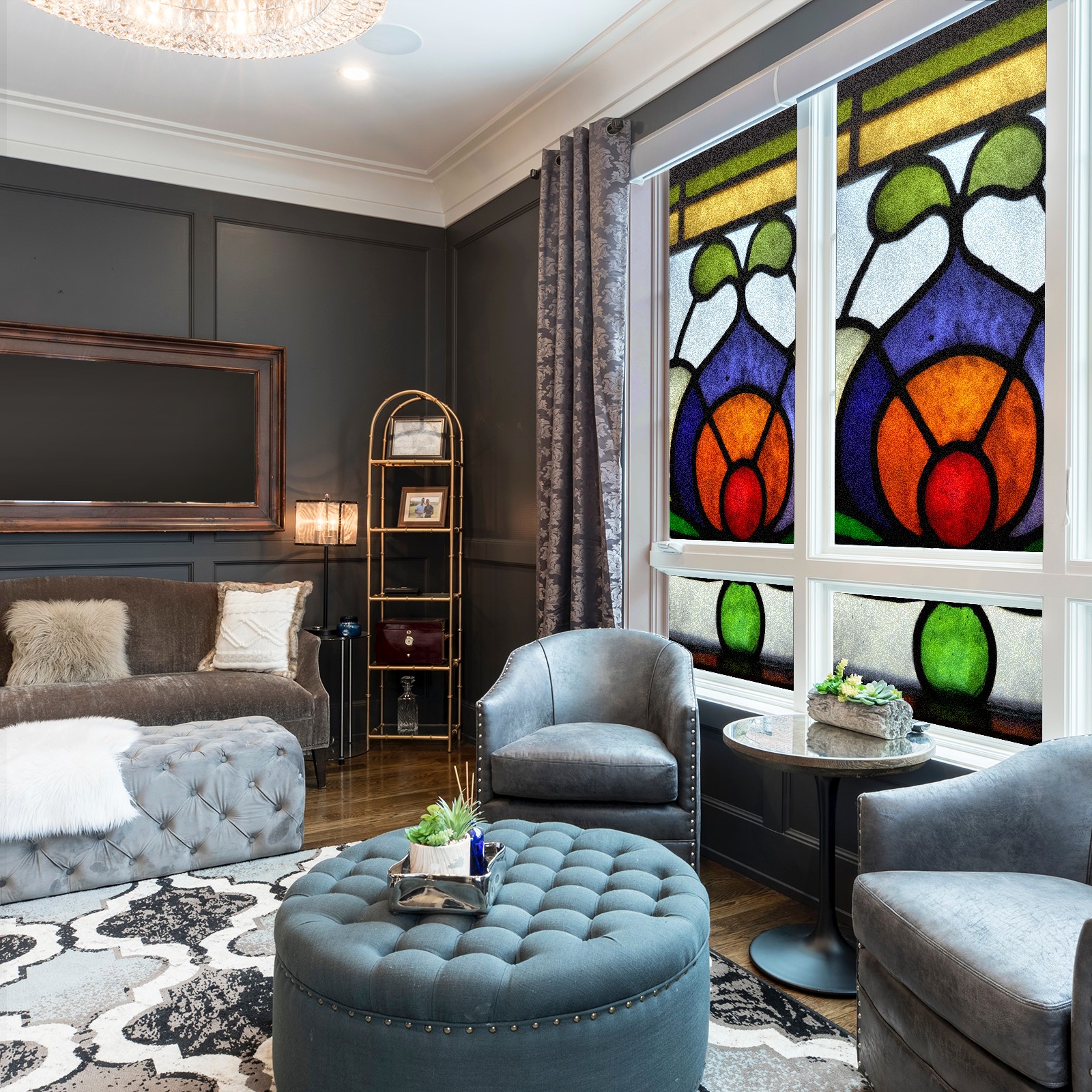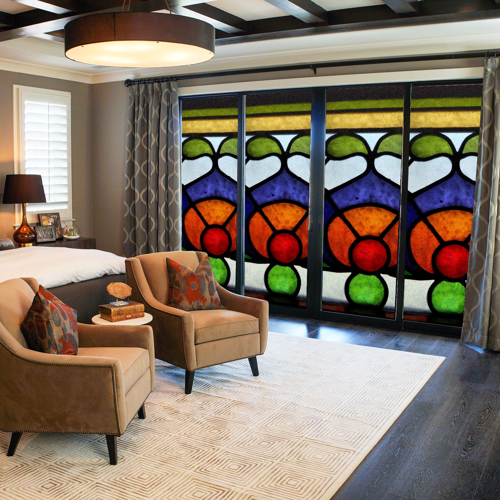 Static Cling Decorative Window Film Frosted Privacy Film Window Clings for Glass Windows No Glue Window Sticker for Bathroom Bedroom Office Colorful Stained Glass Windows