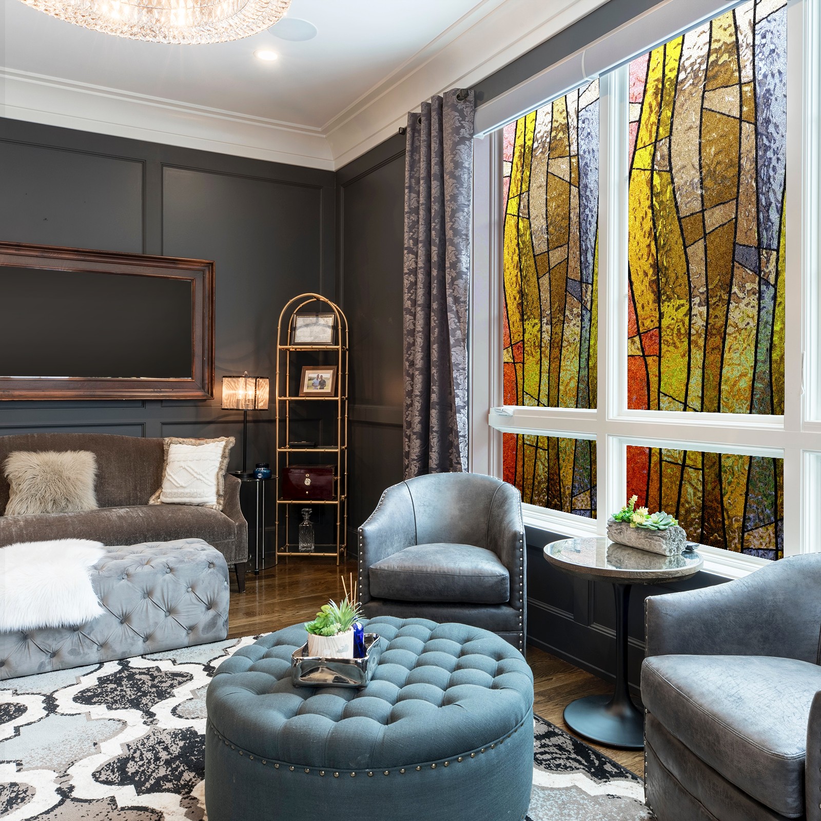 Static Cling Decorative Window Film Frosted Privacy Film Window Clings for Glass Windows No Glue Window Sticker for Bathroom Bedroom Office Retro Stained Glasses Yellow