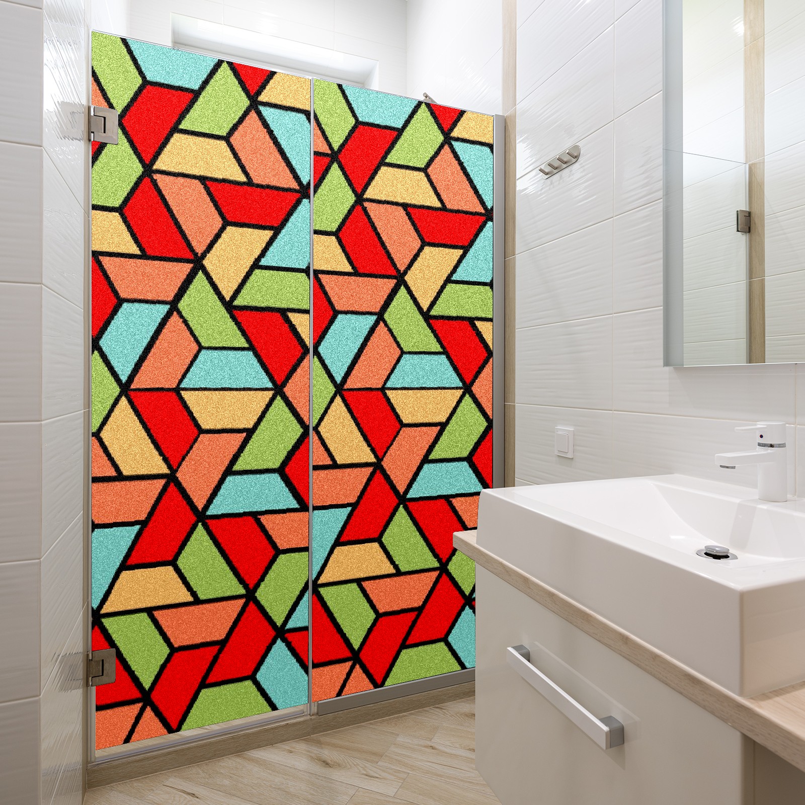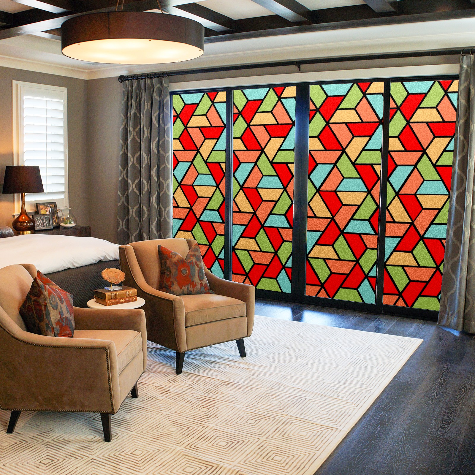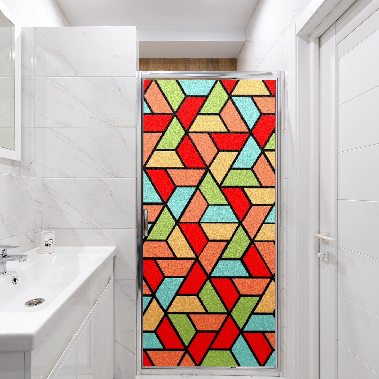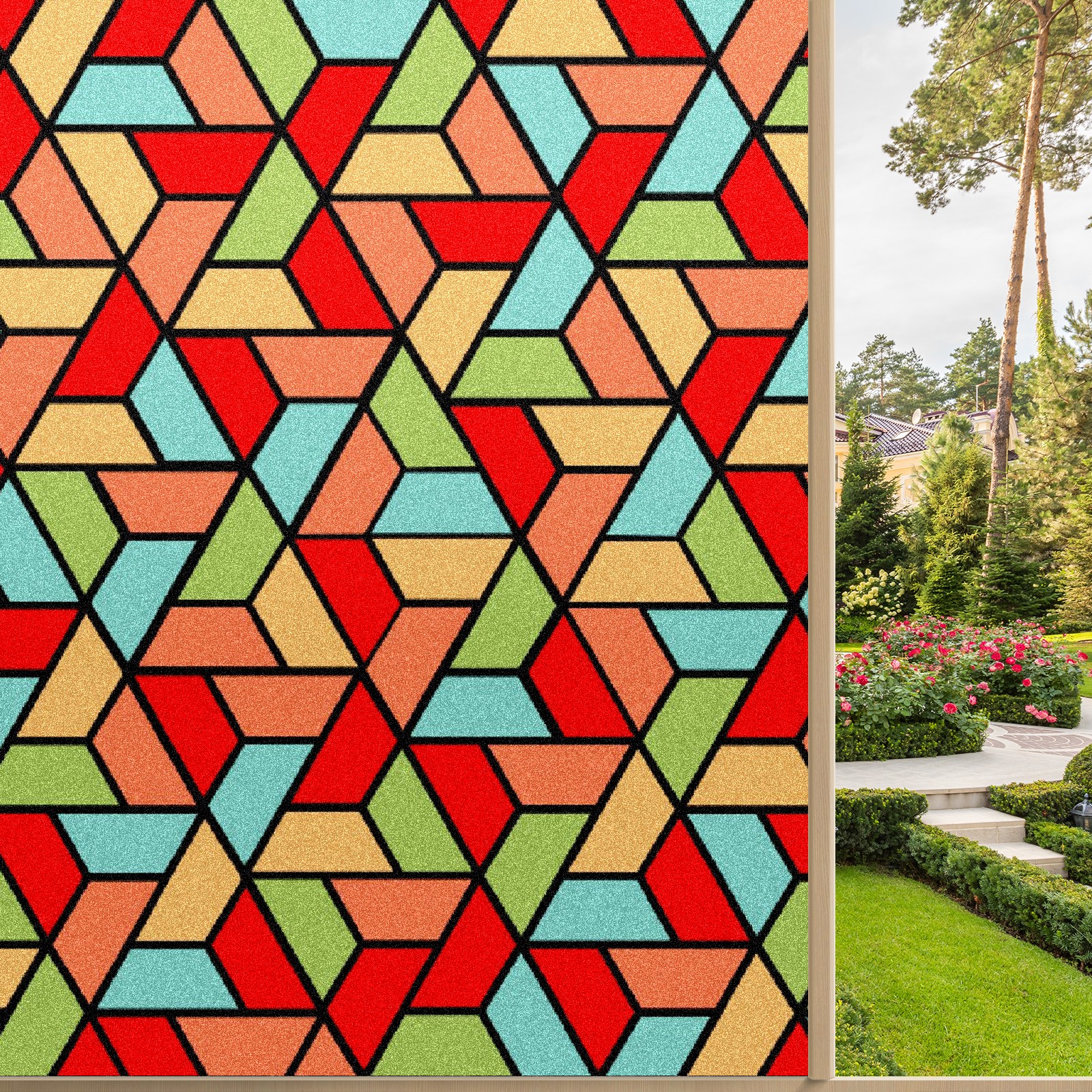 Static Cling Decorative Window Film Frosted Privacy Film Window Clings for Glass Windows No Glue Window Sticker for Bathroom Bedroom Office Stained Glass Geometry Pattern