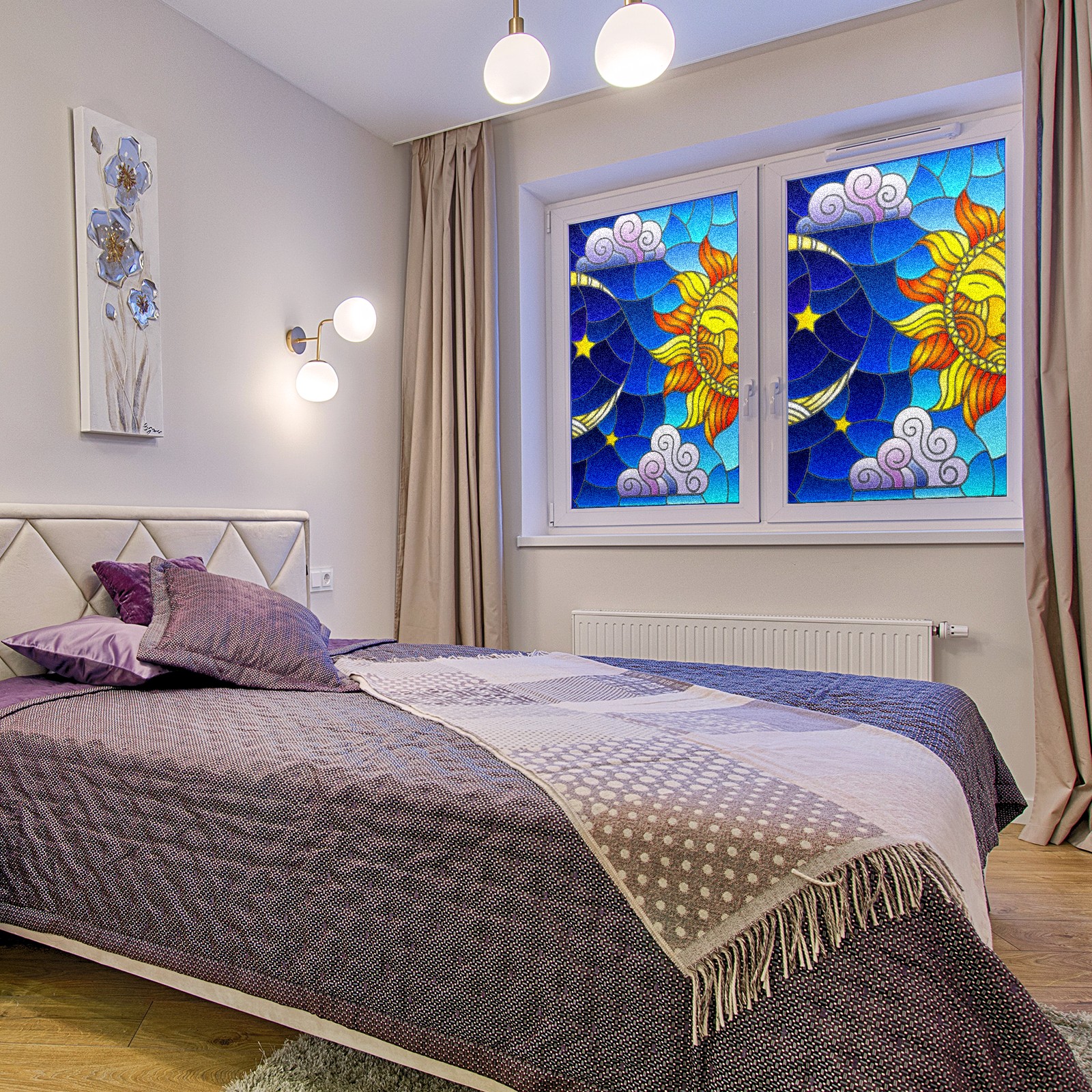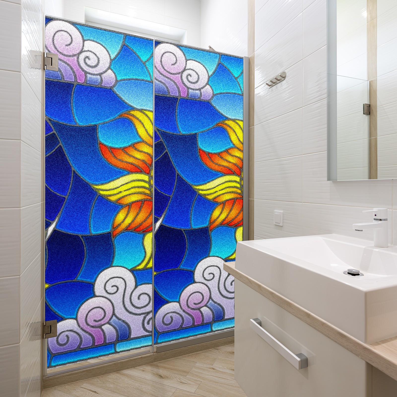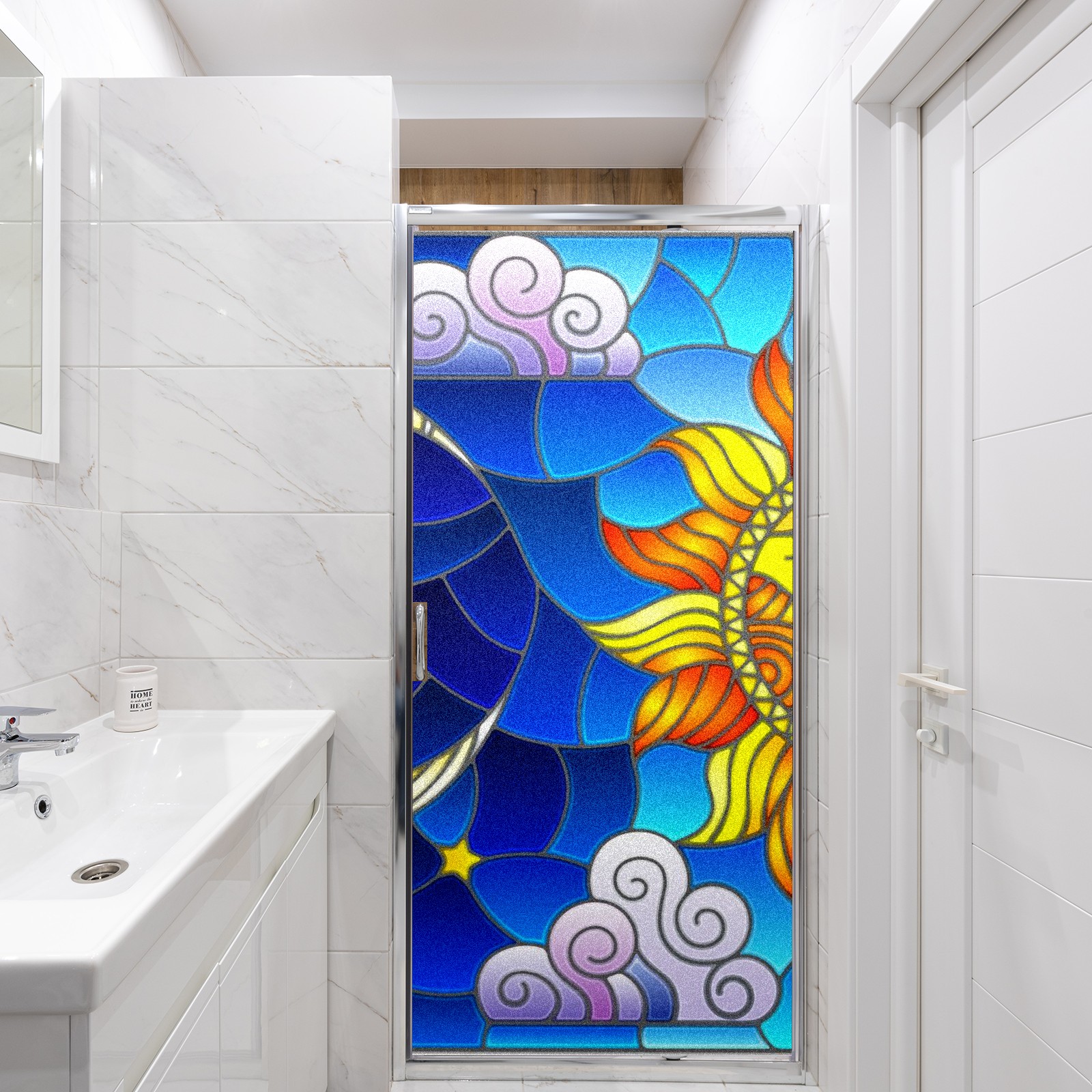 Static Cling Decorative Window Film Frosted Privacy Film Window Clings for Glass Windows No Glue Window Sticker for Bathroom Bedroom Office Sun Moon Stained Glass