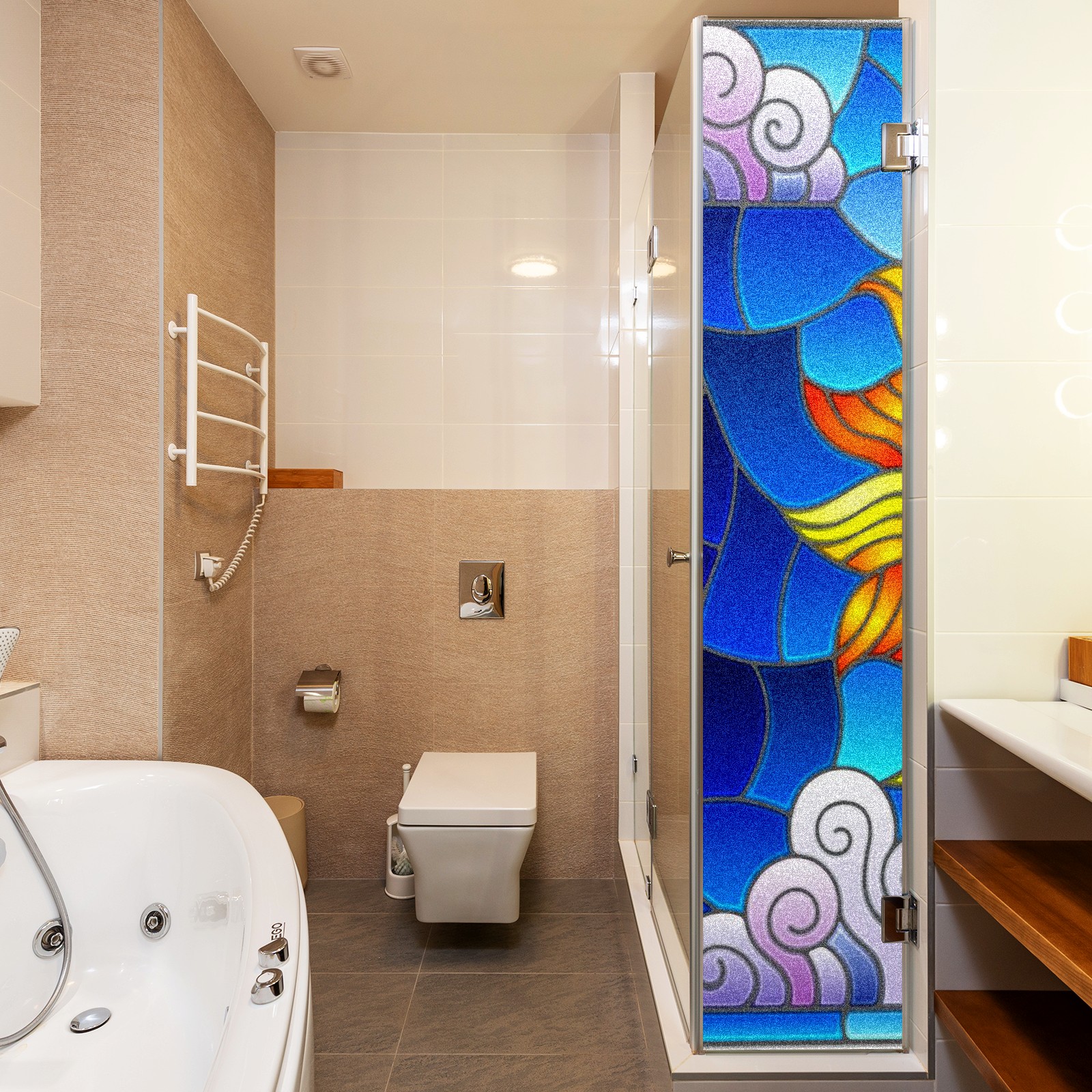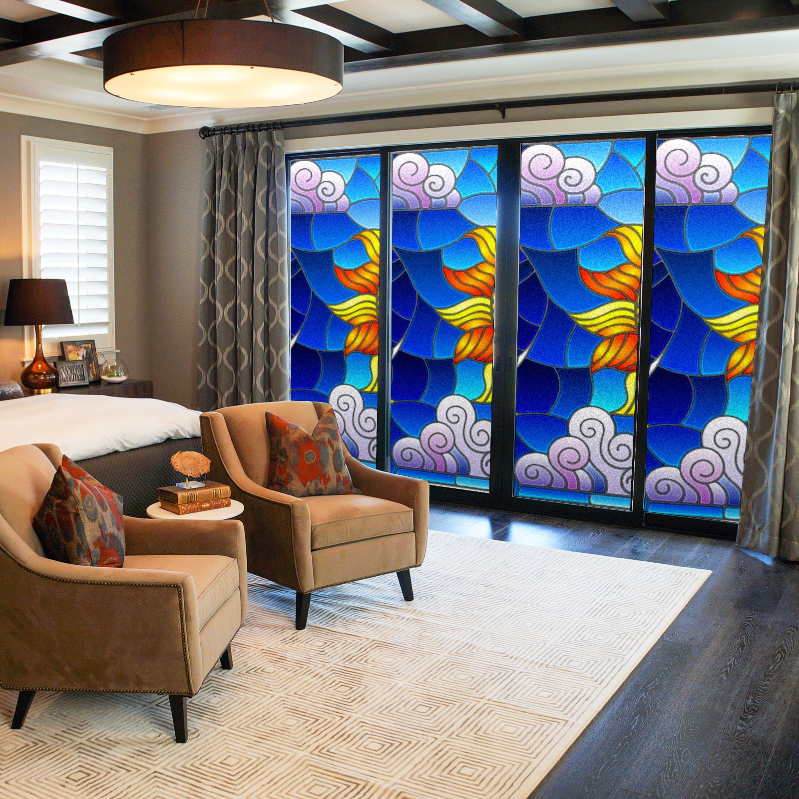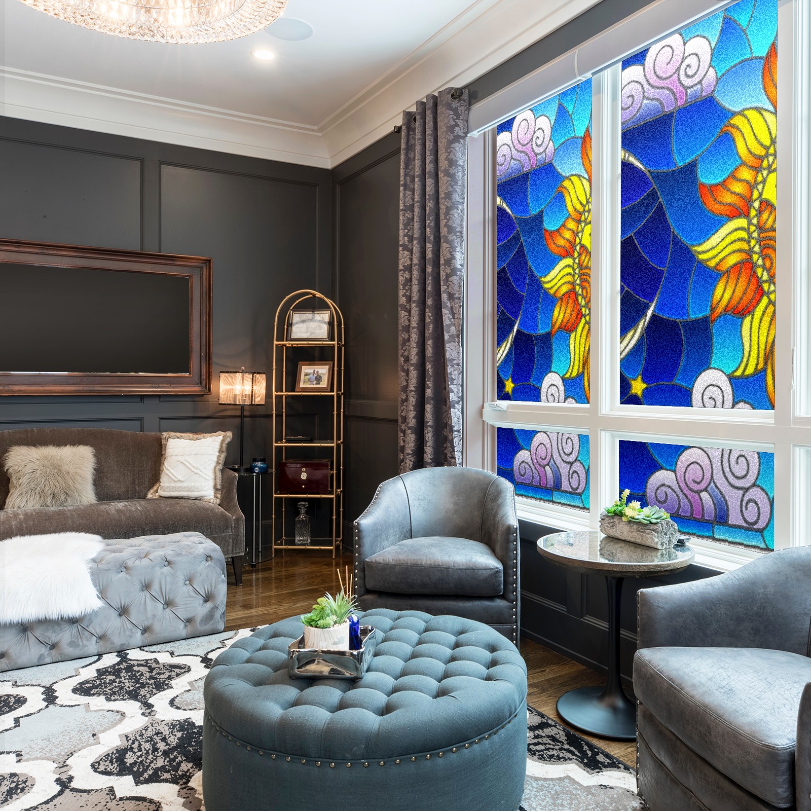 Static Cling Decorative Window Film Frosted Privacy Film Window Clings for Glass Windows No Glue Window Sticker for Bathroom Bedroom Office Sun Moon Stained Glass