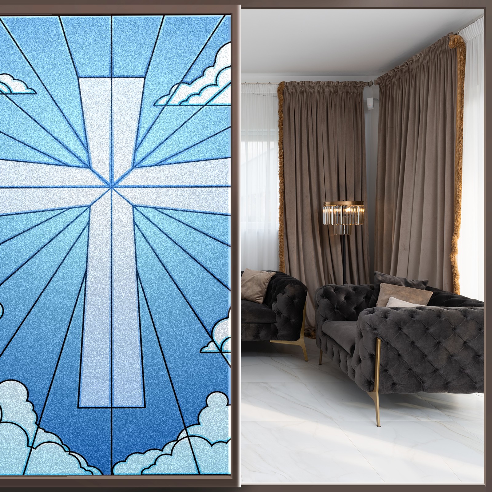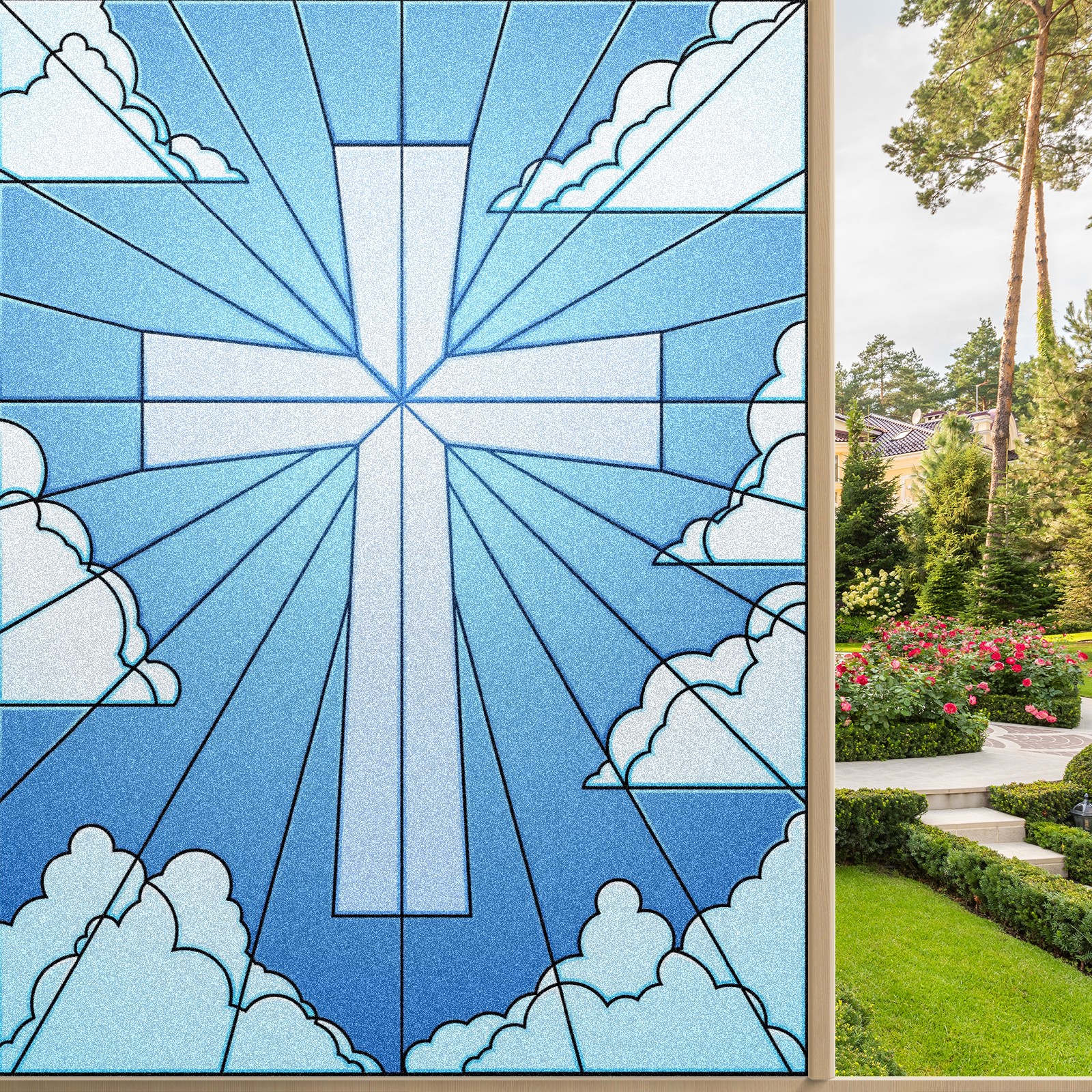 Static Cling Decorative Window Film Frosted Privacy Film Window Clings for Glass Windows No Glue Window Sticker for Bathroom Bedroom Office Stained Glass Cloud