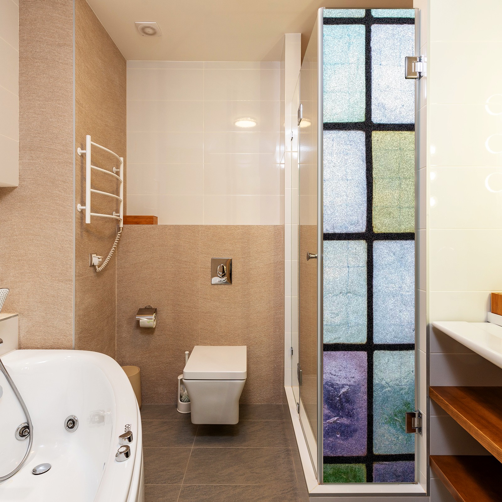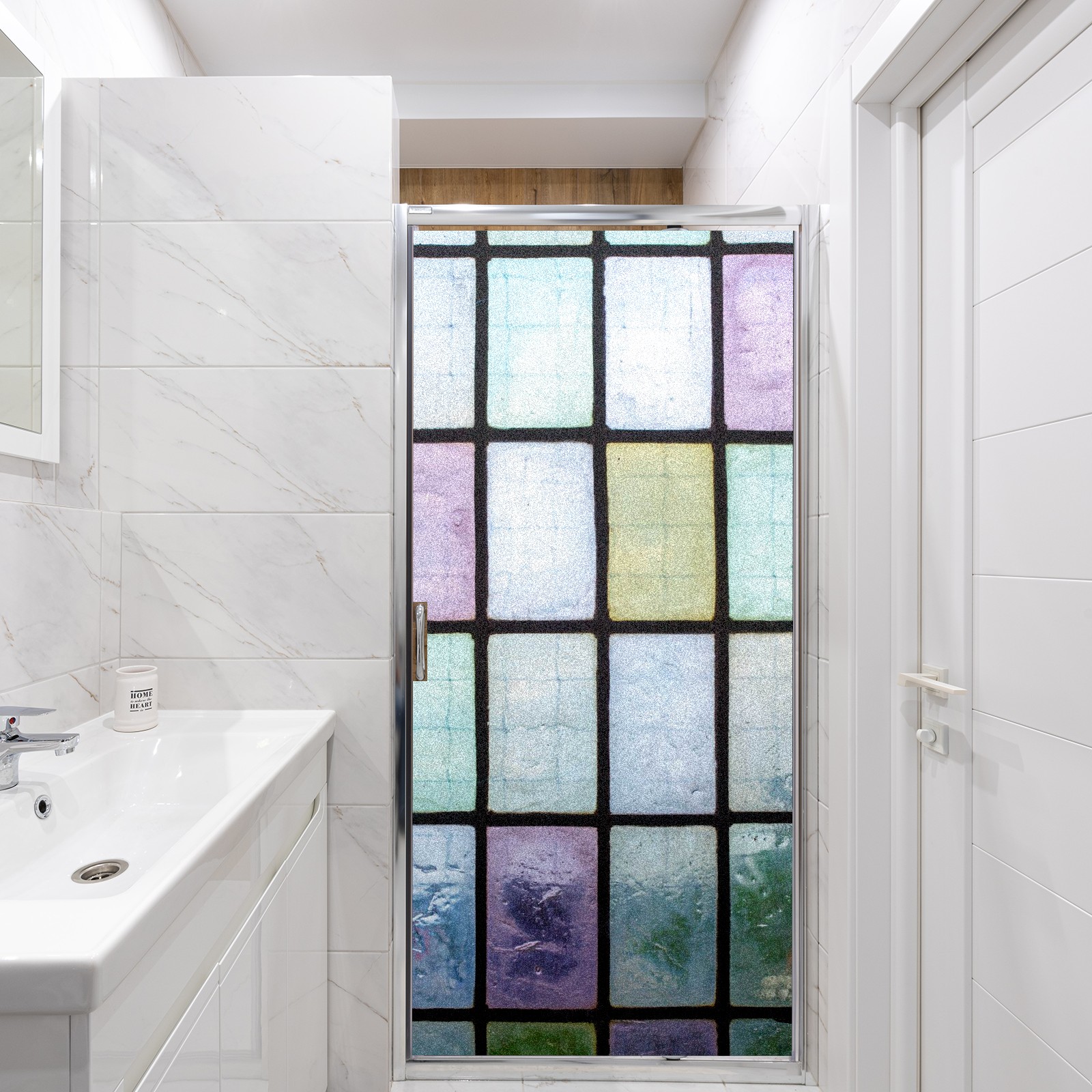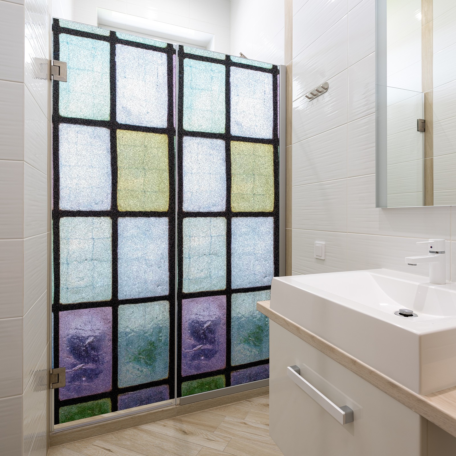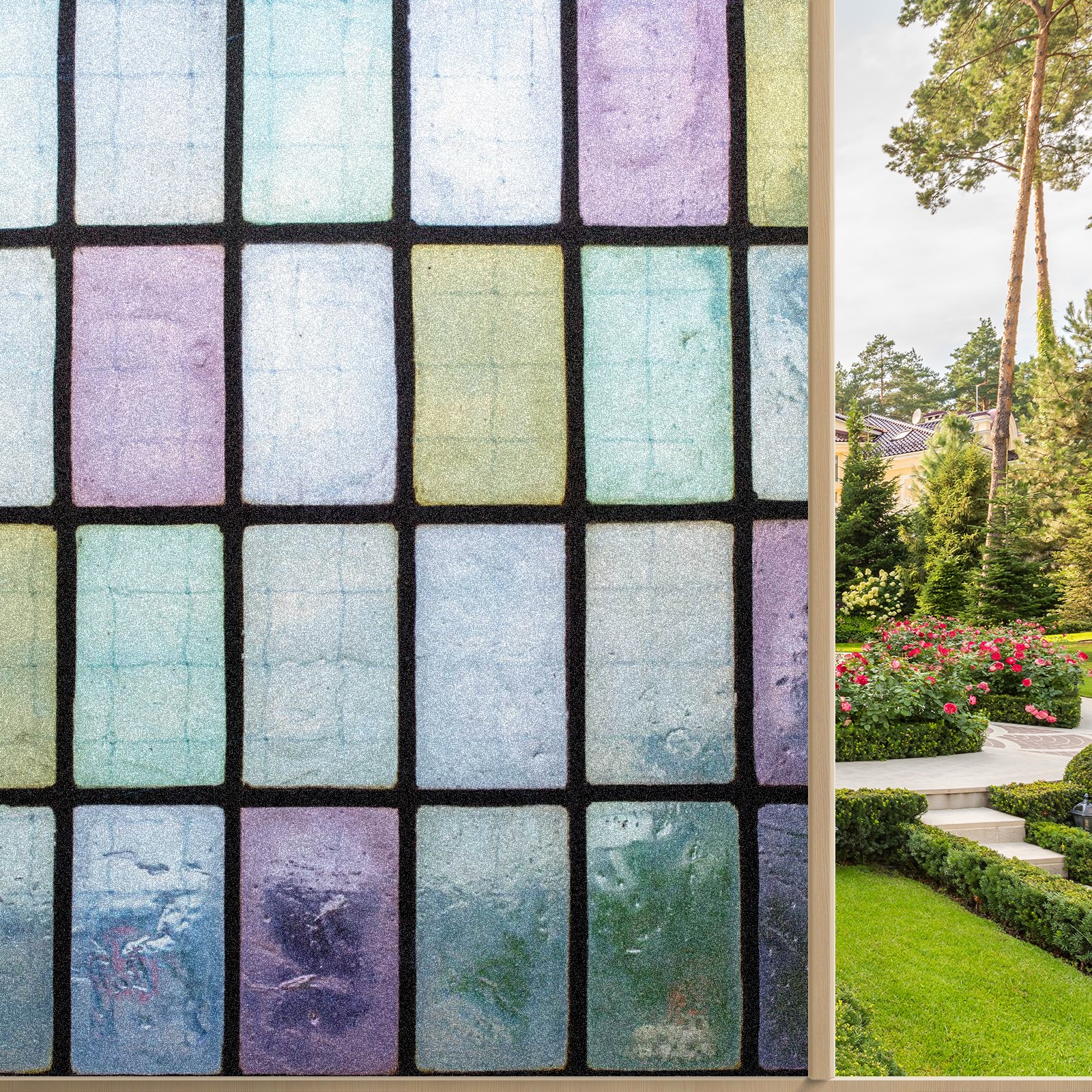 Static Cling Decorative Window Film Frosted Privacy Film Window Clings for Glass Windows No Glue Window Sticker for Bathroom Bedroom Office Purple Green Window Stained Glass