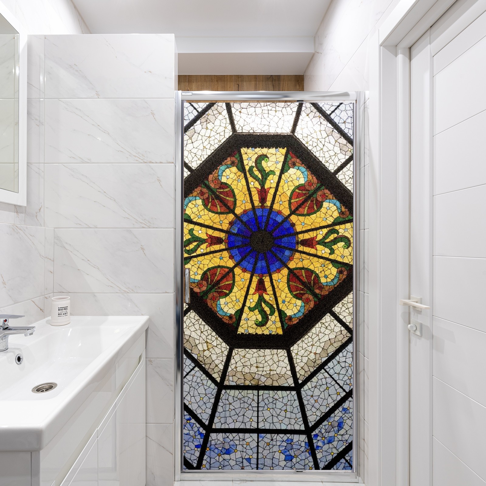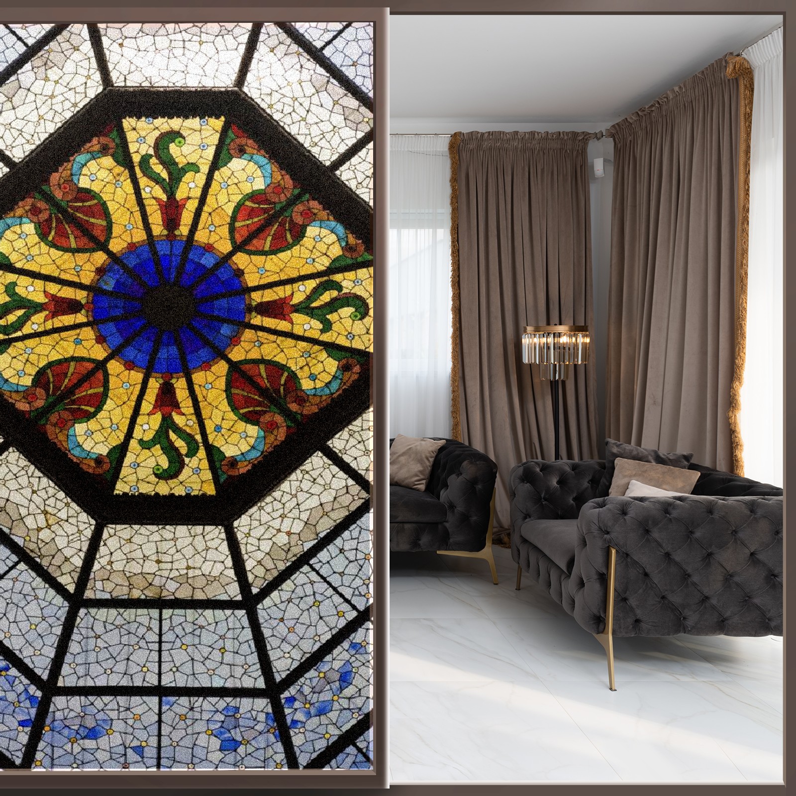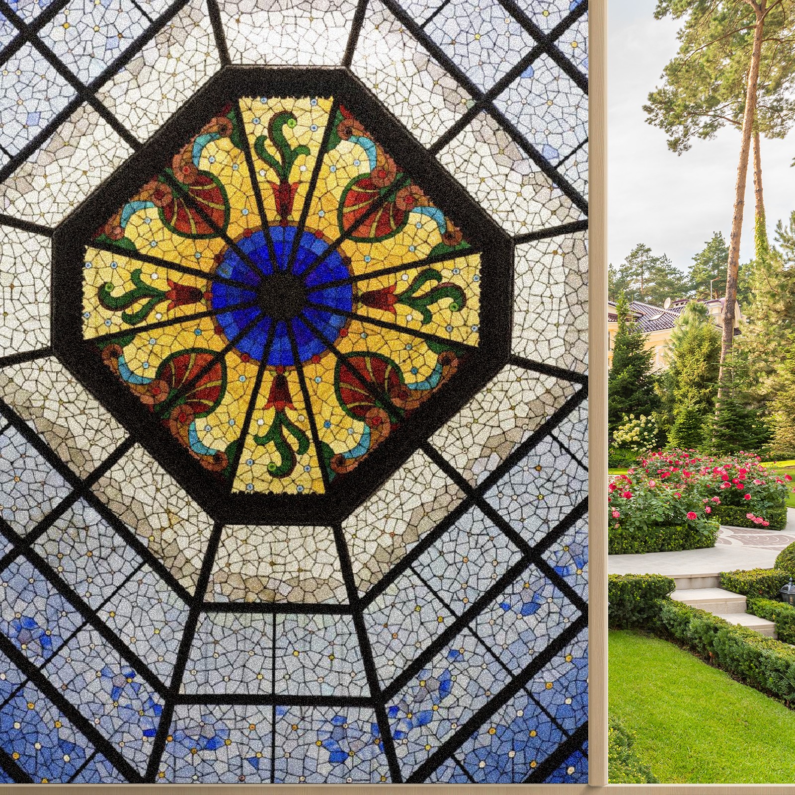 Static Cling Decorative Window Film Frosted Privacy Film Window Clings for Glass Windows No Glue Window Sticker for Bathroom Bedroom Office Stained Glass Ceiling