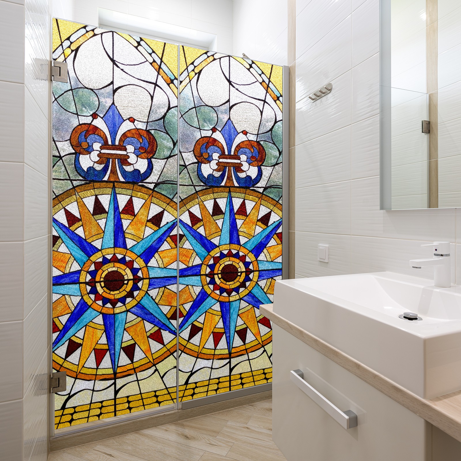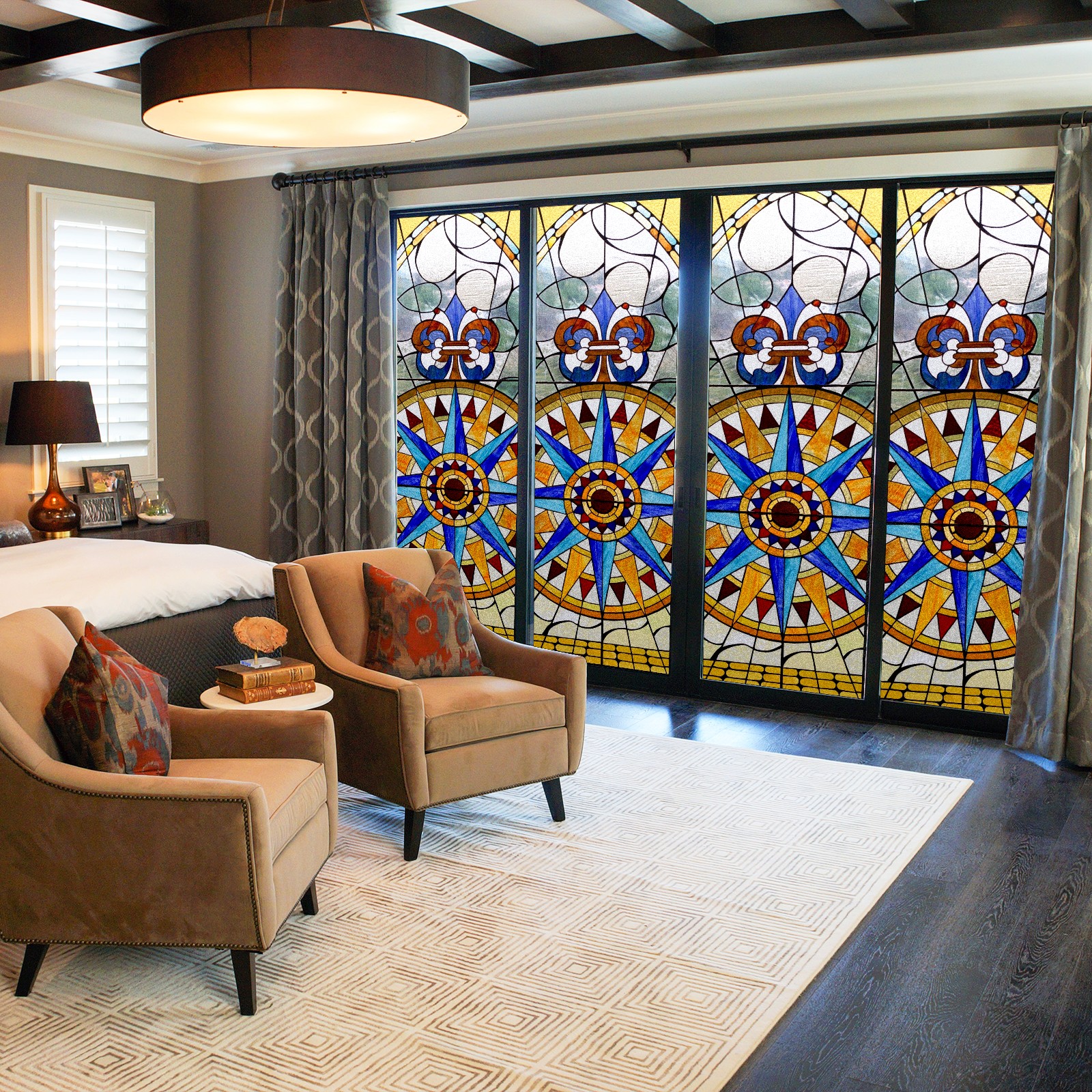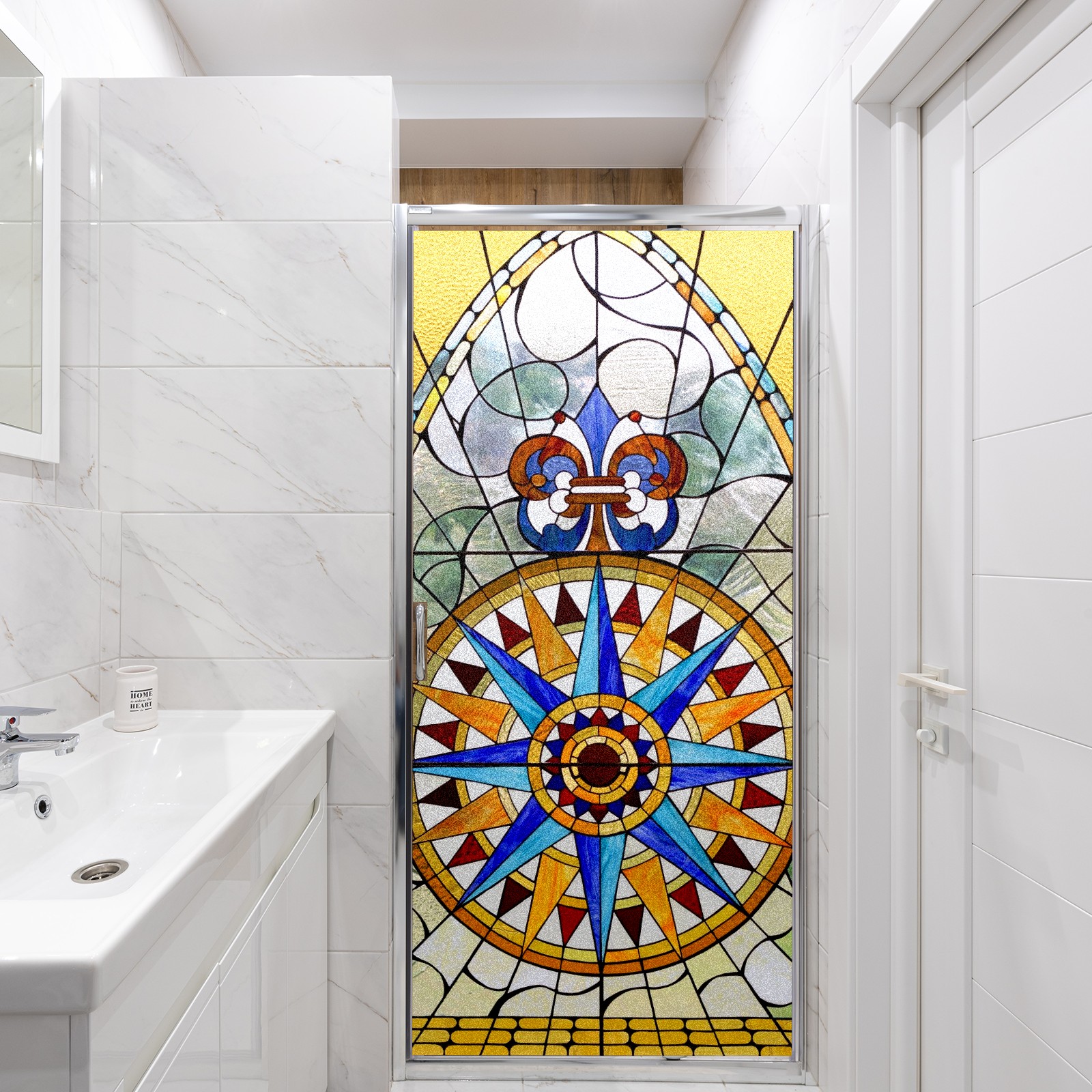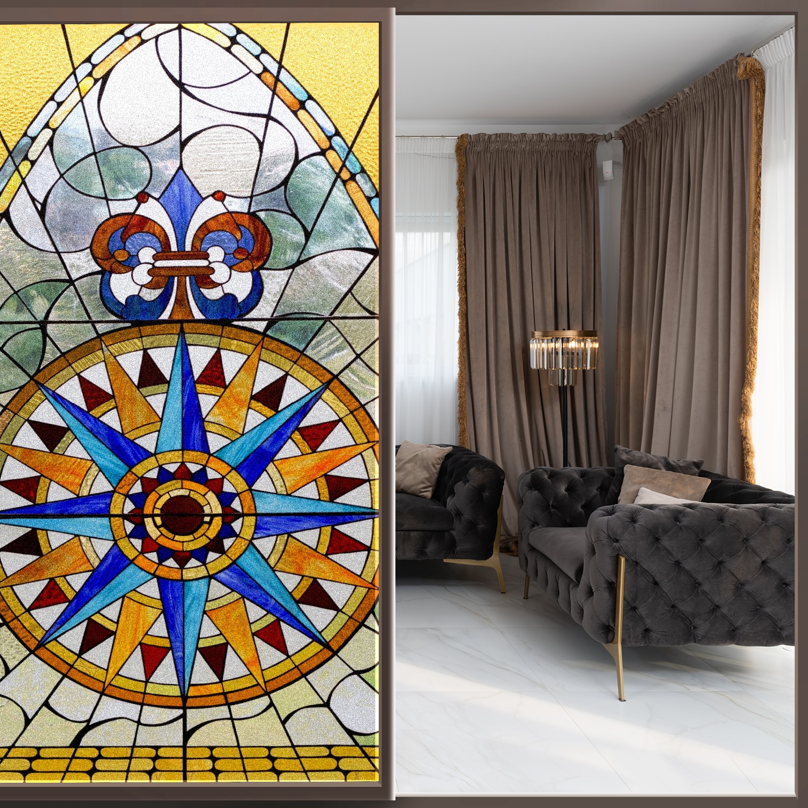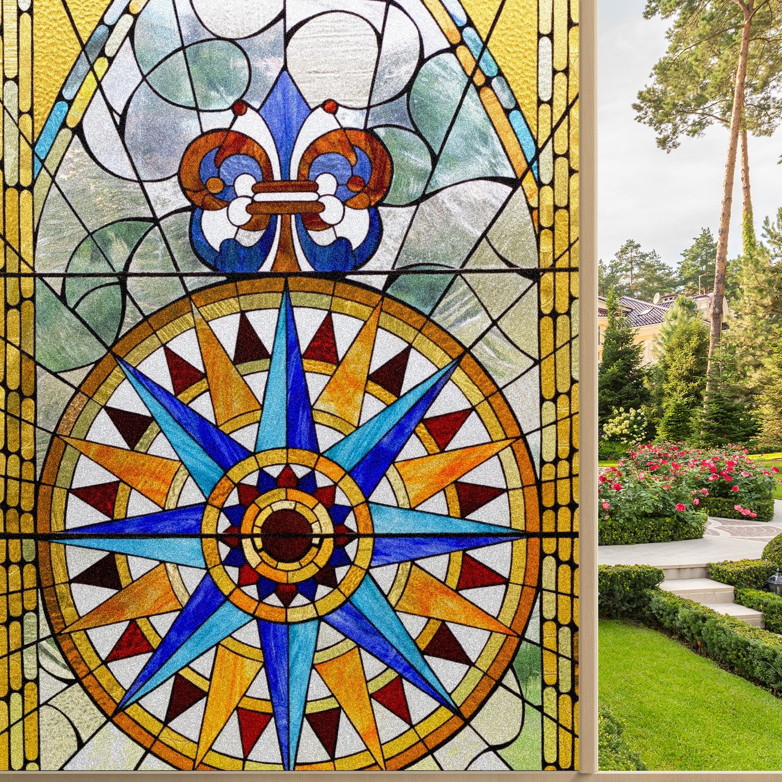 Static Cling Decorative Window Film Frosted Privacy Film Window Clings for Glass Windows No Glue Window Sticker for Bathroom Bedroom Office Yellow Green Red Brown Stained Glass