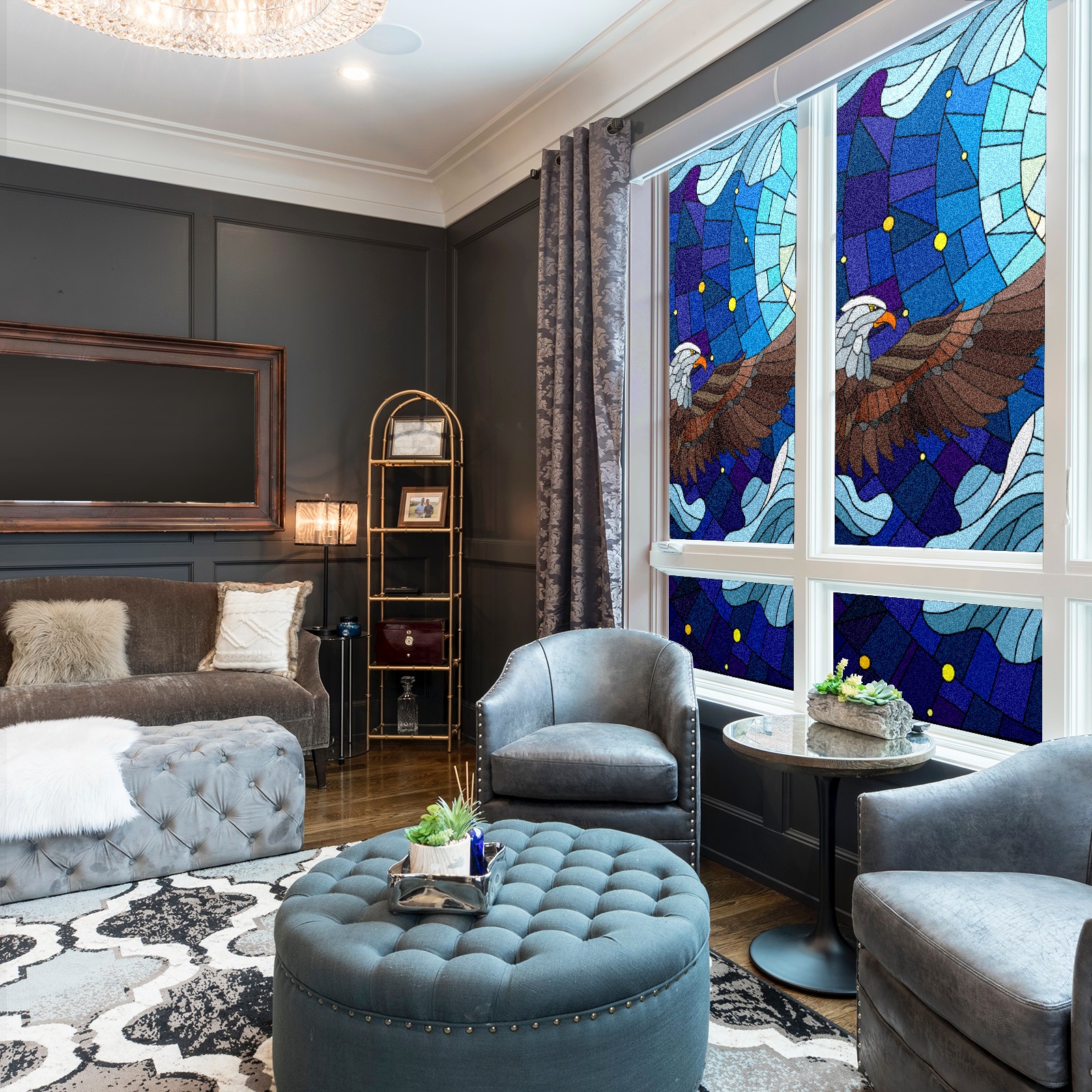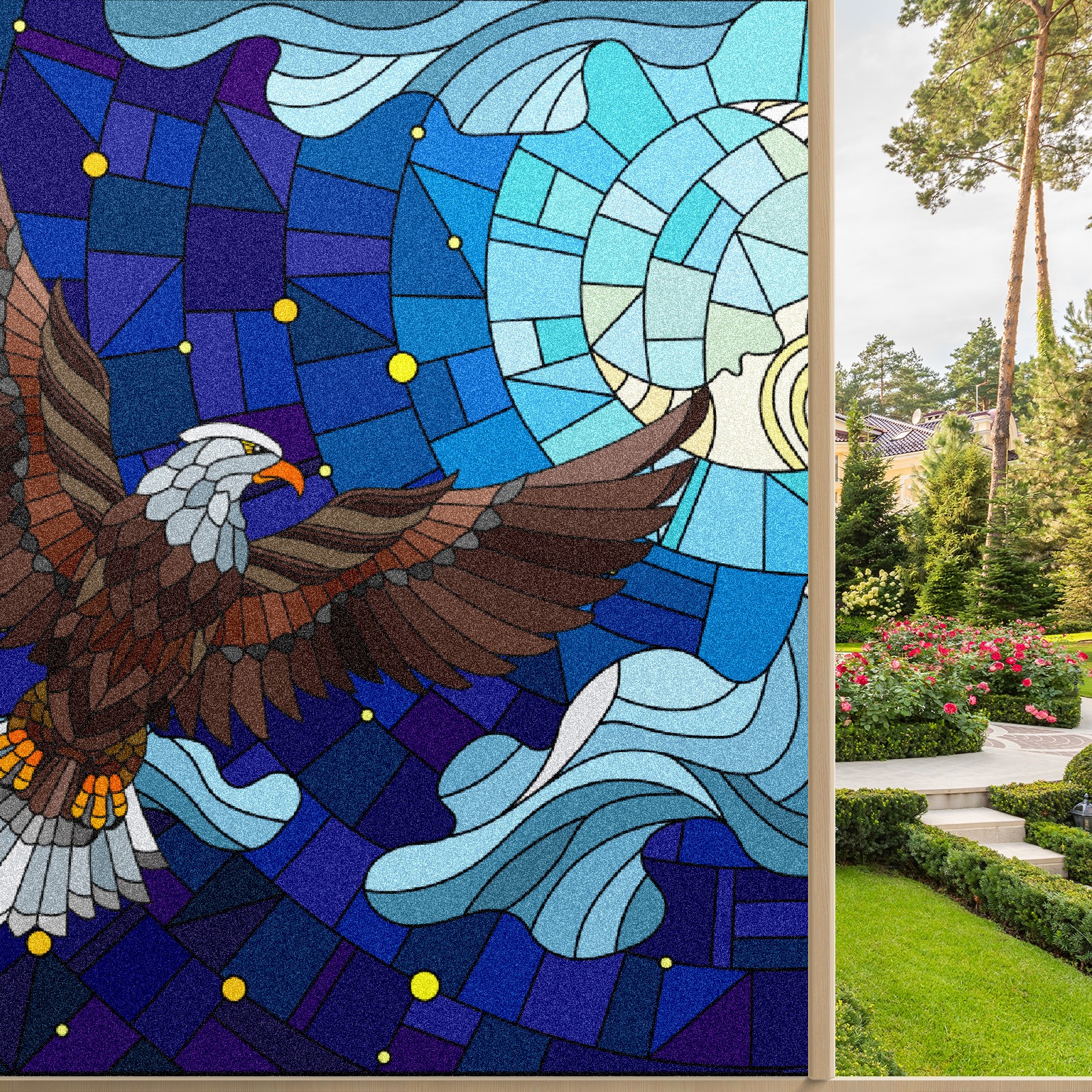 Static Cling Decorative Window Film Frosted Privacy Film Window Clings for Glass Windows No Glue Window Sticker for Bathroom Bedroom Office Stained Glass Eagle Moon Clouds