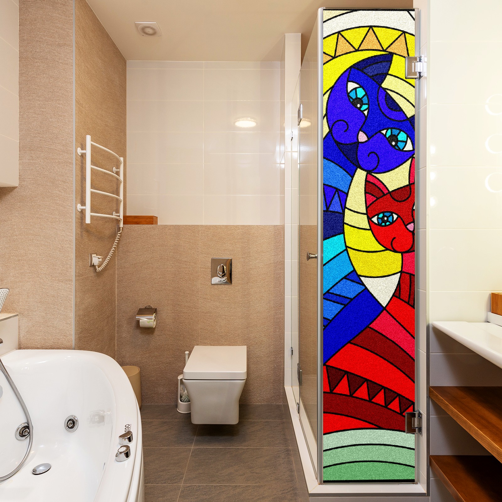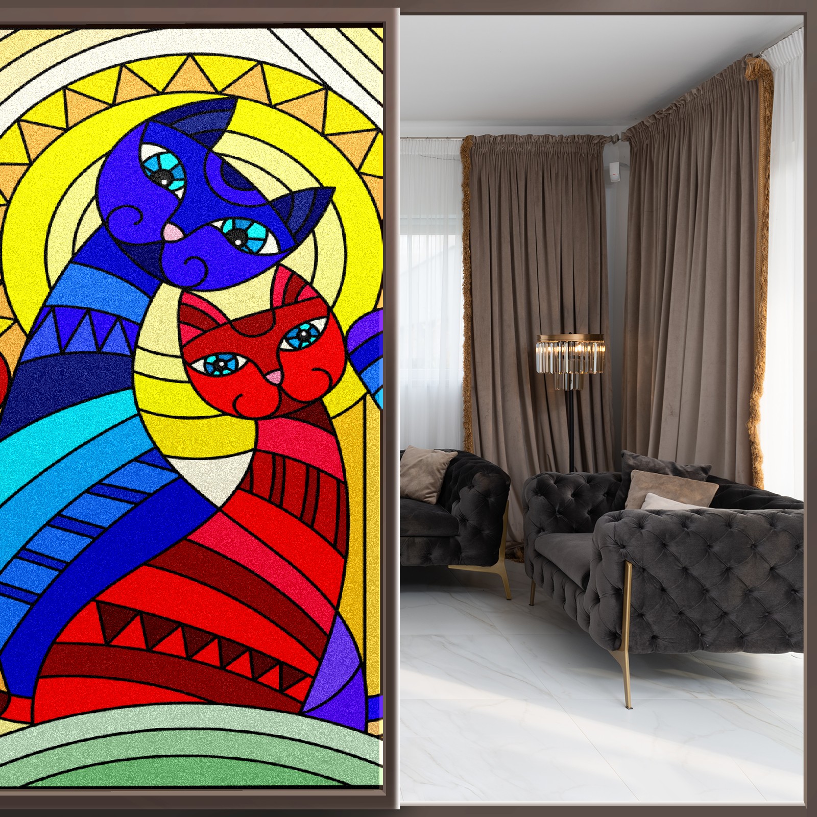 Static Cling Decorative Window Film Frosted Privacy Film Window Clings for Glass Windows No Glue Window Sticker for Bathroom Bedroom Office Stained Glass Cat Couple Moon