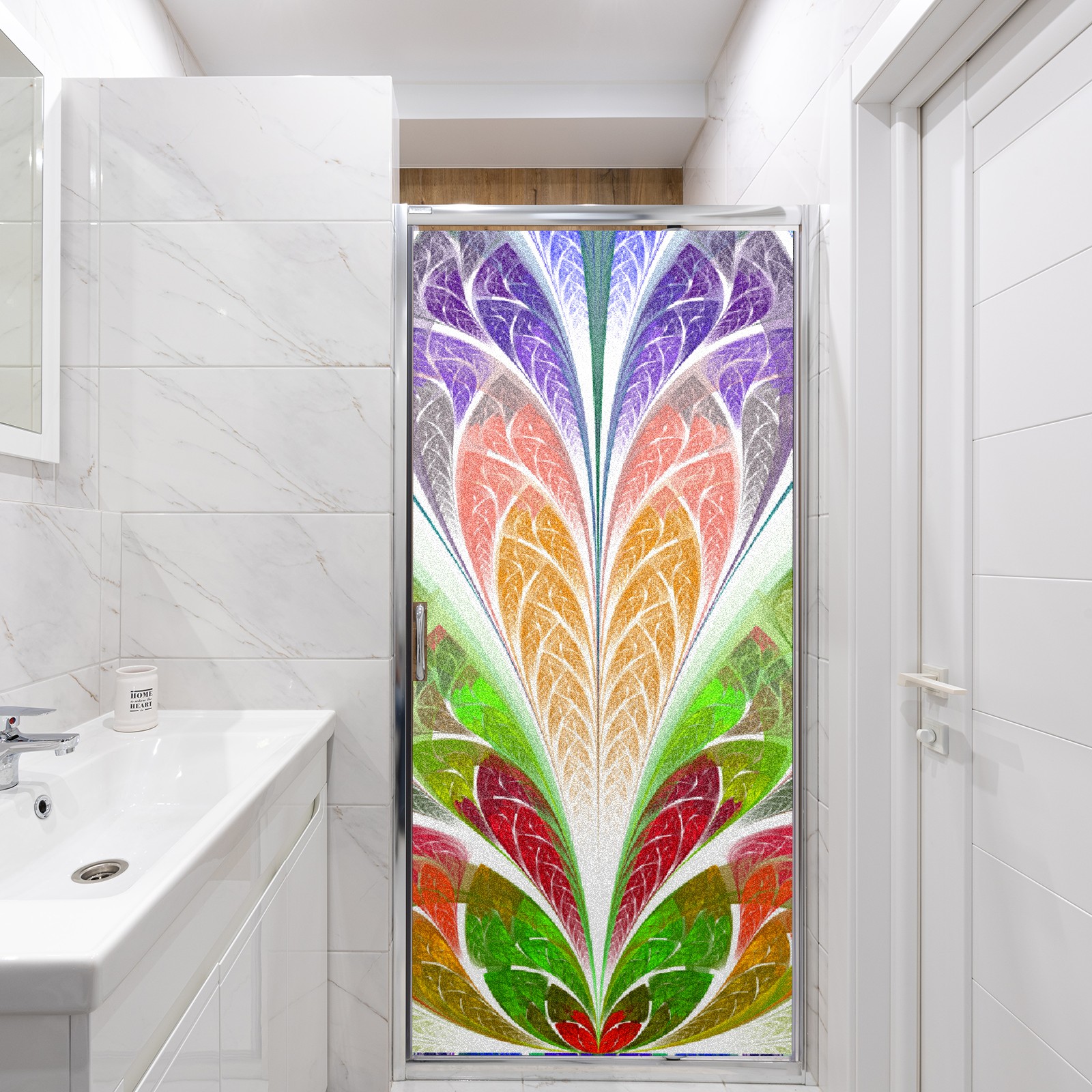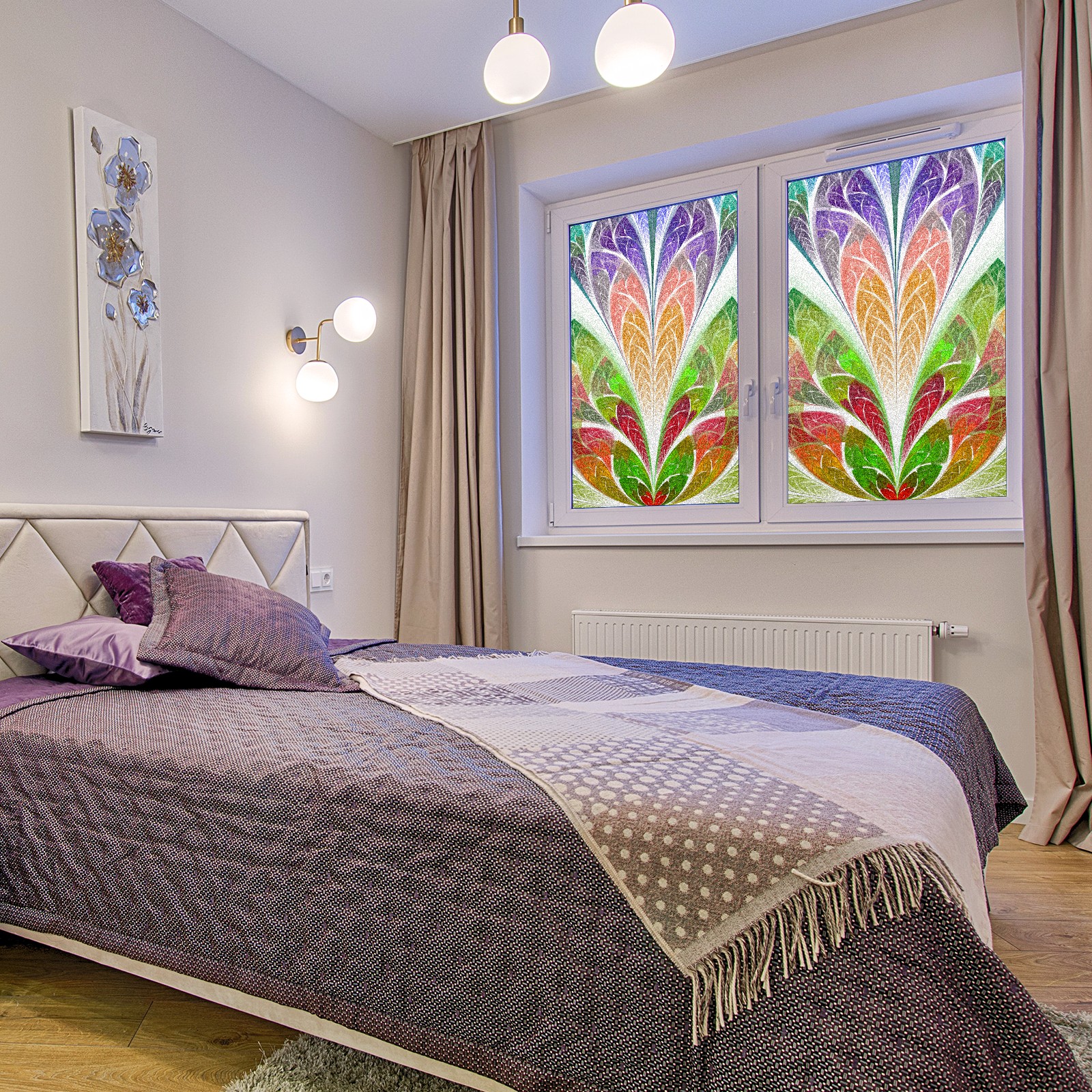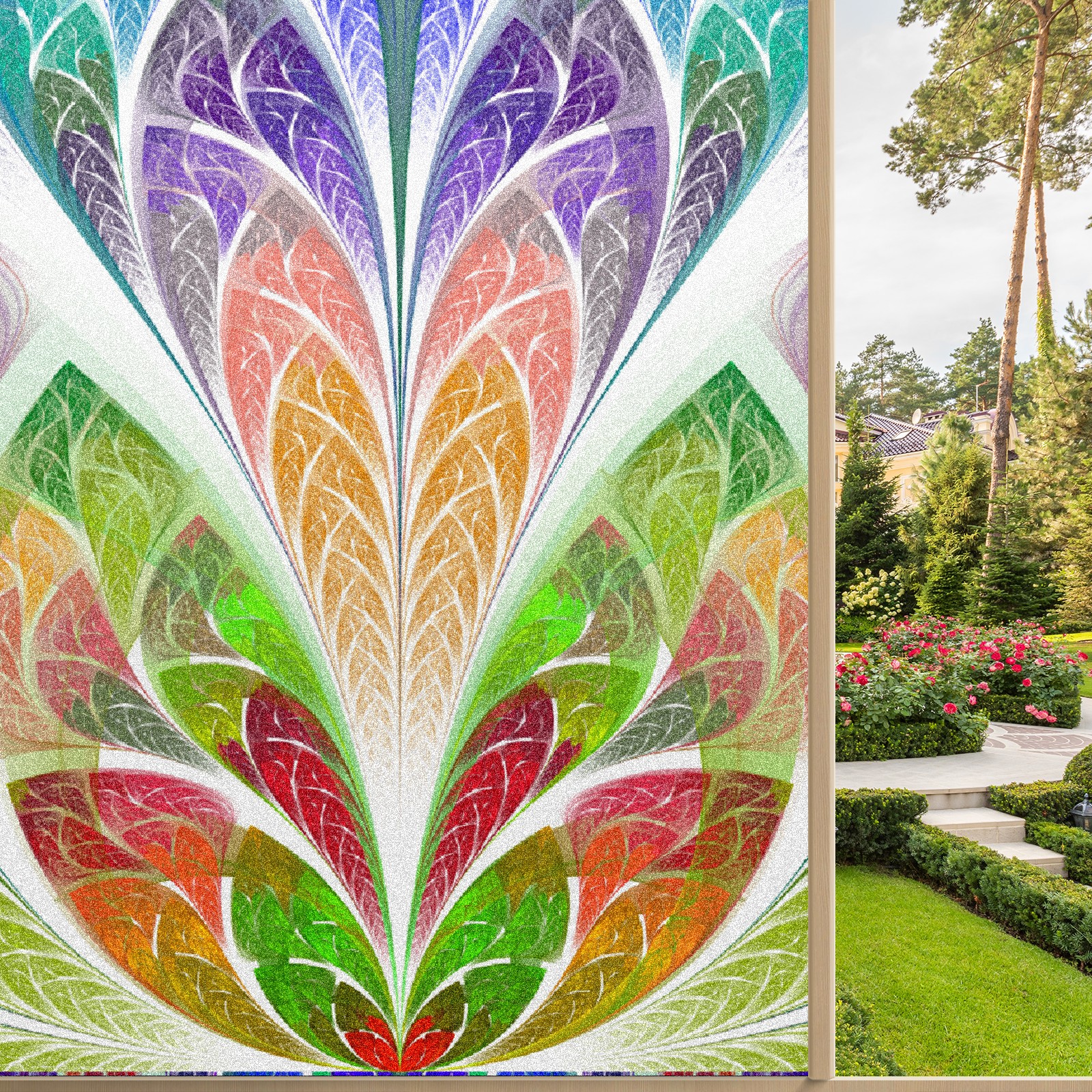 Static Cling Decorative Window Film Frosted Privacy Film Window Clings for Glass Windows No Glue Window Sticker for Bathroom Bedroom Office Colorful Flower Stained Glass
