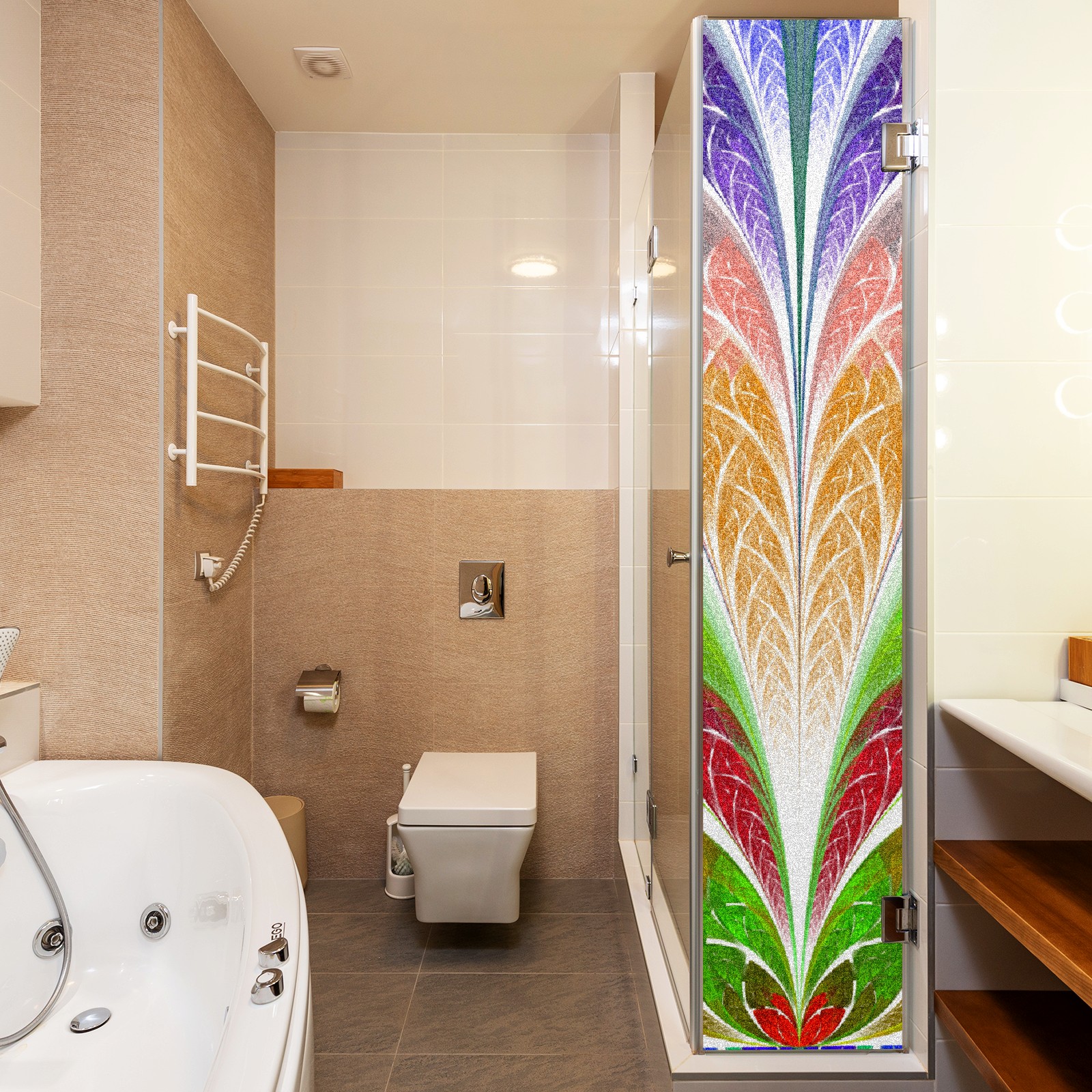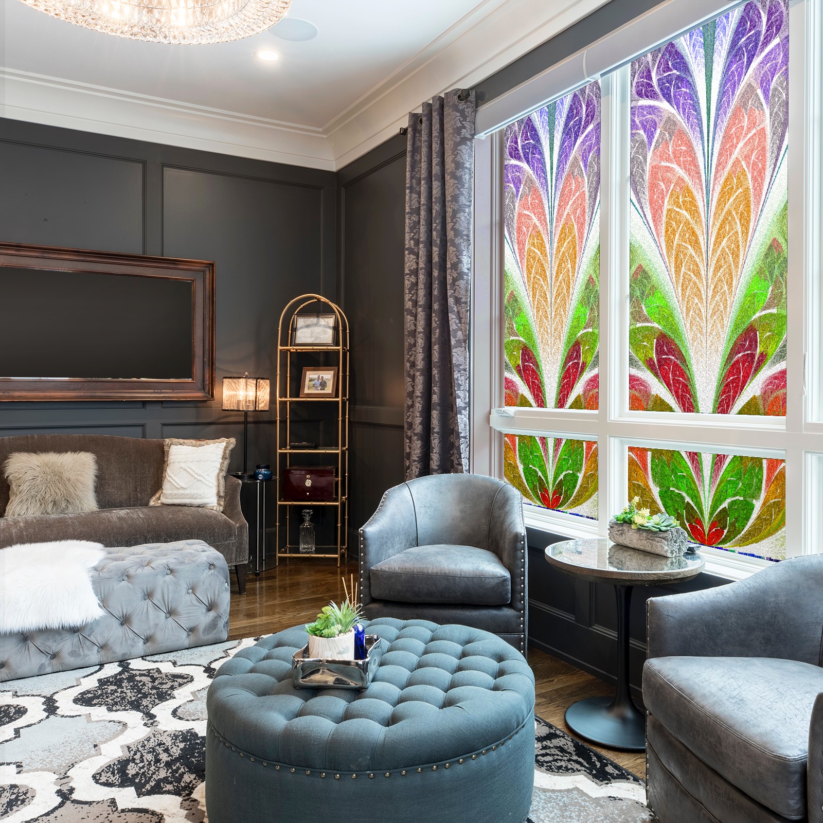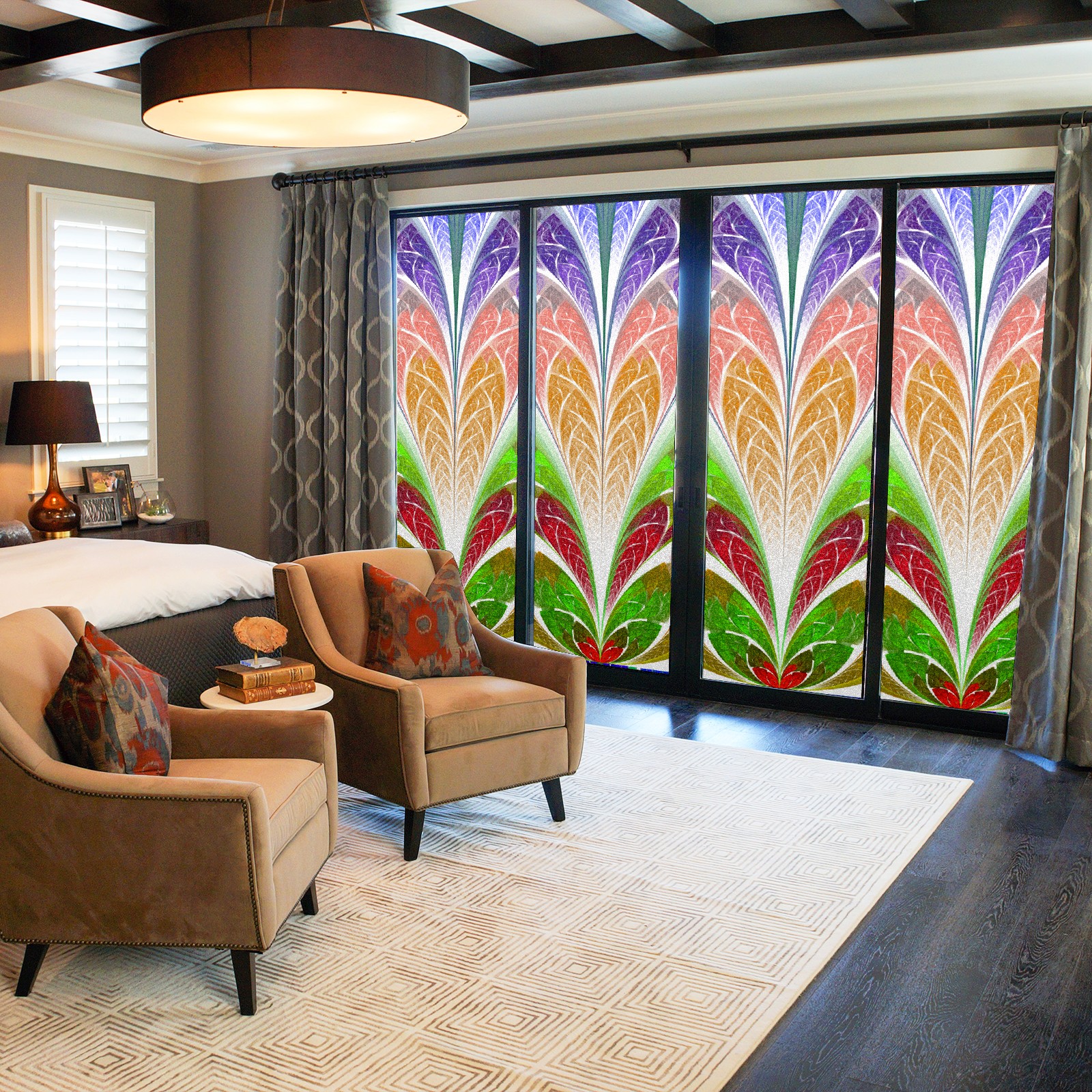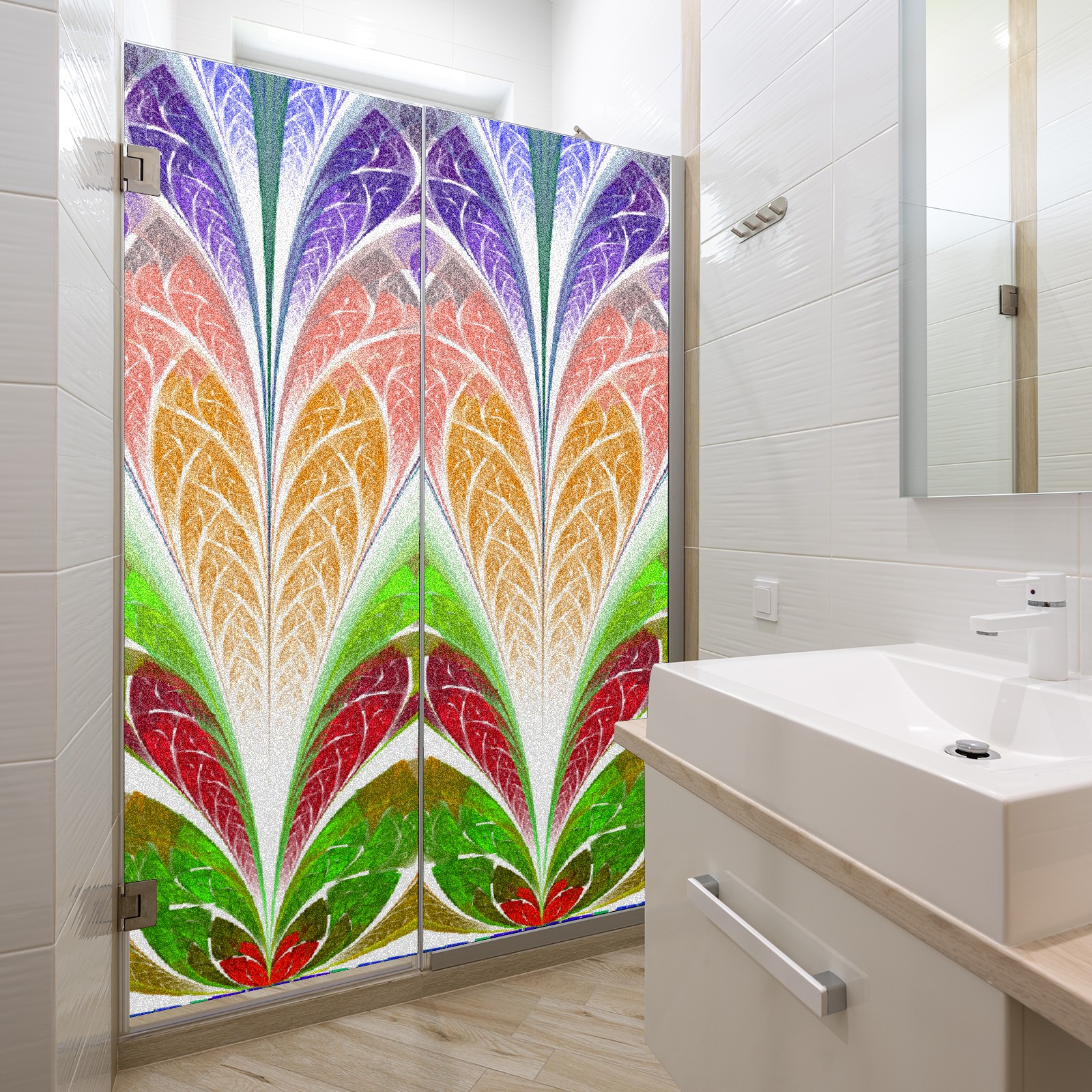 Static Cling Decorative Window Film Frosted Privacy Film Window Clings for Glass Windows No Glue Window Sticker for Bathroom Bedroom Office Colorful Flower Stained Glass